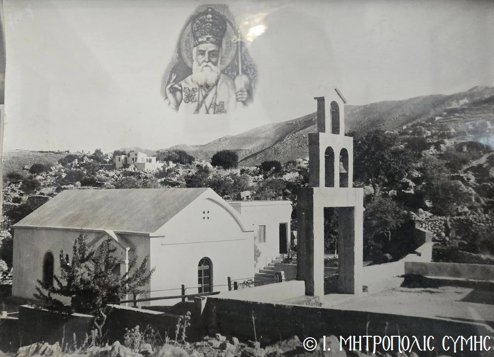 Ἀναφέρεται ὅτι τό Παρεκκλήσιον τοῦ Ἁγίου Νεκταρίου ἀνηγέρθη τό ἔτος 1969, μέ τήν εὐλαβῆ πρωτοβουλία καί ἐπιστασία τοῦ Ἐφημερίου τοῦ Μητροπολιτικοῦ Ἱ. Ναοῦ Τιμίου Προδρόμου, μακαριστοῦ Ἱερέως Ἀναστασίου Μαραβέλλια καί τήν πάνδημη συνδρομή καί συμμετοχή τῶν εὐσεβῶν κατοίκων τῆς Σύμης, οἱ ὁποῖοι μέ ἱερό πόθο καί "ἰδίαις χερσίν" ἐργάστηκαν ἀόκνως, ὥστε νά προσφέρουν στόν νεοκαταταγέντα τότε στούς Χορούς τῶν Ἁγίων, Νεκτάριο Ἐπίσκοπο Πενταπόλεως τόν ἐν Αἰγίνῃ τό νεόδμητο Ἱερό του Σέβασμα ἐν Σύμῃ.
