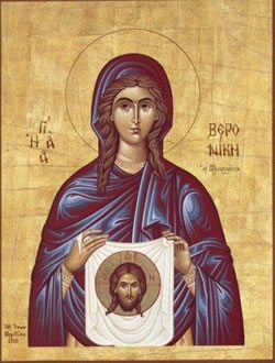Ἁγία Βερονίκη, ἔζησε καί ἔδρασε γιά τήν χριστιανική πίστη στήν πόλη Πανεάδα. Ἀξιώθηκε μάλιστα νά συναντήσει τόν ἴδιο τόν Χριστό, ὁ ὁποῖος τήν θεράπευσε ἀπό τήν βασανιστική αἱμορραγία πού εἶχε. Γιά νά τιμήσει καί νά εὐχαριστήσει λοιπόν τόν Κύριο, ἔκανε ἕναν ἀνδριάντα τοῦ Χριστοῦ γιά νά τόν τιμοῦν καί προσκυνοῦν οἱ πιστοί.