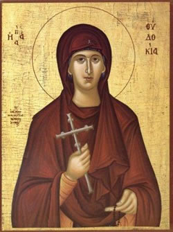 Χάρις εὐδοκίας τῆς θεϊκῆς, νύμφην σε τοῦ Λόγου, ἀπειργάσατο ἐκλεκτήν, ἤθεσιν ὁσίοις, καὶ αἵματι Μαρτύρων, θεόφρον Εὐδοκία, περιαστράπτουσαν.