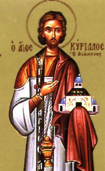 διάκονος Κύριλλος, ἐπί αὐτοκράτορος Ἰουλιανοῦ τοῦ Παραβάτου, γκρέμισε εἰδωλολατρικούς ναούς καί ἔκαψε τά ξόανα τῶν ψεύτικων θεῶν, στήν Φοινίκη. Γιά τόν λόγο αὐτό συνελήφθη ἀπό τούς εἰδωλολάτρες καί θανατώθηκε μέ ἀπάνθρωπο τρόπο: ἄνοιξαν τήν κοιλιά του καί τοῦ ἔβγαλαν τά σπλάχνα.