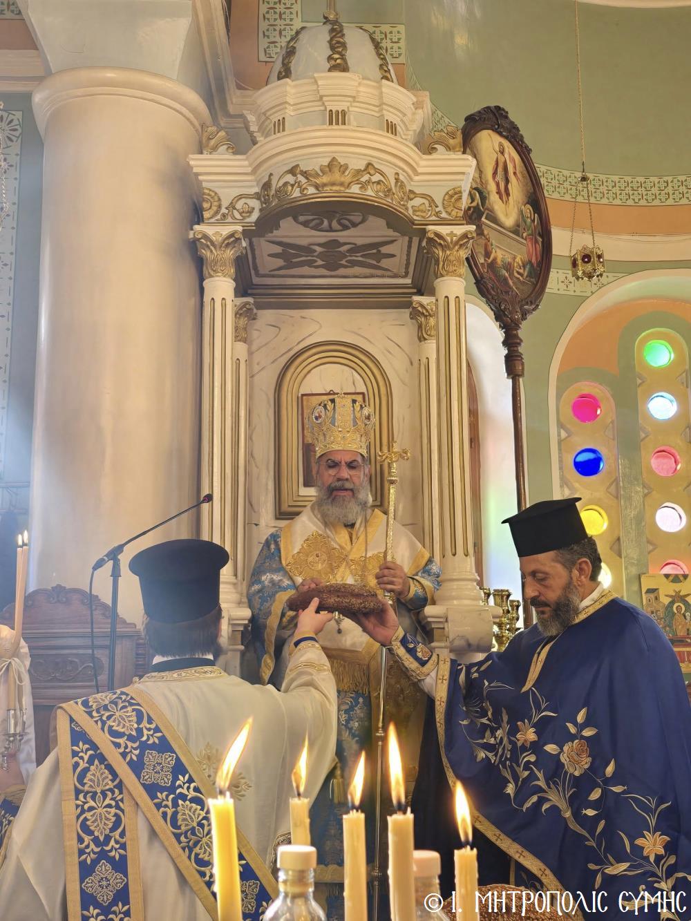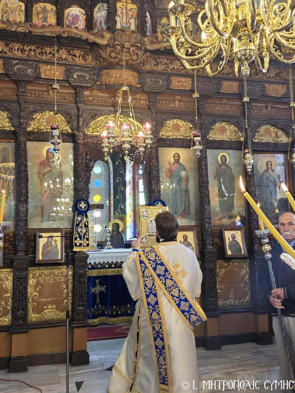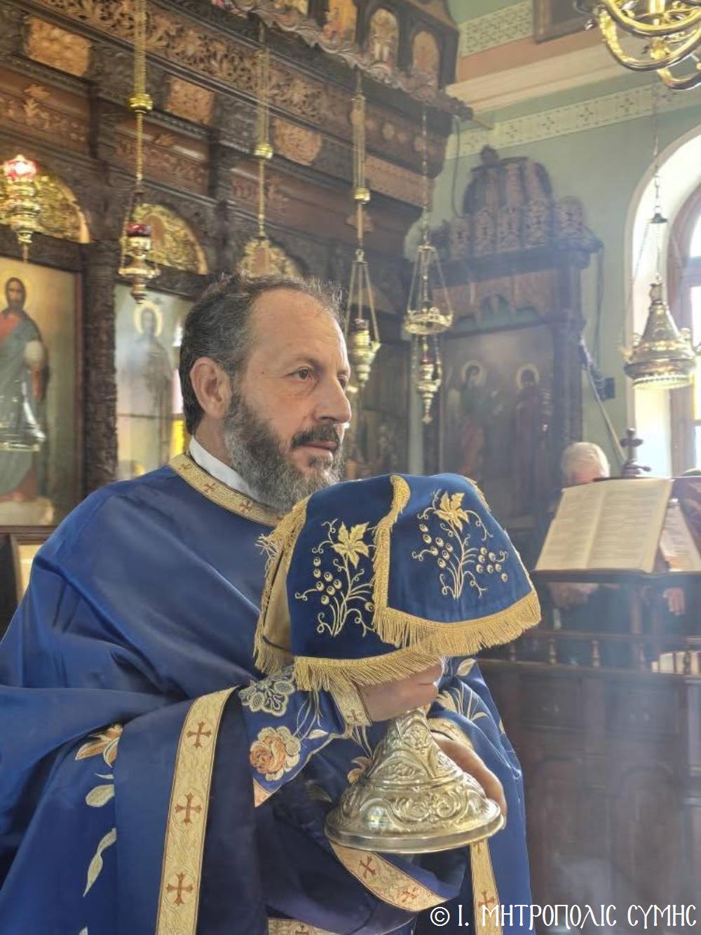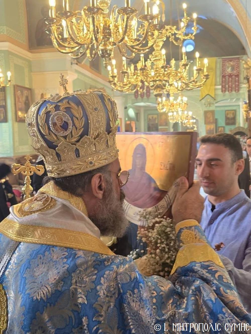 Ἐν συνεχείᾳ, ὁ Δήμαρχος Σύμης κ. Ἐλευθέριος Παπακαλοδούκας, ὁ Σεβ. Μητροπολίτης μας κ. Χρυσόστομος, ἅπασες οἱ λοιπές τοπικές Ἀρχές καί πολλοί κάτοικοι, ἀνέβηκαν στό Δημαρχεῖο τῆς Σύμης, ὅπου ἔλαβε χῶρα μιά σεμνή τελετή, κατά τήν ὁποία ὁ Δήμαρχος, κατόπιν δικῆς του πρωτοβουλίας καί ἀποφάσεως τοῦ Δημοτικοῦ Συμβουλίου, ἀπένειμε τιμητικό βραβεῖο στόν Στρατιωτικό Ἰατρό, Ἀνθυπίατρο κ. Κωνσταντῖνο Ἀγγελόπουλο, ὁ ὁποῖος, ὑπηρέτησε μέ συνέπεια καί ἦθος τήν Ἰατρική ἐπιστήμη, προσφέροντας πολύτιμες ὑπηρεσίες στούς κατοίκους καί ἐπισκέπτες τῆς Νήσου μας. Ὁ Ἰατρός, μετά ἀπό εὐδόκιμη 2ετῆ ὑπηρεσία στόν ἐνταῦθα Στρατιωτικό Σχηματισμό, μετατίθεται πλέον στήν Ἀθήνα γιά τήν ἐκπόνηση τῆς ἰατρικῆς του εἰδικότητος. Τό διάστημα πού παρέμεινε στήν Σύμη, στελέχωσε μέ αὐταπάρνηση καί πνεῦμα ἀνιδιοτέλειας καί θυσίας τό Ἰατρεῖο τῆς Δ.Α.Ν. τό ὁποῖο κατόπιν αἰτήματός του καί μέ τήν διαμεσολάβηση τοῦ Σεβ. Μητροπολίτου μας ἐξοπλίσθη πλήρως, δίνοντάς του τήν δυνατότητα νά προσφέρει πρός ὅλους ἀνεξαιρέτως τούς κατοίκους σωτήριες κυριολεκτικά ὑπηρεσίες.