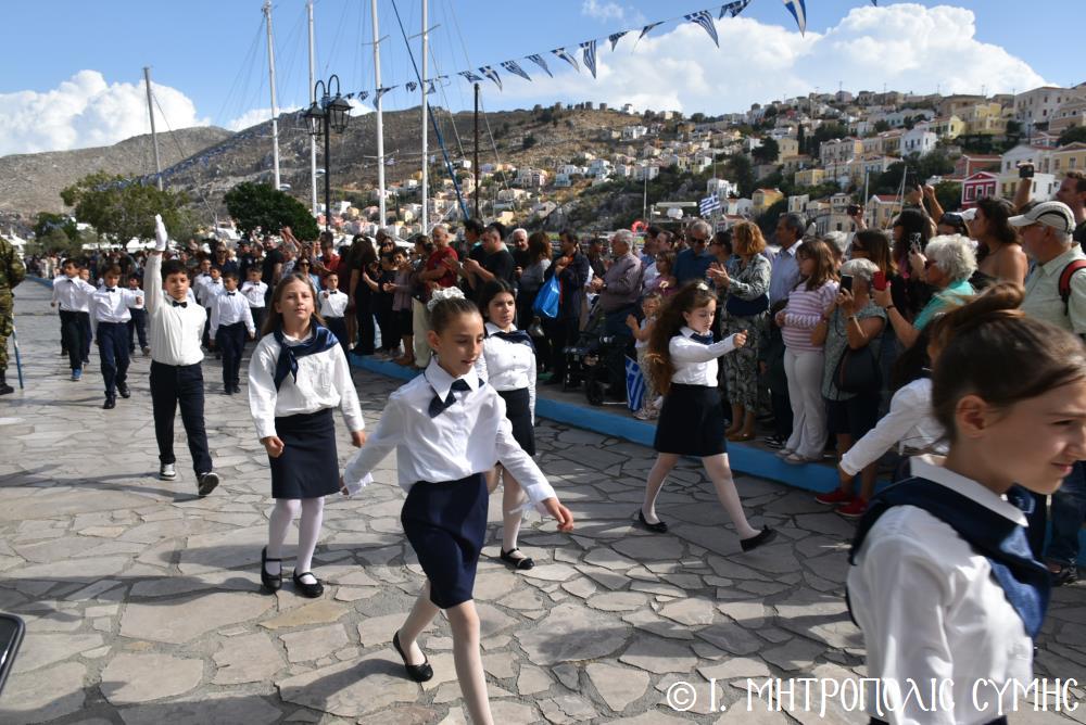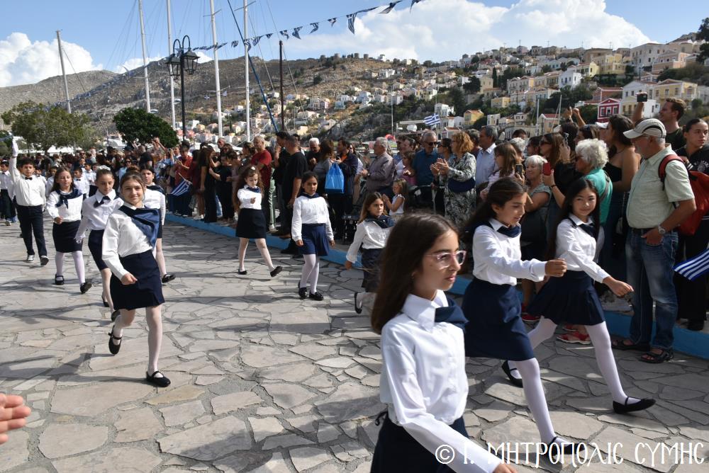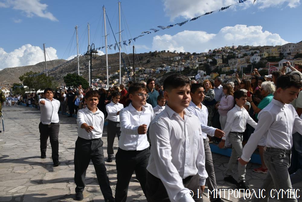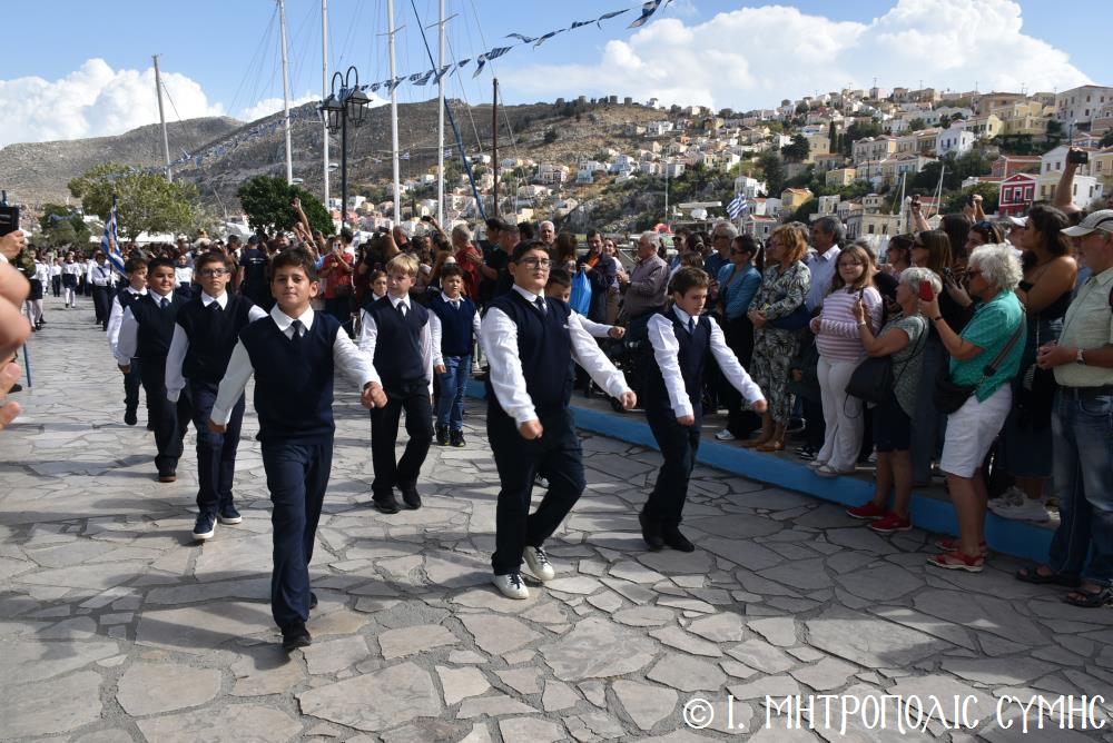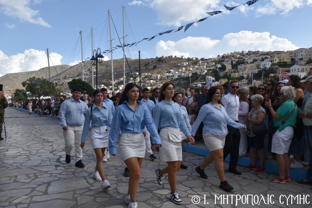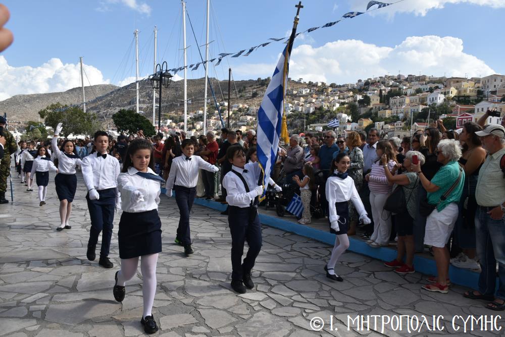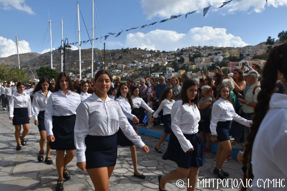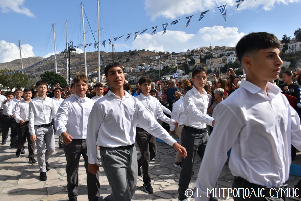 Μέ τήν δέουσα λαμπρότητα καί ἐπισημότητα ἑορτάστηκε ἡ ἐθνική ἐπέτειος τῆς 28ης Ὀκτωβρίου 1940 στήν Σύμη. Τό πρωί μετά τήν Θεία Λειτουργία ἐπί τῇ ἑορτῇ τῆς Ἁγίας Σκέπης τῆς Ὑπεραγίας Θεοτόκου ἐτελέσθη ἡ ἐπίσημη δοξολογία στόν Μητροπολιτικό Ἱ. Ναό τοῦ Τιμίου Προδρόμου, προεξάρχοντος τοῦ Σεβ. Μητροπολίτου μας κ. Χρυσοστόμου, συμπαραστατουμένου ἐκ τοῦ ἱ. Κλήρου τῆς Νήσου μας. Τόν Πανηγυρικό τῆς ἡμέρας ἐξεφώνησε ἡ Δασκάλα τοῦ Πετριδείου 2ου Δημοτικοῦ Σχολείου Σύμης, κ. Μαρία Μαλλιάκα.