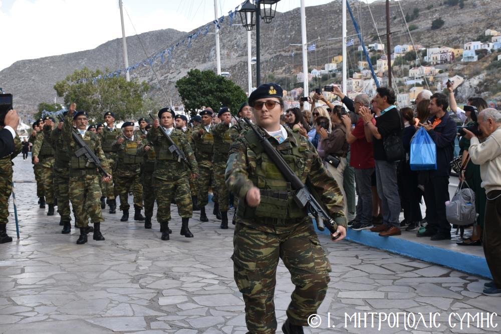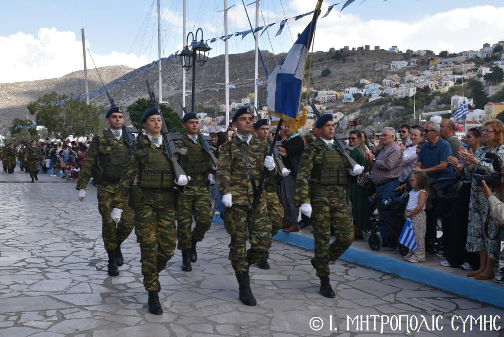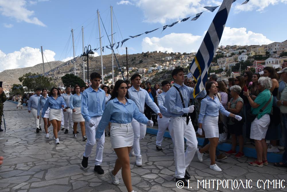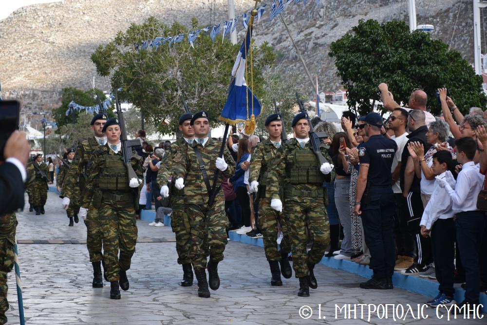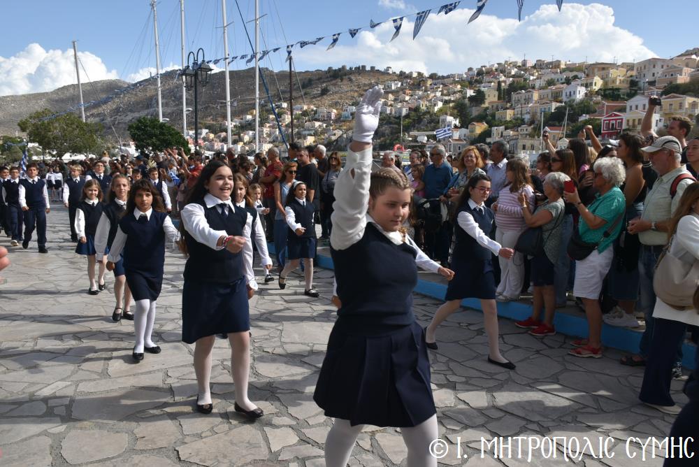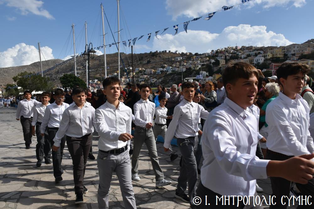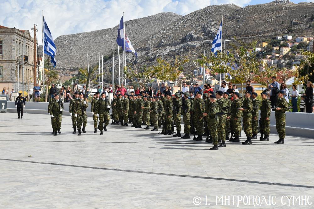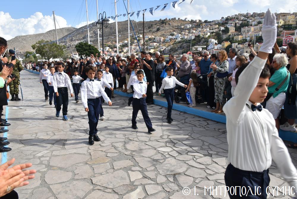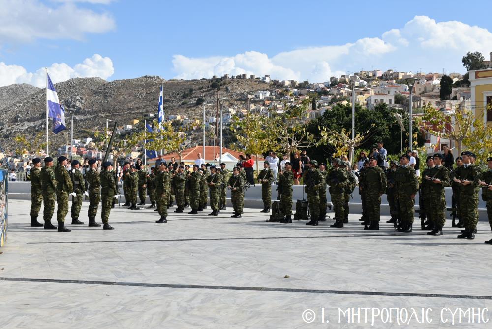 Μέ τήν δέουσα λαμπρότητα καί ἐπισημότητα ἑορτάστηκε ἡ ἐθνική ἐπέτειος τῆς 28ης Ὀκτωβρίου 1940 στήν Σύμη. Τό πρωί μετά τήν Θεία Λειτουργία ἐπί τῇ ἑορτῇ τῆς Ἁγίας Σκέπης τῆς Ὑπεραγίας Θεοτόκου ἐτελέσθη ἡ ἐπίσημη δοξολογία στόν Μητροπολιτικό Ἱ. Ναό τοῦ Τιμίου Προδρόμου, προεξάρχοντος τοῦ Σεβ. Μητροπολίτου μας κ. Χρυσοστόμου, συμπαραστατουμένου ἐκ τοῦ ἱ. Κλήρου τῆς Νήσου μας. Τόν Πανηγυρικό τῆς ἡμέρας ἐξεφώνησε ἡ Δασκάλα τοῦ Πετριδείου 2ου Δημοτικοῦ Σχολείου Σύμης, κ. Μαρία Μαλλιάκα.