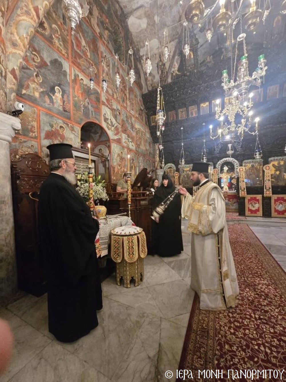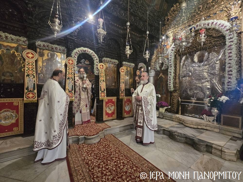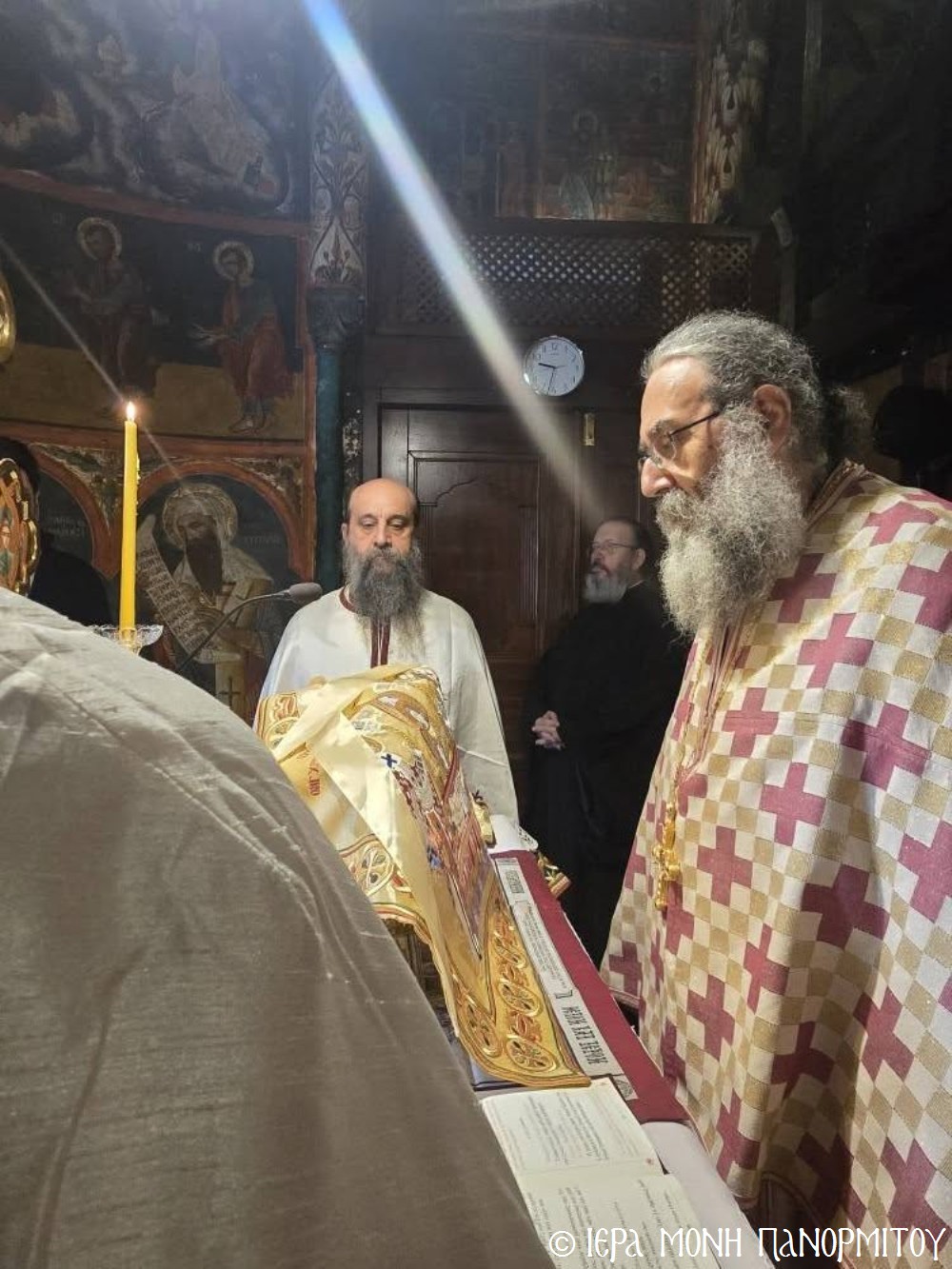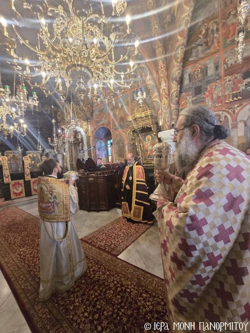 Σήμερα Παρασκευή 7η Νοεμβρίου 2025, προεόρτιος ἡμέρα τοῦ Ταξιάρχου, ἐτελέσθη μέ ἰδιαιτέρα συγκίνηση στήν Ἱερά Μονή Πανορμίτου τό Τεσσαρακονθήμερο Μνημόσυνο τοῦ μακαριστοῦ Μητροπολίτου Ροδοστόλου κυροῦ Χρυσοστόμου, ἱερουργοῦντος τό Μυστήριον τῆς Θείας Εὐχαριστίας τοῦ Πανοσιολογιωτάτου Καθηγουμένου τῆς Ἱερᾶς Μονῆς τῶν Ἰβήρων Ἀρχιμανδρίτου Ναθαναήλ, συλλειτουργούντων τοῦ Ἀρχιμ. π. Εὐθυμίου Βακαλάκη καί τοῦ Ἱερομον. π. Ἀθανασίου Ἰβηρίτου καί χοροστατοῦντος τοῦ Σεβ. Ποιμενάρχου μας κ. Χρυσοστόμου, συμπροσευχομένου δέ ἀπό τοῦ Ἱεροῦ Βήματος καί τοῦ Ἐψηφισμένου Ἐπισκόπου Ροδοστόλου κ. Ἀντωνίου, μεθ' ἑτέρων κληρικῶν.