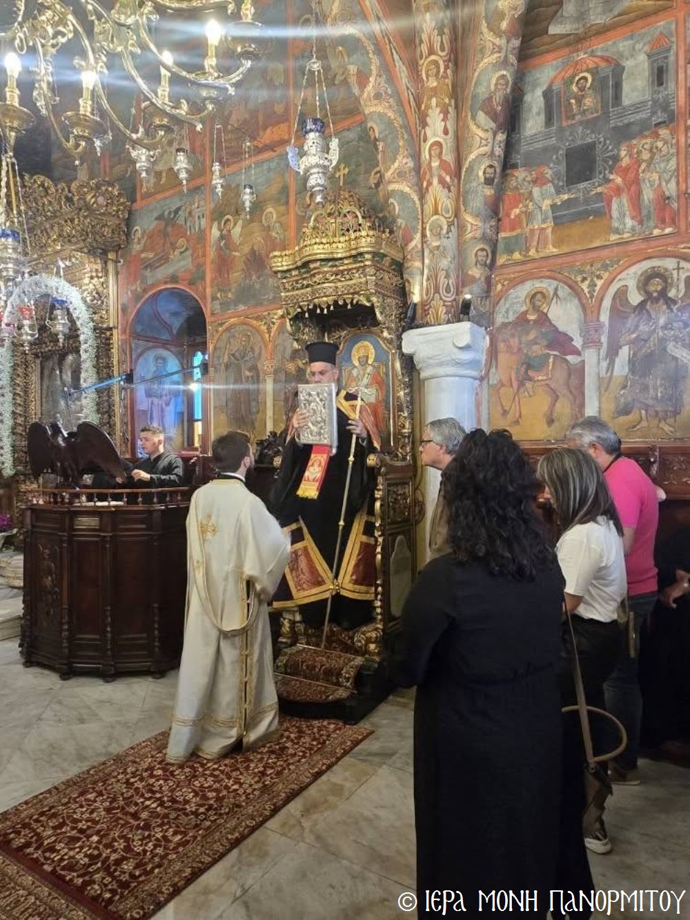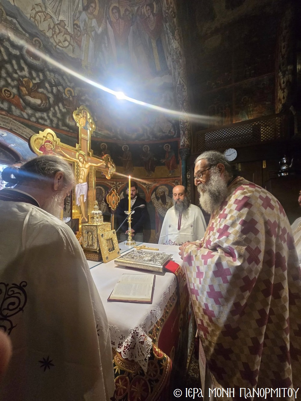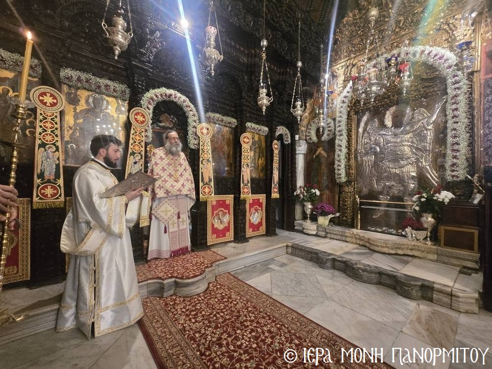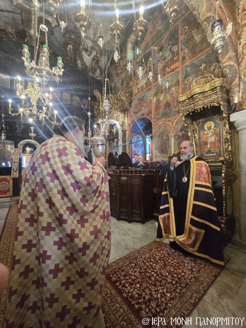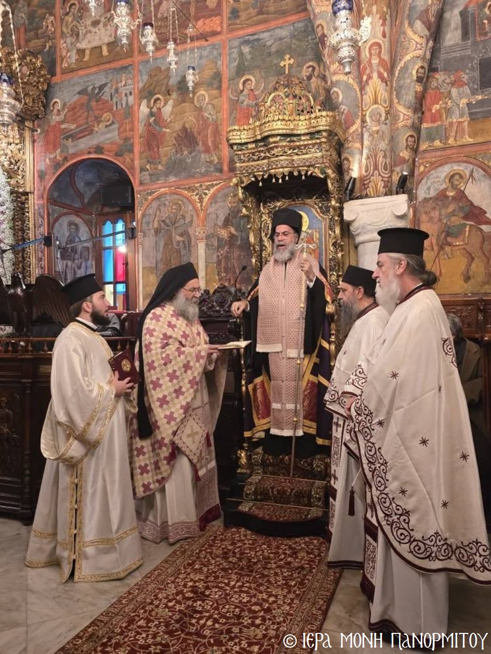 Σήμερα Παρασκευή 7η Νοεμβρίου 2025, προεόρτιος ἡμέρα τοῦ Ταξιάρχου, ἐτελέσθη μέ ἰδιαιτέρα συγκίνηση στήν Ἱερά Μονή Πανορμίτου τό Τεσσαρακονθήμερο Μνημόσυνο τοῦ μακαριστοῦ Μητροπολίτου Ροδοστόλου κυροῦ Χρυσοστόμου, ἱερουργοῦντος τό Μυστήριον τῆς Θείας Εὐχαριστίας τοῦ Πανοσιολογιωτάτου Καθηγουμένου τῆς Ἱερᾶς Μονῆς τῶν Ἰβήρων Ἀρχιμανδρίτου Ναθαναήλ, συλλειτουργούντων τοῦ Ἀρχιμ. π. Εὐθυμίου Βακαλάκη καί τοῦ Ἱερομον. π. Ἀθανασίου Ἰβηρίτου καί χοροστατοῦντος τοῦ Σεβ. Ποιμενάρχου μας κ. Χρυσοστόμου, συμπροσευχομένου δέ ἀπό τοῦ Ἱεροῦ Βήματος καί τοῦ Ἐψηφισμένου Ἐπισκόπου Ροδοστόλου κ. Ἀντωνίου, μεθ' ἑτέρων κληρικῶν.