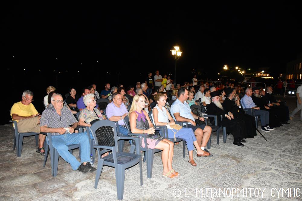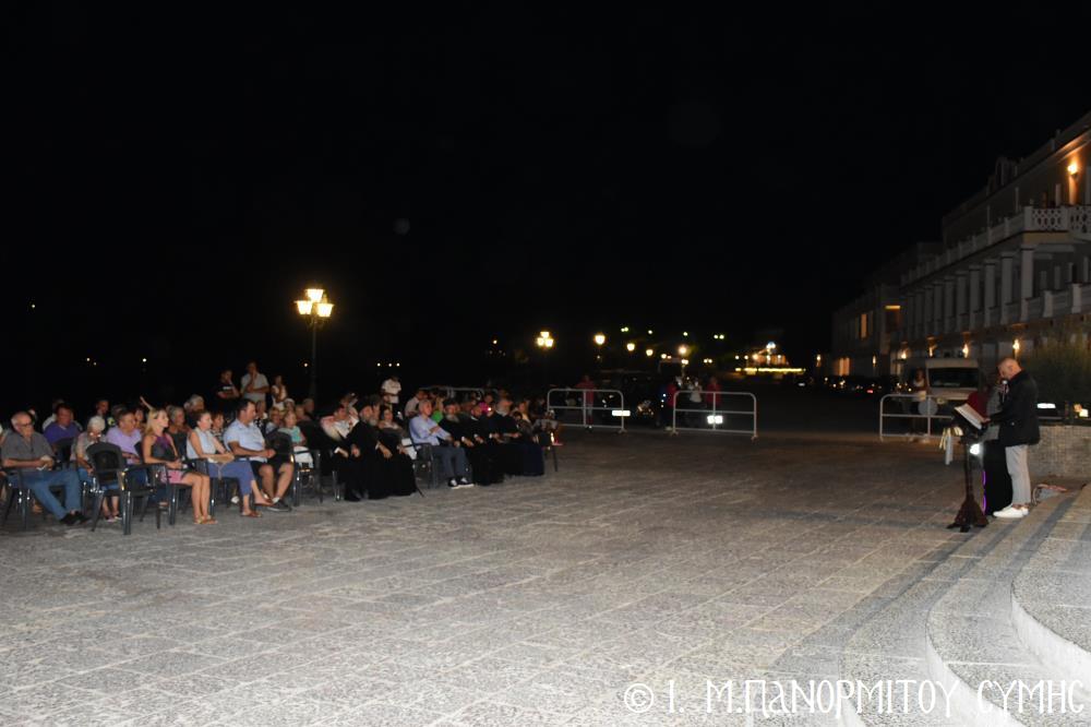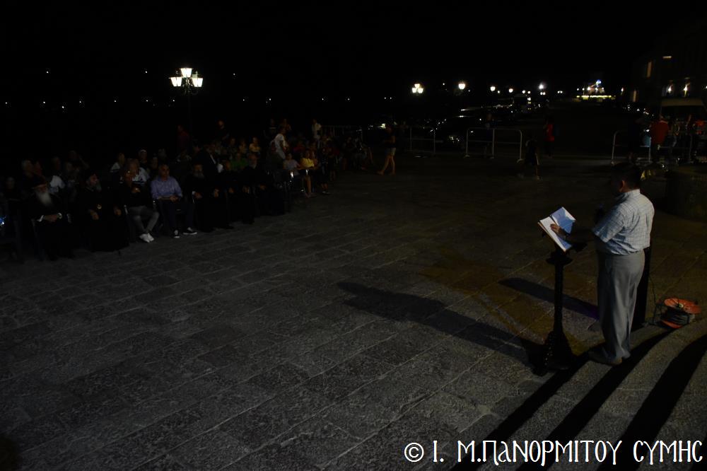 Ὁ Ἡγούμενος ξεκίνησε τήν ἐκδήλωση μέ σύντομο χαιρετισμό του, ἀκολούθησε ὁ Ἀντιδήμαρχος Σύμης καί κατόπιν τόν λόγο ἔλαβε ὁ Γραμματέας τῆς Ἱ. Μητροπόλεως Σύμης κ. Γεώργιος Πετρόπουλος, ὁ ὁποῖος ἀναφέρθηκε στά ἱστορικά γεγονότα τῆς ἐκτελέσεως τῶν τριῶν Ἐθνομαρτύρων.