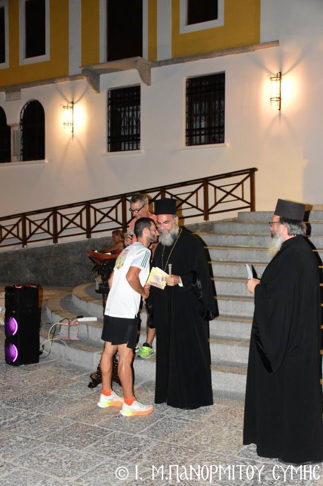 Σήμερα τό βράδυ, Σάββατο 9ῃ Σεπτεμβρίου 2023 ἡ Ἱ. Μονή Πανορμίτου, μέ τήν εὐλογία τοῦ Σεβ. Ποιμενάρχου μας κ. Χρυσοστόμου, τήν συμβολή τοῦ Δήμου Σύμης καί τῆς Ἑνώσεως Γυναικῶν Σύμης, πραγματοποίησε μέ ἐπιτυχία τόν ἀγῶνα δρόμου, ἀπό τήν Σύμη πρός τόν Πανορμίτη, μέ τήν χαρακτηριστική ὀνομασία «Δρόμος θυσίας 2023». Πρόκειται ὡς γνωστόν γιά μιά ἐκδήλωση τιμῆς ἀφιερωμένη στήν ἱερή μνήμη τῶν τριῶν Ἐθνομαρτύρων ἡρώων τῆς Μονῆς, τοῦ Ἡγουμένου της Ἀρχιμανδρίτου Χρυσάνθου Μαρουλάκη, τοῦ Οἰκονόμου της Μιχαήλ Λάμπρου καί τοῦ Λοχία Ἀσυρματιστῆ τοῦ Ἑλληνικοῦ Στρατοῦ Φλώρου Ζουγανέλη, οἱ ὁποῖοι ἔπεσαν ὑπέρ πίστεως καί πατρίδος ἀπό τά βαρβαρικά ὅπλα τῶν Ἰταλο-Γερμανῶν κατακτητῶν, τήν 11η Φεβρουαρίου 1944.