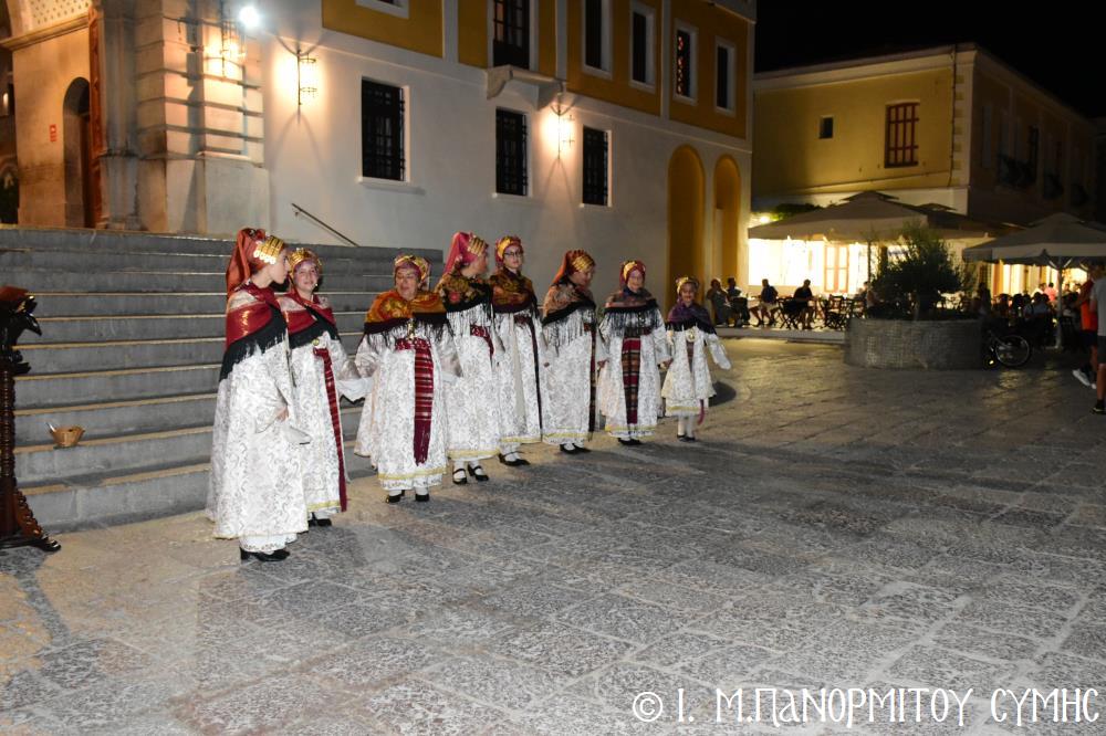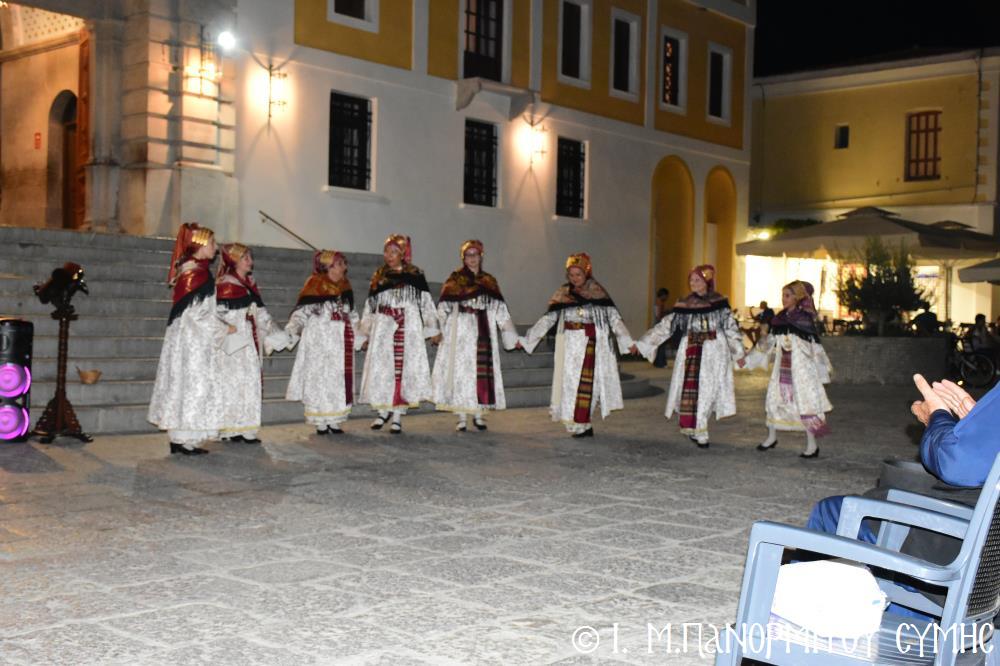 Τό πρόγραμμα συνεχίστηκε μέ παραδοσιακά Συμιακά καί Μικρασιάτικα τραγούδια, πού χόρεψαν καταπληκτικά τά μέλη τοῦ χορευτικοῦ της Ἕνωσης Γυναικῶν Σύμης.