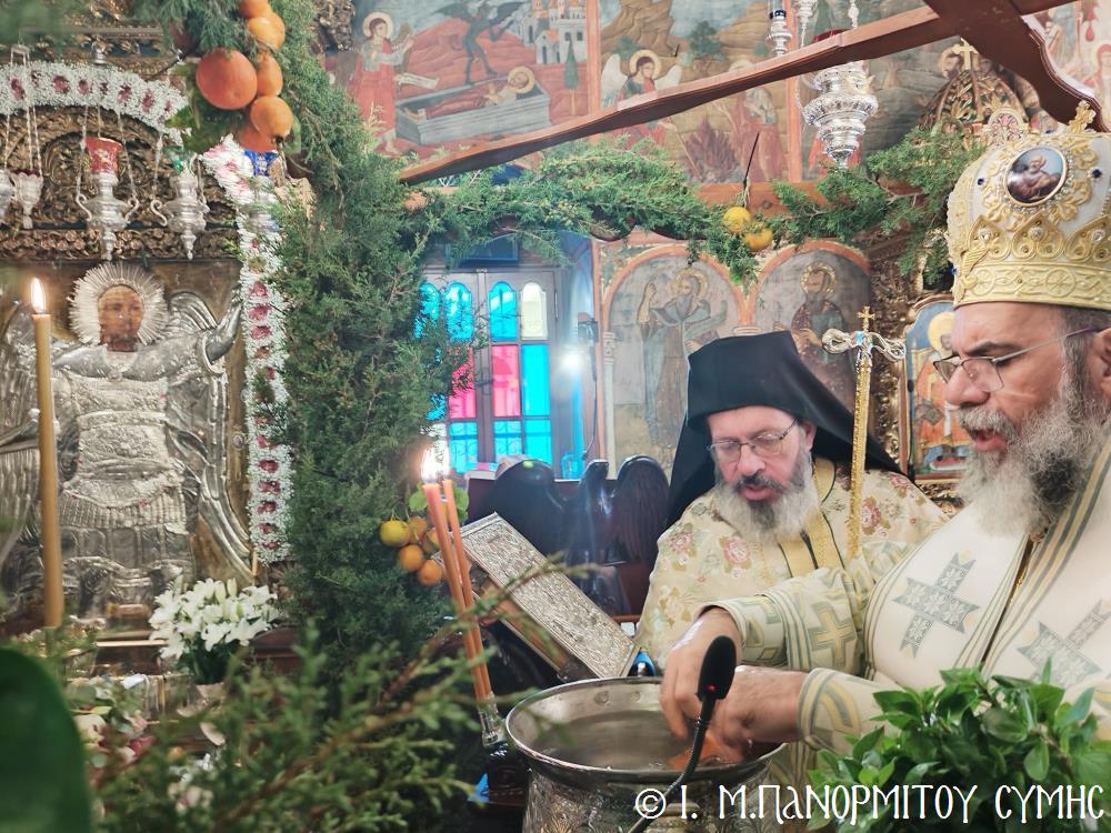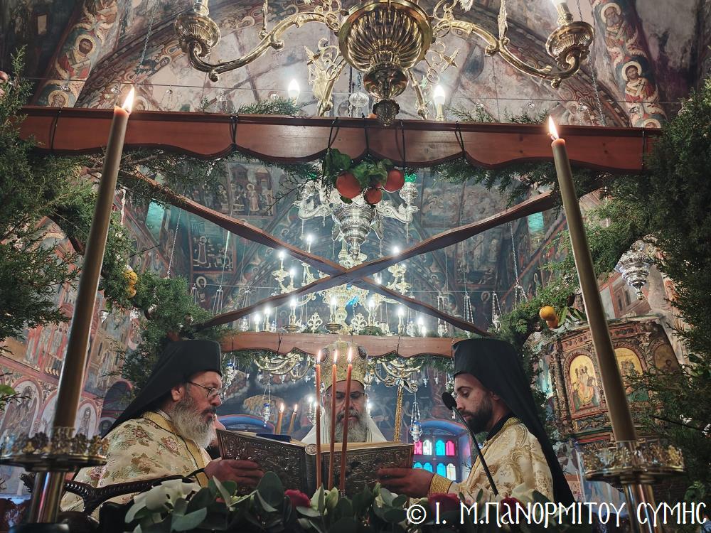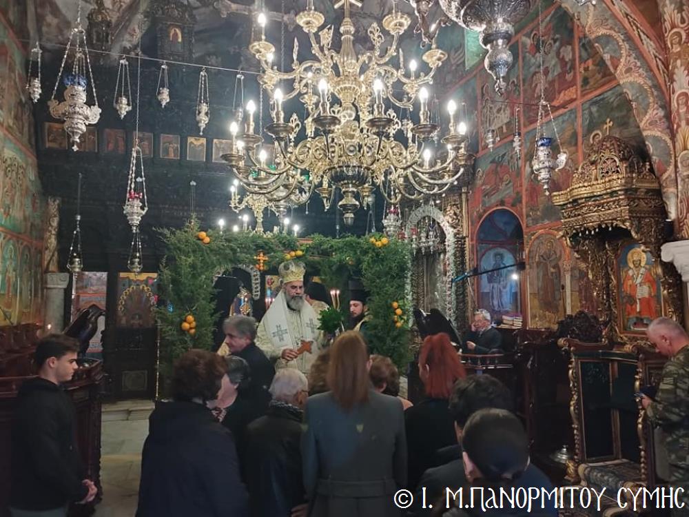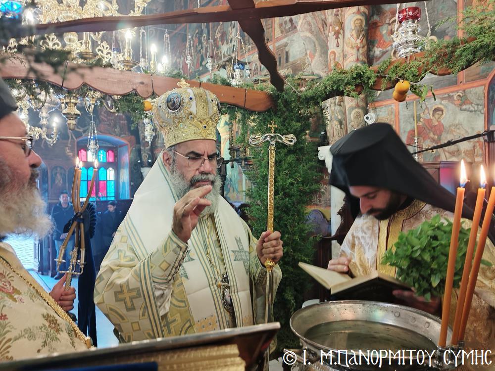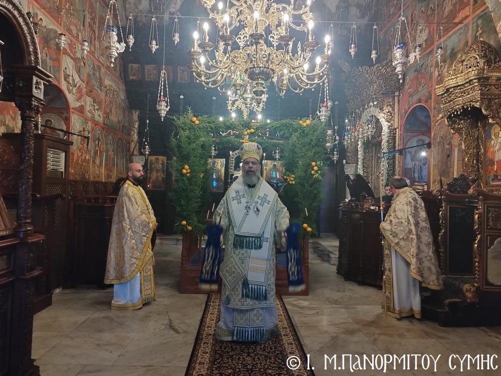 Σήμερα Παρασκευή 5η Ἰανουαρίου 2024, παραμονή τῆς ἑορτῆς τῶν Θεοφανείων, ὁ Σεβ. Ποιμενάρχης μας κ. Χρυσόστομος χοροστάτησε στόν Ὄρθρο, τήν Ἀκολουθία τῶν Μεγάλων Ὡρῶν καί τέλεσε τήν Θ. Λειτουργία τοῦ Μεγάλου Βασιλείου μετά τοῦ Πανηγυρικοῦ Ἑσπερινοῦ τῆς Ἑορτῆς στήν Ἱ. Μονή Ταξιάρχου Μιχαήλ τοῦ Πανορμίτου Σύμης, ἔχοντας συλλειτουργούς του τόν Πανοσιολ. Καθηγούμενο Ἀρχιμανδρίτη π. Ἀντώνιο Πατρό, τόν Ἀρχιμανδρίτη π. Ἀνδρέα Δημητρίου καί τόν Ἱεροδιάκονο π. Παῦλο Τερεζάκη.