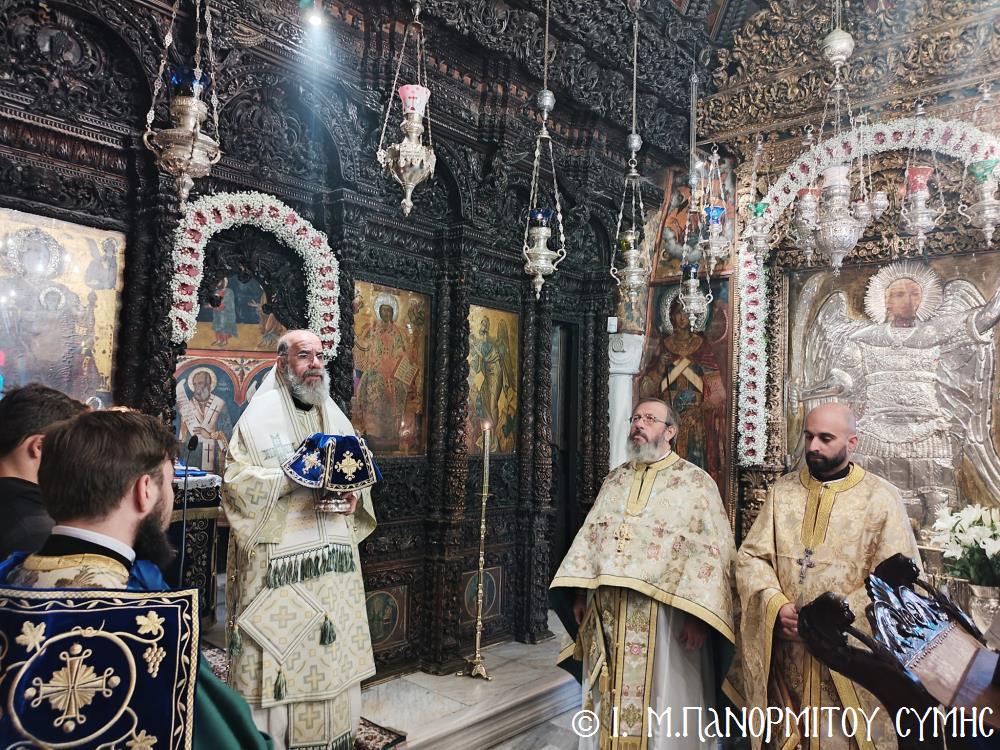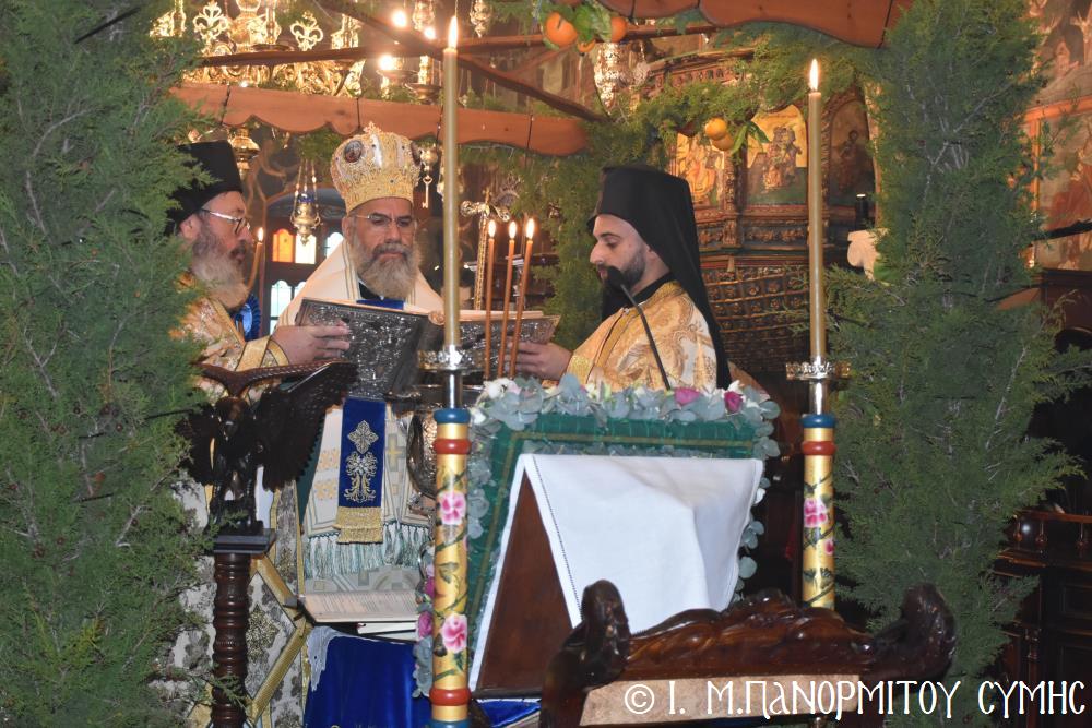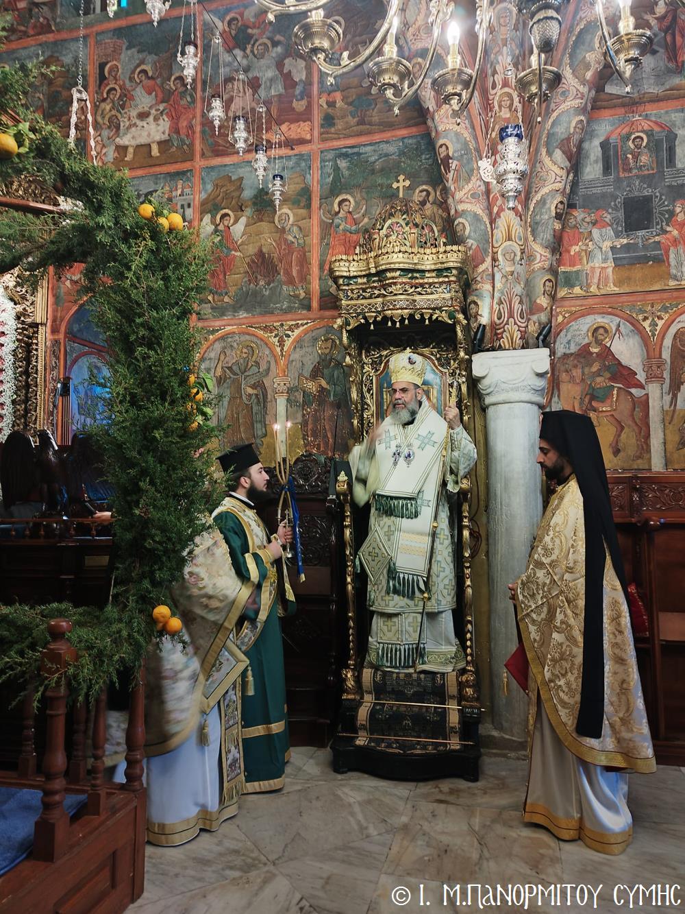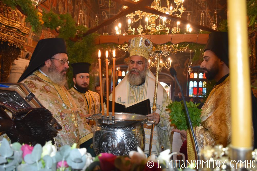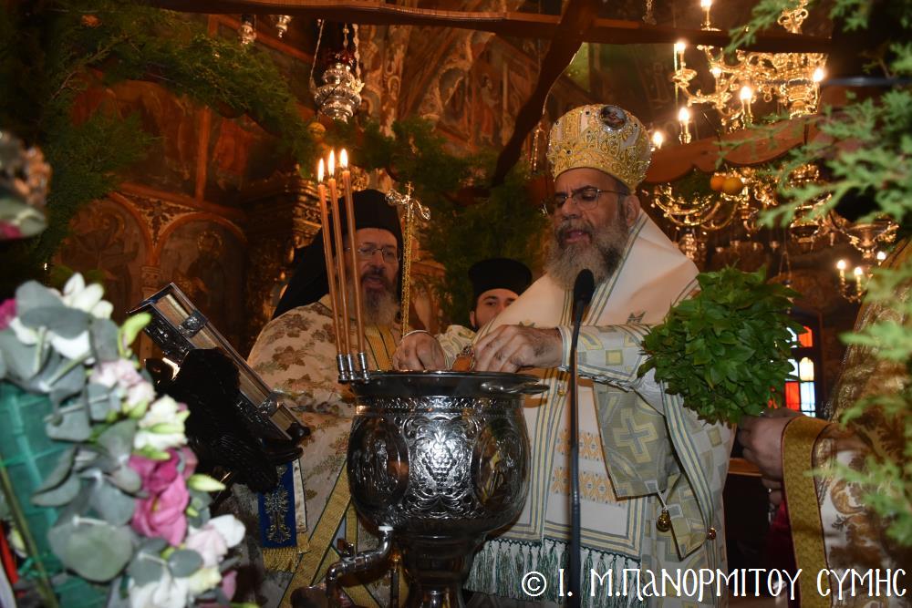 Σήμερα Παρασκευή 5η Ἰανουαρίου 2024, παραμονή τῆς ἑορτῆς τῶν Θεοφανείων, ὁ Σεβ. Ποιμενάρχης μας κ. Χρυσόστομος χοροστάτησε στόν Ὄρθρο, τήν Ἀκολουθία τῶν Μεγάλων Ὡρῶν καί τέλεσε τήν Θ. Λειτουργία τοῦ Μεγάλου Βασιλείου μετά τοῦ Πανηγυρικοῦ Ἑσπερινοῦ τῆς Ἑορτῆς στήν Ἱ. Μονή Ταξιάρχου Μιχαήλ τοῦ Πανορμίτου Σύμης, ἔχοντας συλλειτουργούς του τόν Πανοσιολ. Καθηγούμενο Ἀρχιμανδρίτη π. Ἀντώνιο Πατρό, τόν Ἀρχιμανδρίτη π. Ἀνδρέα Δημητρίου καί τόν Ἱεροδιάκονο π. Παῦλο Τερεζάκη.