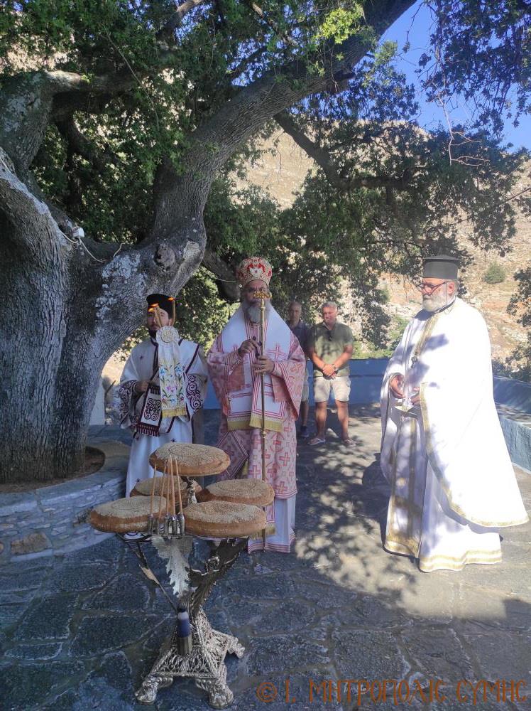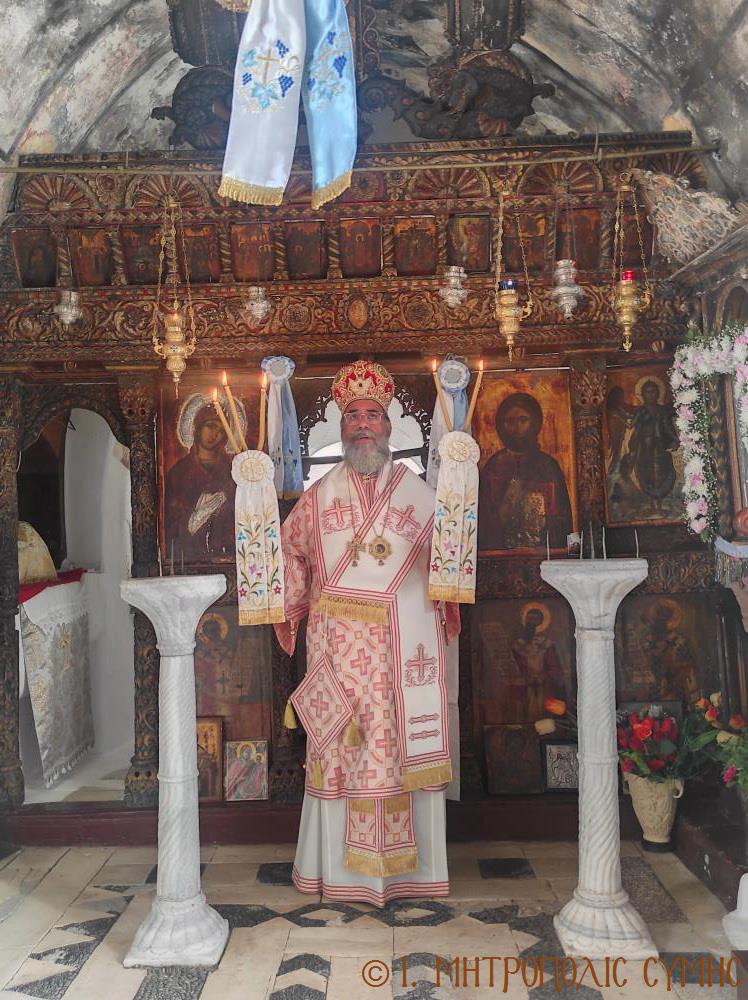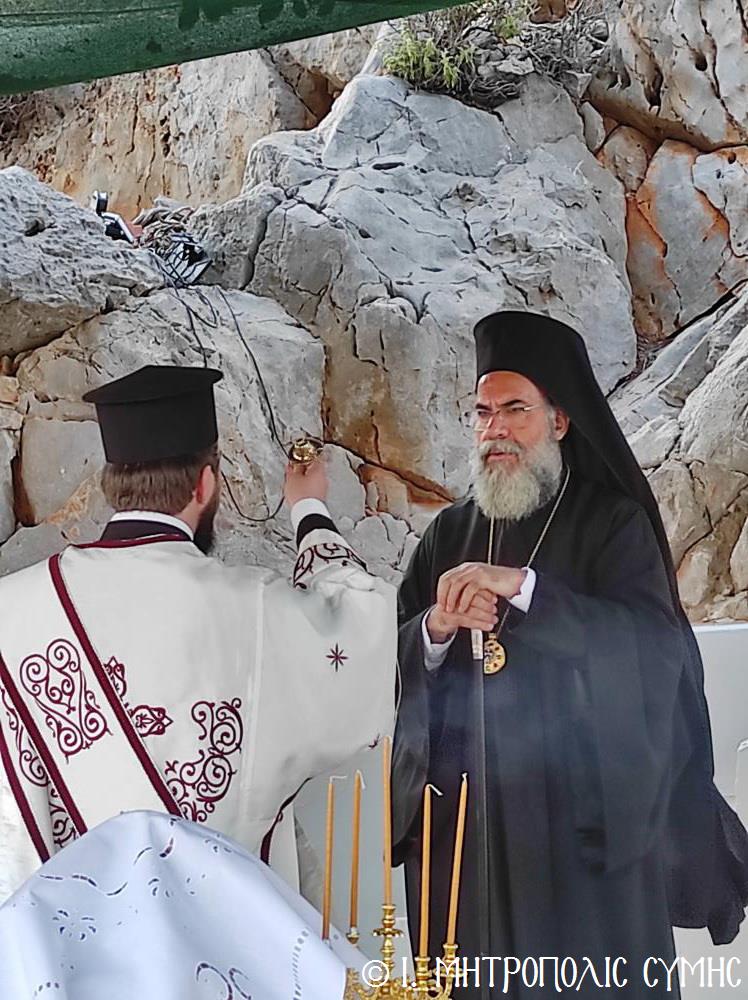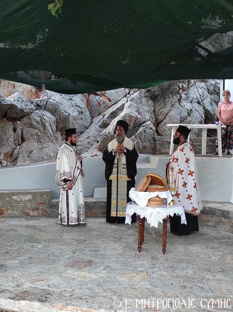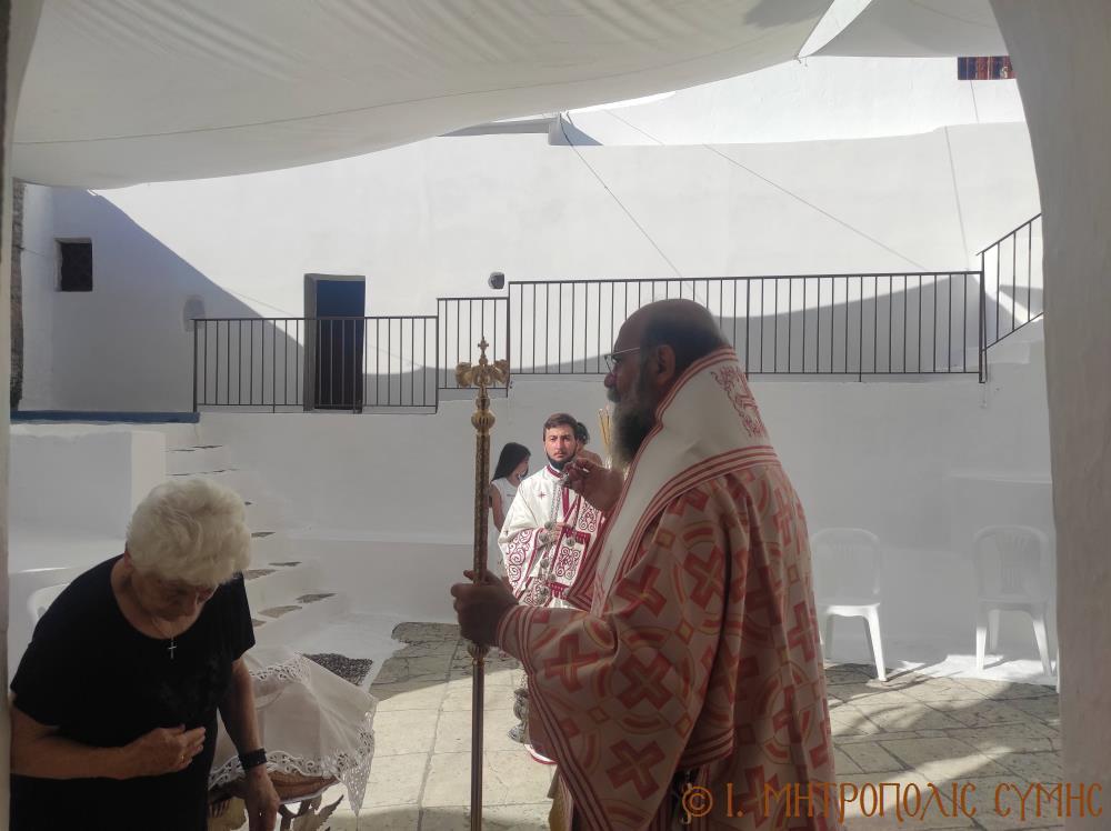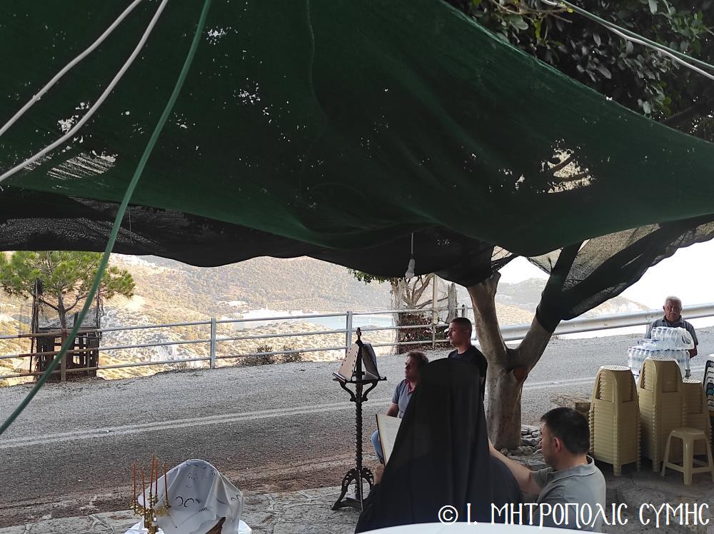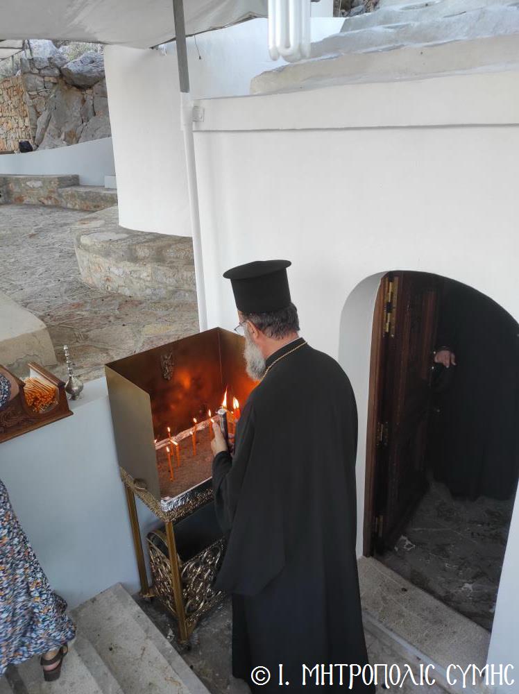 Σήμερα, Πέμπτη 20η Ἰουλίου, κυριώνυμη ἡμέρα τῆς ἑορτῆς, ὁ Σεβ. Μητροπολίτης μας κ. Χρυσόστομος χοροστάτησε τοῦ Ὄρθρου καί τέλεσε τήν Θεία Λειτουργία, στήν παλαίφατη Ἱ. Μονή τοῦ Προφήτου Ἠλιού «Βίγλας», κατά τήν Συμαϊκή ντοπιολαλιά στόν «Ἅϊ Νουλιᾶ», πού βρίσκεται σκαρφαλωμένη στήν ἀπότομη πλαγιά τοῦ ὁμώνυμου βουνοῦ, πάνω ἀπό τό Κοιμητήριο τῆς Ἁγίας Μαρίνας. Συλλειτουργοί του ἦσαν ὁ π. Στέφανος Μακρῆς καί ὁ Ἱεροδιάκονος π. Παῦλος Τερεζάκης, ἐνῶ τό Ἱ. ἀναλόγιο διακόνησαν οἱ Ἱεροψάλτες κ. Ἀγαπητός Μιχελλής καί κ. Μερκούριος Γιανναρᾶς.