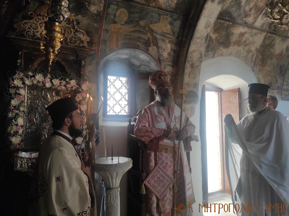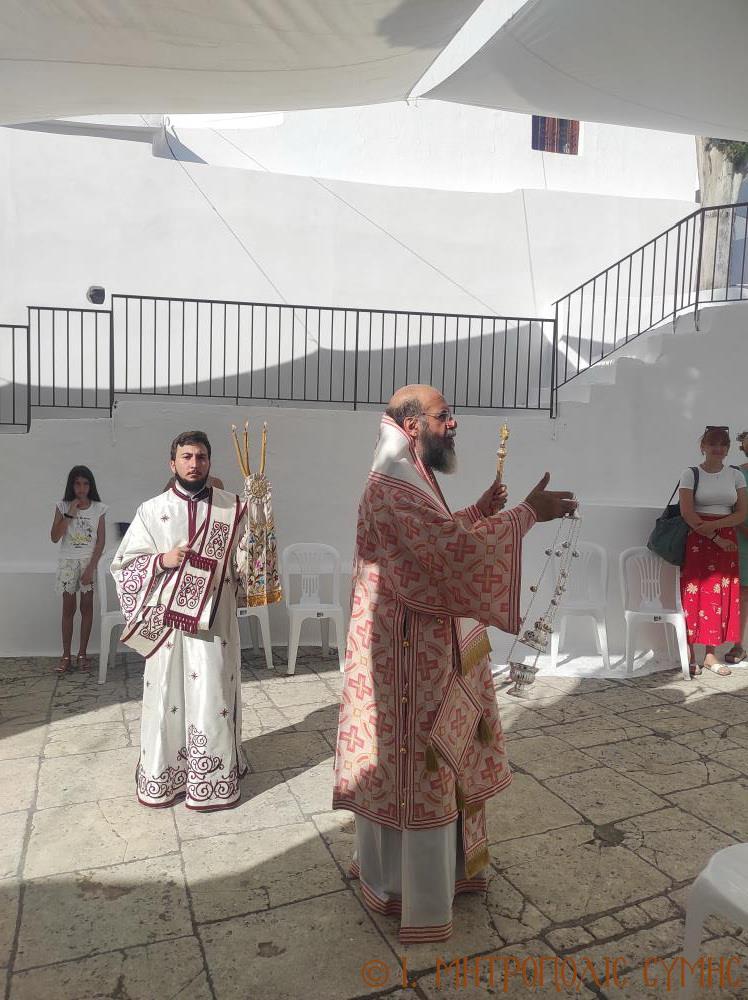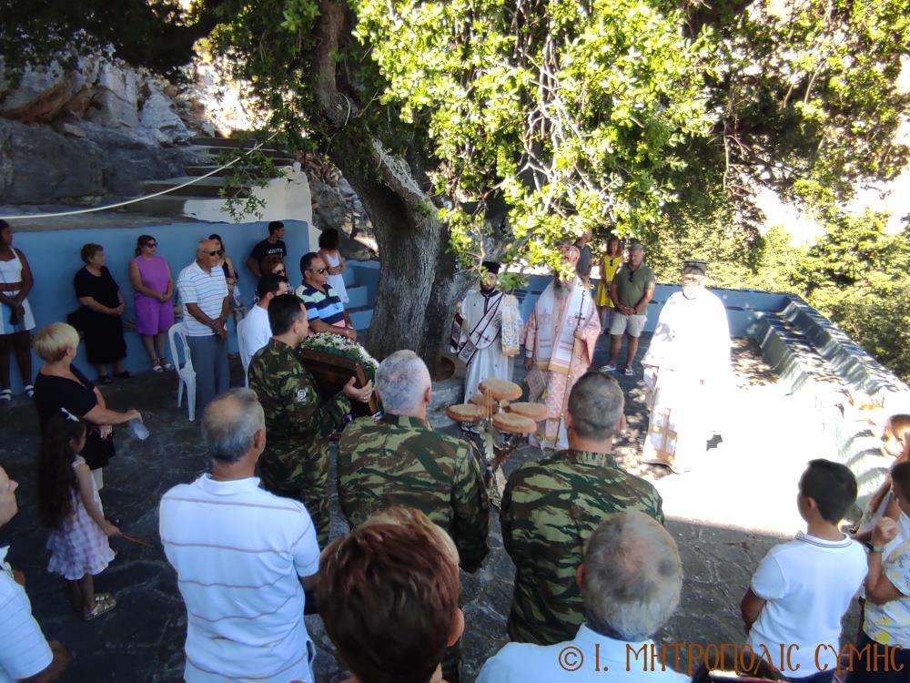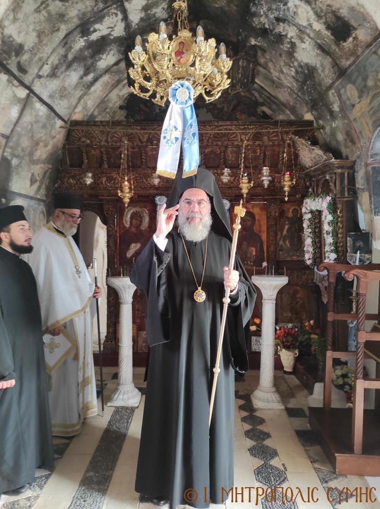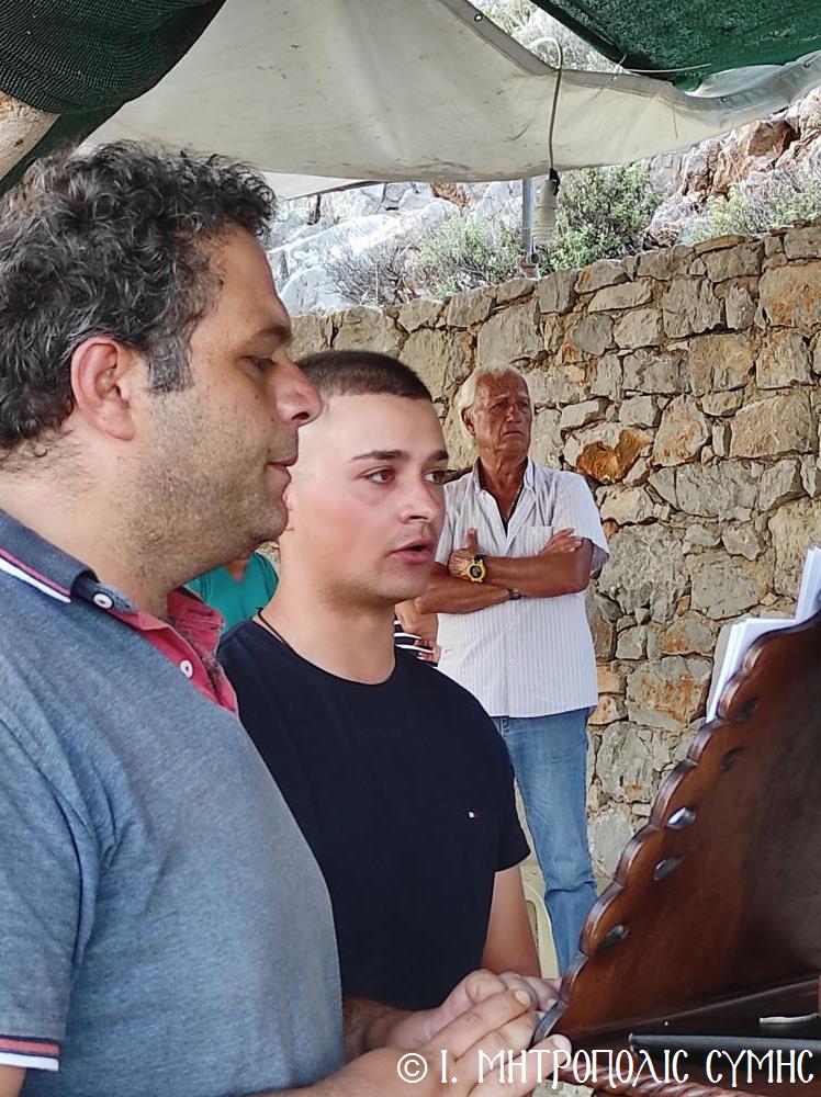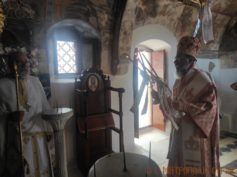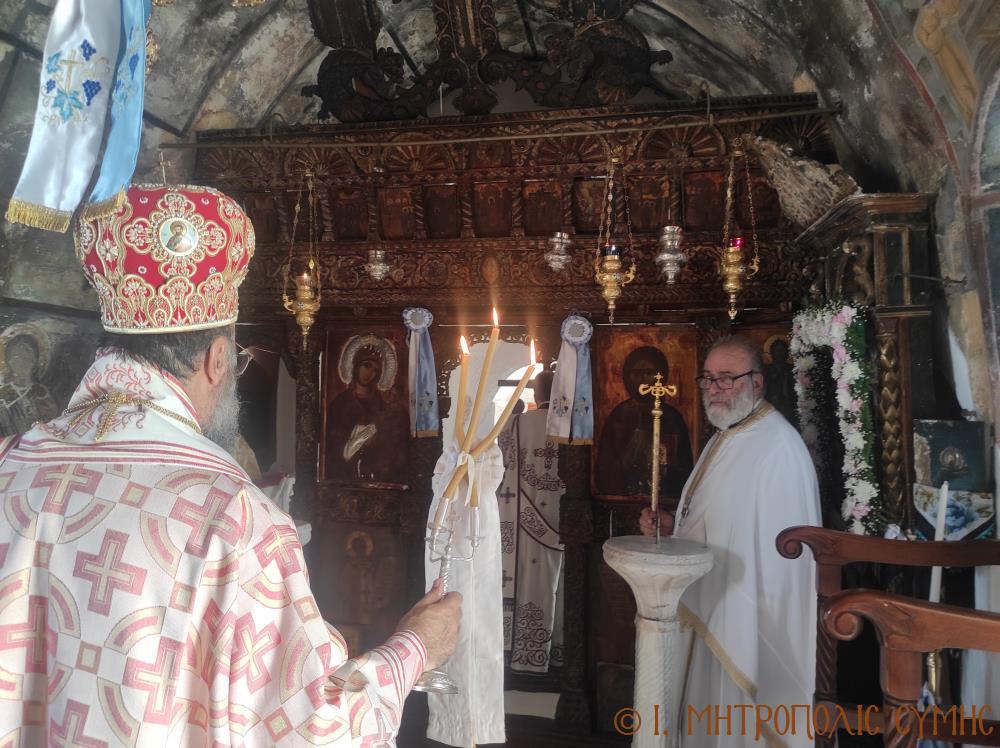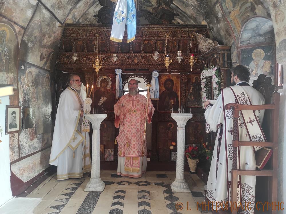 Σήμερα, Πέμπτη 20η Ἰουλίου, κυριώνυμη ἡμέρα τῆς ἑορτῆς, ὁ Σεβ. Μητροπολίτης μας κ. Χρυσόστομος χοροστάτησε τοῦ Ὄρθρου καί τέλεσε τήν Θεία Λειτουργία, στήν παλαίφατη Ἱ. Μονή τοῦ Προφήτου Ἠλιού «Βίγλας», κατά τήν Συμαϊκή ντοπιολαλιά στόν «Ἅϊ Νουλιᾶ», πού βρίσκεται σκαρφαλωμένη στήν ἀπότομη πλαγιά τοῦ ὁμώνυμου βουνοῦ, πάνω ἀπό τό Κοιμητήριο τῆς Ἁγίας Μαρίνας. Συλλειτουργοί του ἦσαν ὁ π. Στέφανος Μακρῆς καί ὁ Ἱεροδιάκονος π. Παῦλος Τερεζάκης, ἐνῶ τό Ἱ. ἀναλόγιο διακόνησαν οἱ Ἱεροψάλτες κ. Ἀγαπητός Μιχελλής καί κ. Μερκούριος Γιανναρᾶς.