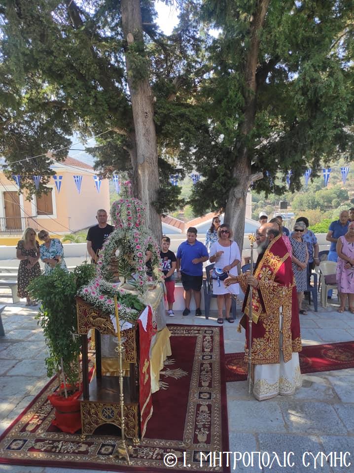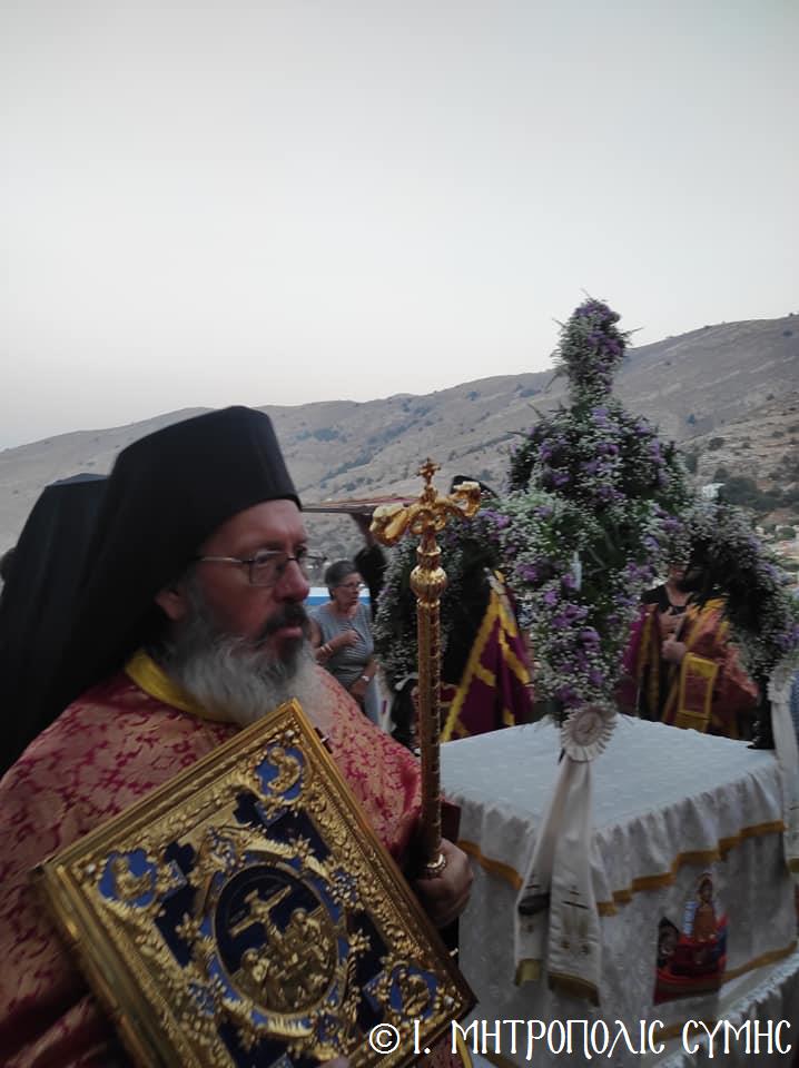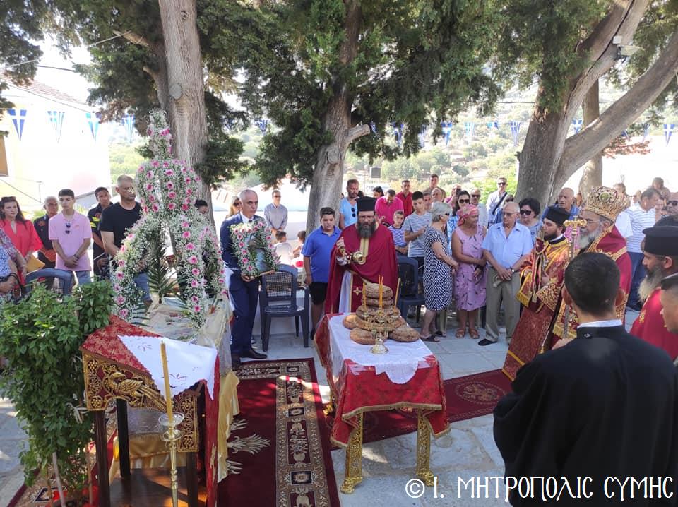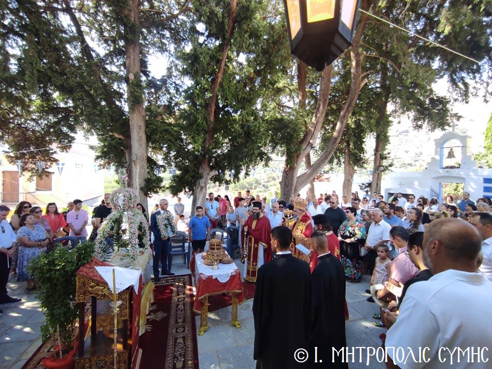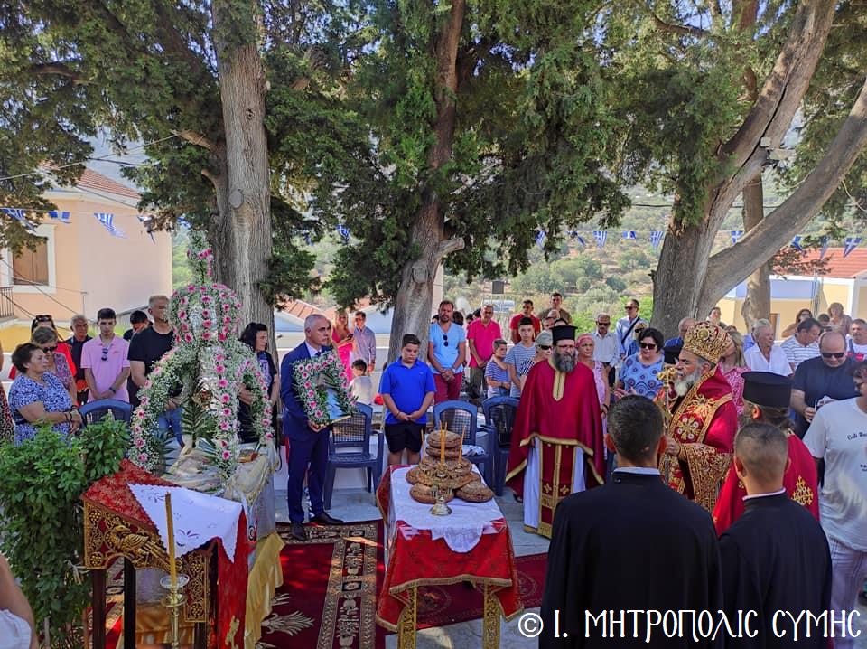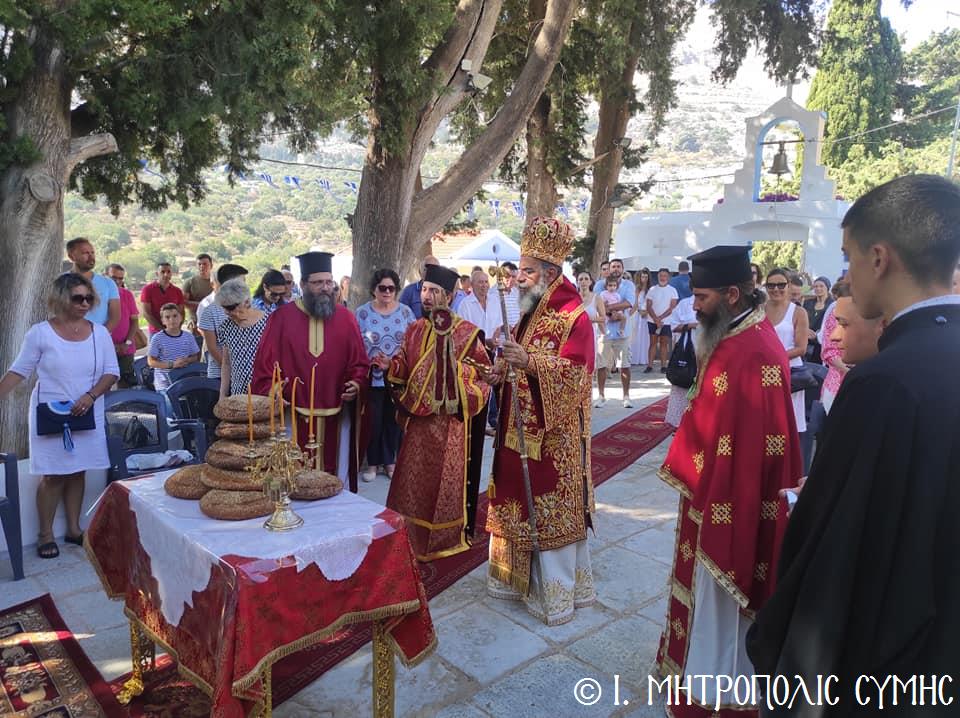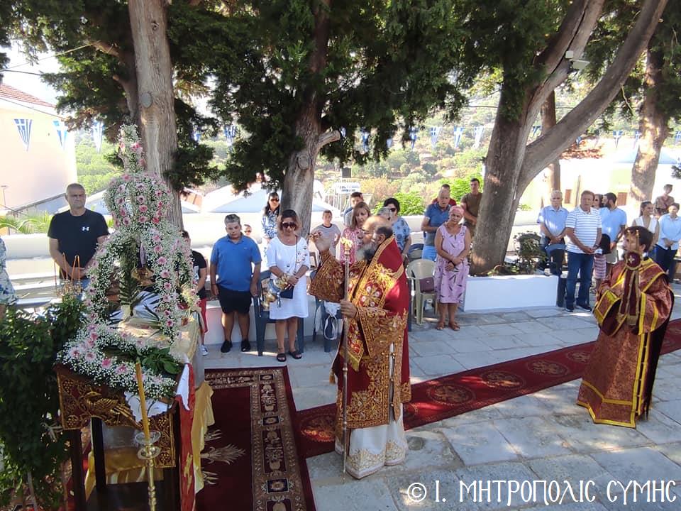 Μέ μεγαλοπρέπεια καί ἰδιαίτερη λαμπρότητα πανηγύρισε καί ἐφέτος ἡ Σύμη, μαζί μέ ὅλον τόν Ὀρθόδοξο κόσμο, τήν Ἑορτή τῆς Κοιμήσεως τῆς Ὑπεραγίας Θεοτόκου τῆς Ἐφόρου καί Προστάτιδος τοῦ Γένους μας. Πλῆθος πιστῶν συνέρρευσε ὅλες τίς ἡμέρες τοῦ Δεκαπενταυγούστου στίς γραφικές ἐκκλησίες καί τά ἀπέριττα ἐξωκκλήσια τοῦ νησιοῦ μας, πού εἶναι ἀφιερωμένα στήν Χάρη Της, γιά νά ὑμνήσει καί νά δοξάσει τήν Μεγάλη Μητέρα, τό στήριγμα καί τήν καταφυγή τῶν ψυχῶν μας, ἐπιβεβαιώνοντας γιά μία ἀκόμα φορά τήν βαθιά πίστη τοῦ Ἕλληνα, τήν πίστη πού τόν στήριξε σέ κάθε δύσκολη στιγμή καί τόν βοήθησε νά ἀντιμετωπίσει καί νά ξεπεράσει μέ τρόπο θαυμαστό δυσκολίες καί ἐμπόδια, κατ’ ἄνθρωπον, ἀνυπέρβλητα.