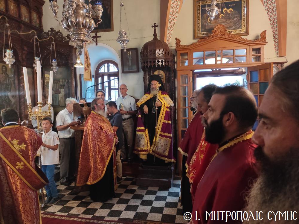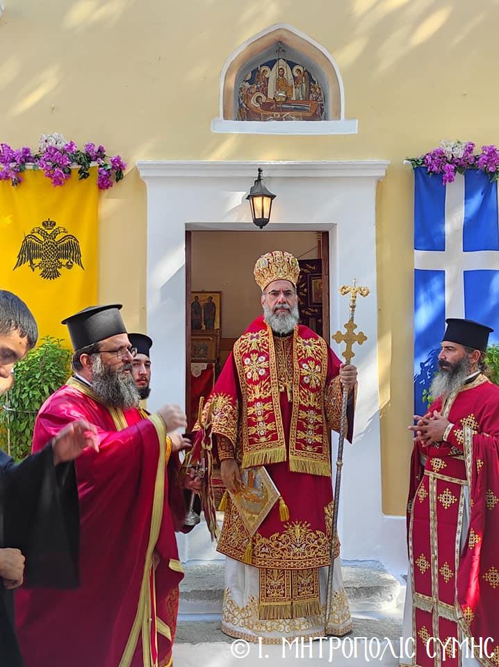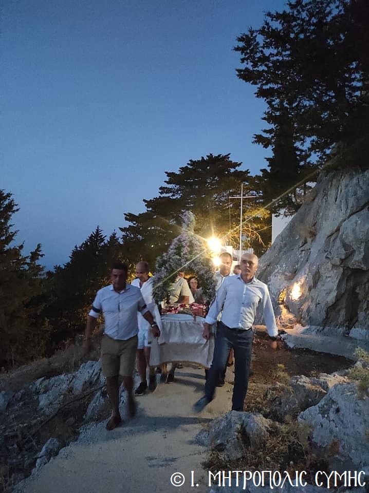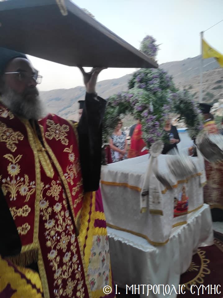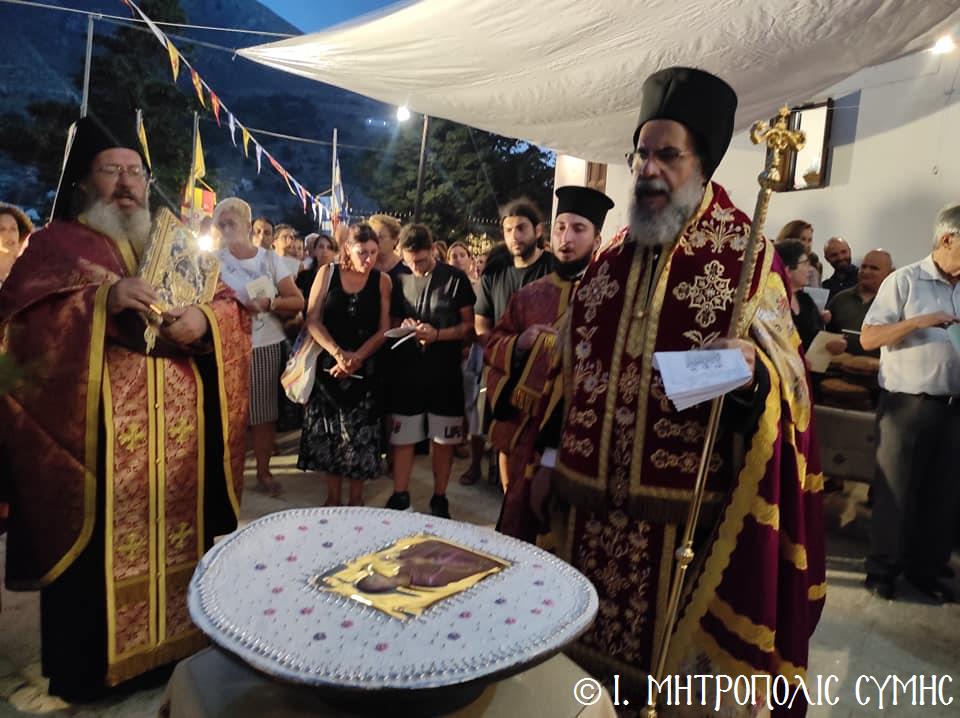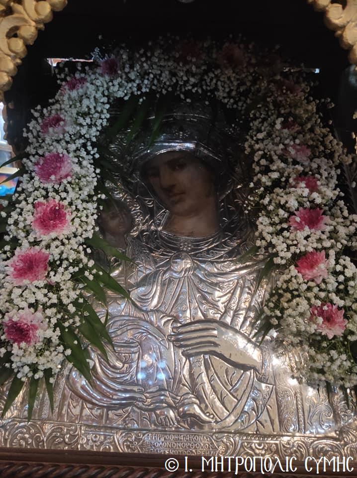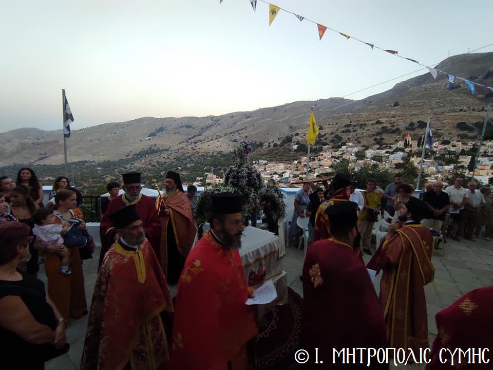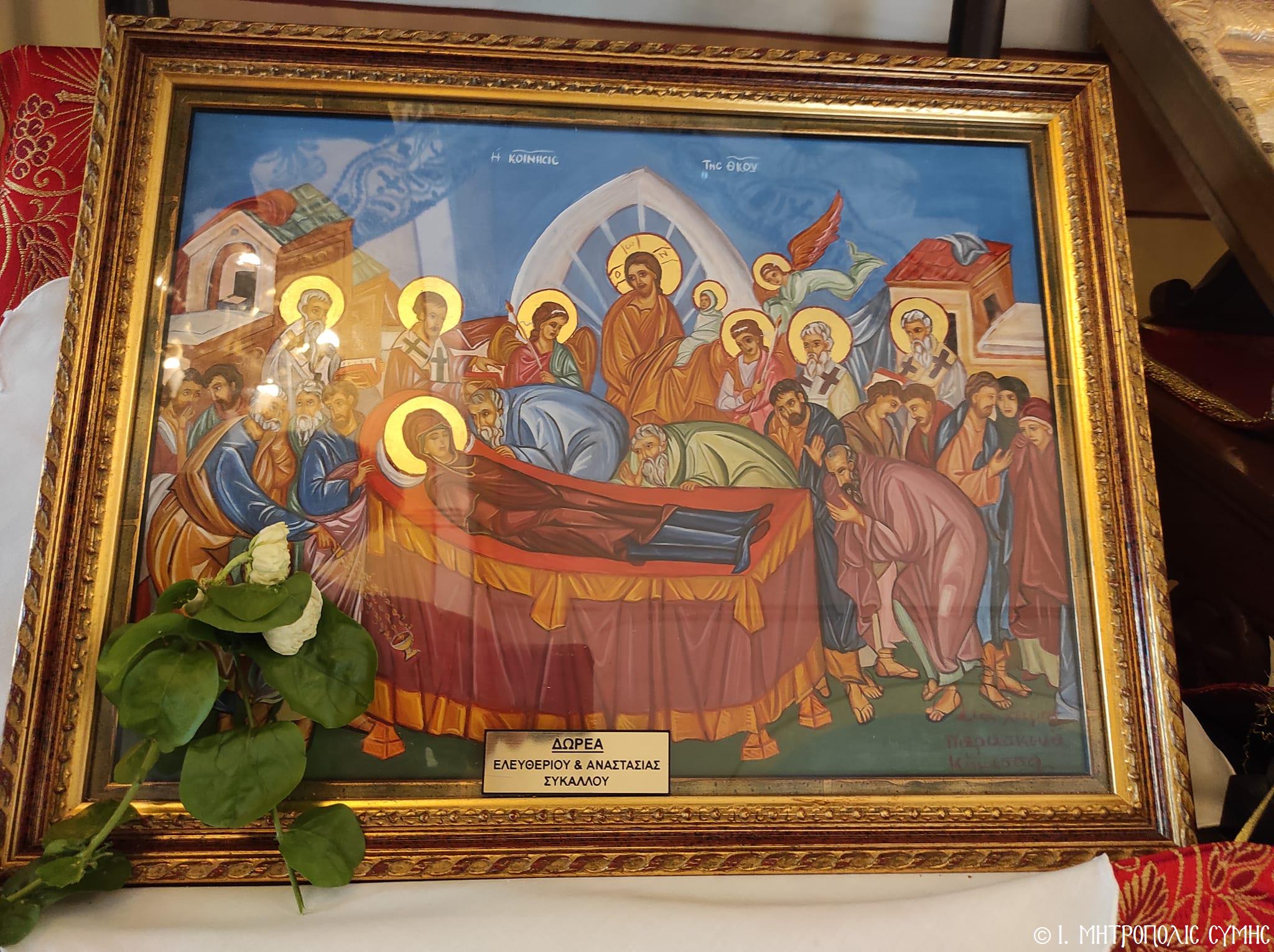 Μέ μεγαλοπρέπεια καί ἰδιαίτερη λαμπρότητα πανηγύρισε καί ἐφέτος ἡ Σύμη, μαζί μέ ὅλον τόν Ὀρθόδοξο κόσμο, τήν Ἑορτή τῆς Κοιμήσεως τῆς Ὑπεραγίας Θεοτόκου τῆς Ἐφόρου καί Προστάτιδος τοῦ Γένους μας. Πλῆθος πιστῶν συνέρρευσε ὅλες τίς ἡμέρες τοῦ Δεκαπενταυγούστου στίς γραφικές ἐκκλησίες καί τά ἀπέριττα ἐξωκκλήσια τοῦ νησιοῦ μας, πού εἶναι ἀφιερωμένα στήν Χάρη Της, γιά νά ὑμνήσει καί νά δοξάσει τήν Μεγάλη Μητέρα, τό στήριγμα καί τήν καταφυγή τῶν ψυχῶν μας, ἐπιβεβαιώνοντας γιά μία ἀκόμα φορά τήν βαθιά πίστη τοῦ Ἕλληνα, τήν πίστη πού τόν στήριξε σέ κάθε δύσκολη στιγμή καί τόν βοήθησε νά ἀντιμετωπίσει καί νά ξεπεράσει μέ τρόπο θαυμαστό δυσκολίες καί ἐμπόδια, κατ’ ἄνθρωπον, ἀνυπέρβλητα.