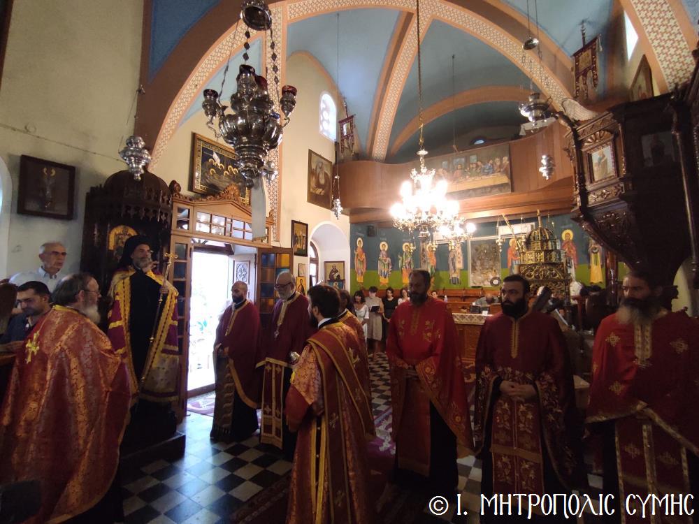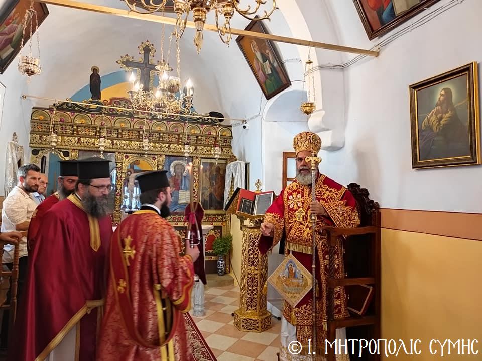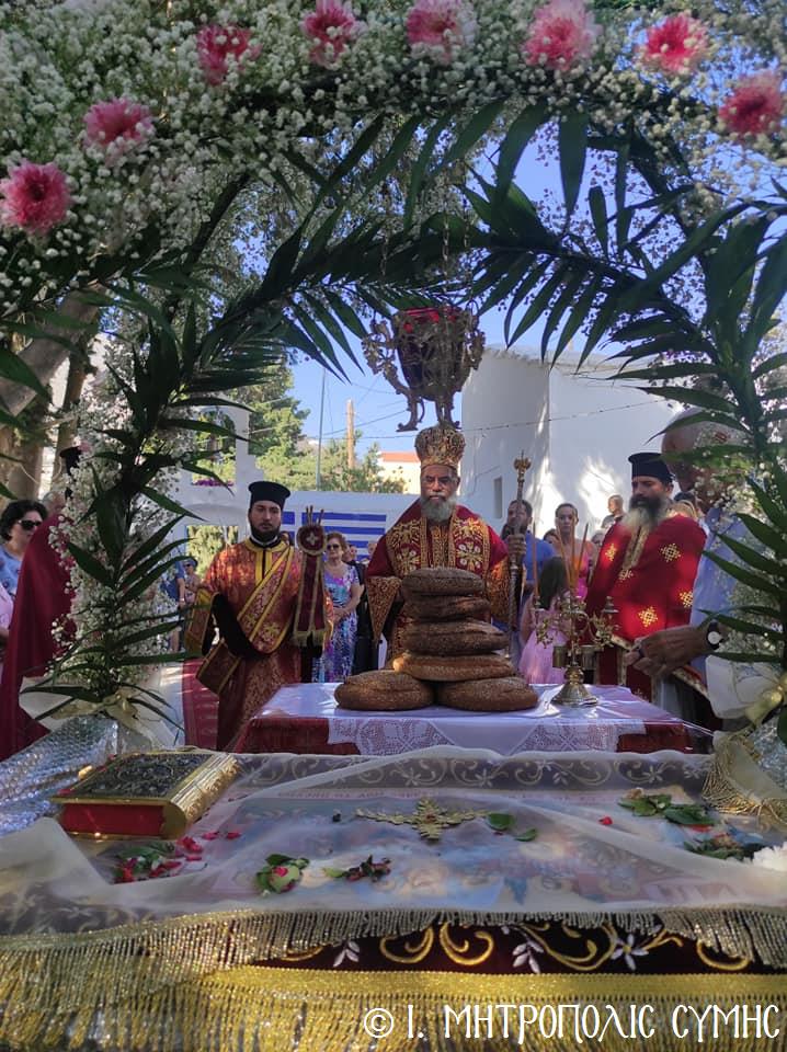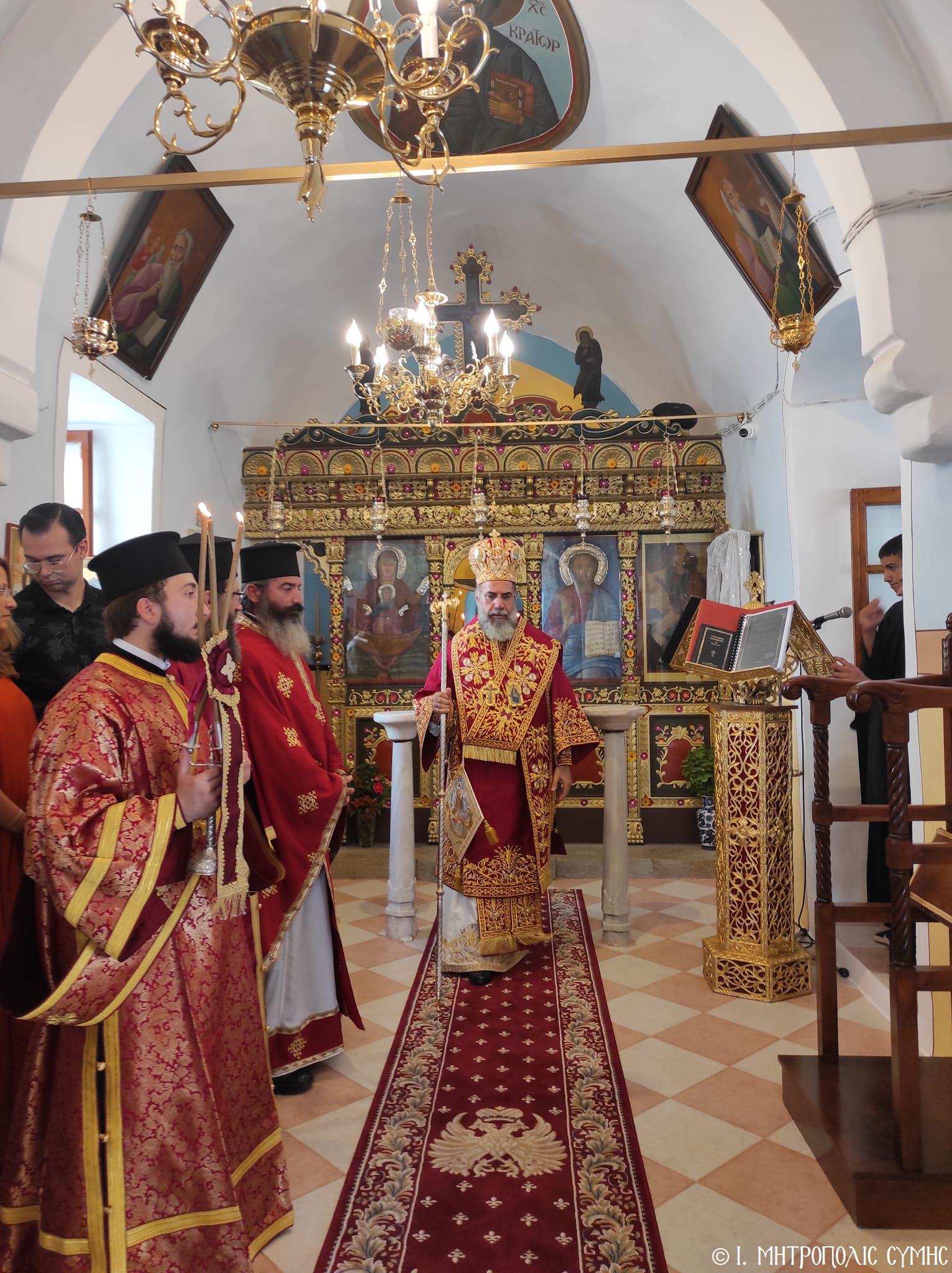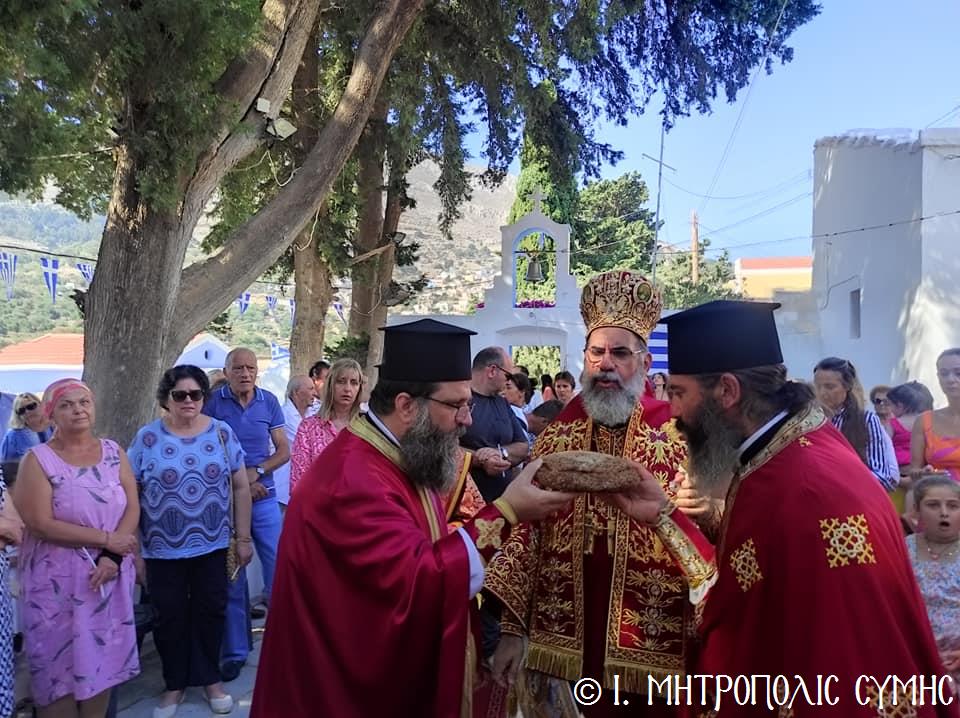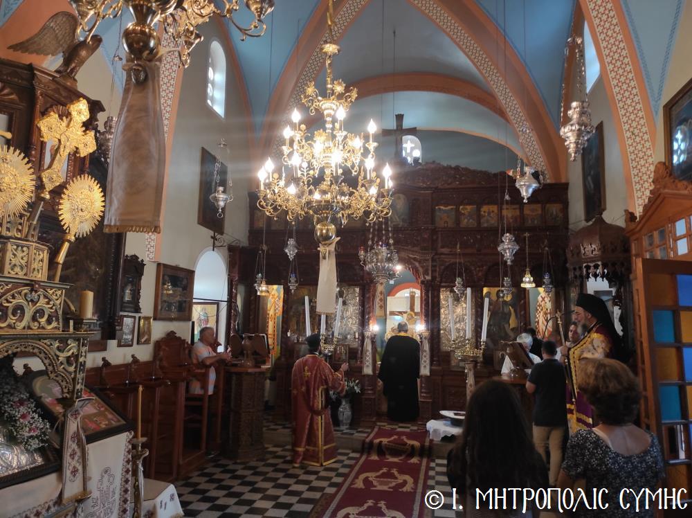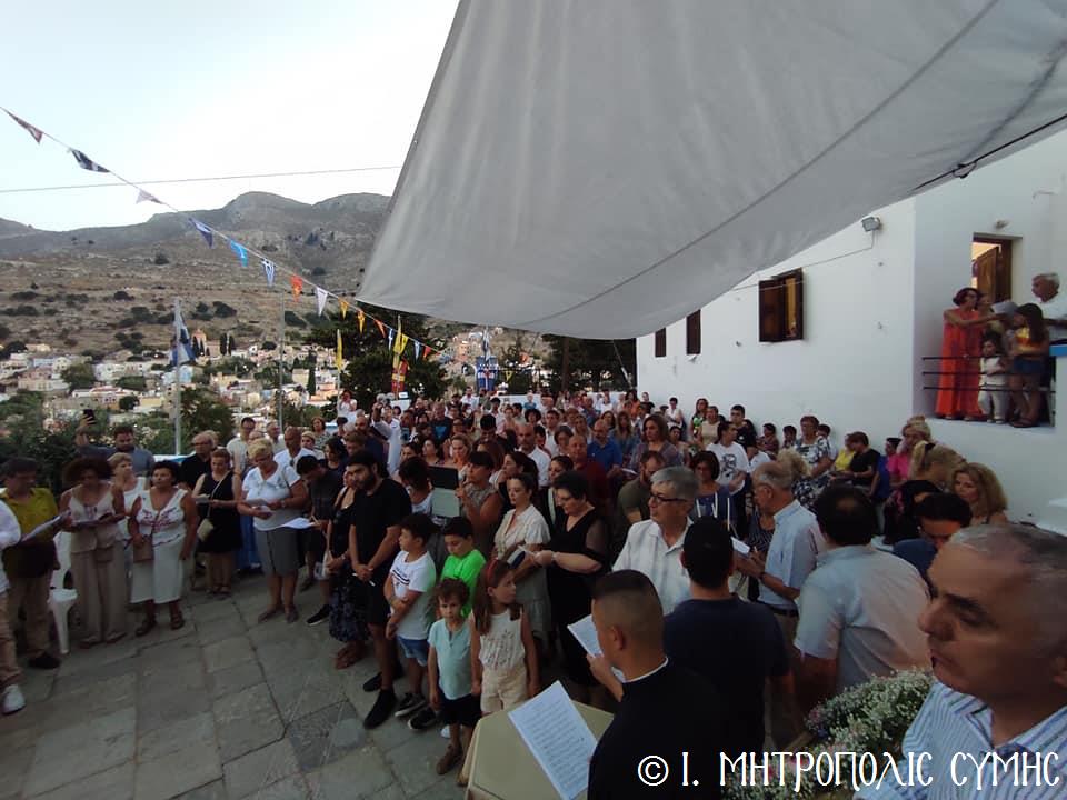 Μέ μεγαλοπρέπεια καί ἰδιαίτερη λαμπρότητα πανηγύρισε καί ἐφέτος ἡ Σύμη, μαζί μέ ὅλον τόν Ὀρθόδοξο κόσμο, τήν Ἑορτή τῆς Κοιμήσεως τῆς Ὑπεραγίας Θεοτόκου τῆς Ἐφόρου καί Προστάτιδος τοῦ Γένους μας. Πλῆθος πιστῶν συνέρρευσε ὅλες τίς ἡμέρες τοῦ Δεκαπενταυγούστου στίς γραφικές ἐκκλησίες καί τά ἀπέριττα ἐξωκκλήσια τοῦ νησιοῦ μας, πού εἶναι ἀφιερωμένα στήν Χάρη Της, γιά νά ὑμνήσει καί νά δοξάσει τήν Μεγάλη Μητέρα, τό στήριγμα καί τήν καταφυγή τῶν ψυχῶν μας, ἐπιβεβαιώνοντας γιά μία ἀκόμα φορά τήν βαθιά πίστη τοῦ Ἕλληνα, τήν πίστη πού τόν στήριξε σέ κάθε δύσκολη στιγμή καί τόν βοήθησε νά ἀντιμετωπίσει καί νά ξεπεράσει μέ τρόπο θαυμαστό δυσκολίες καί ἐμπόδια, κατ’ ἄνθρωπον, ἀνυπέρβλητα.