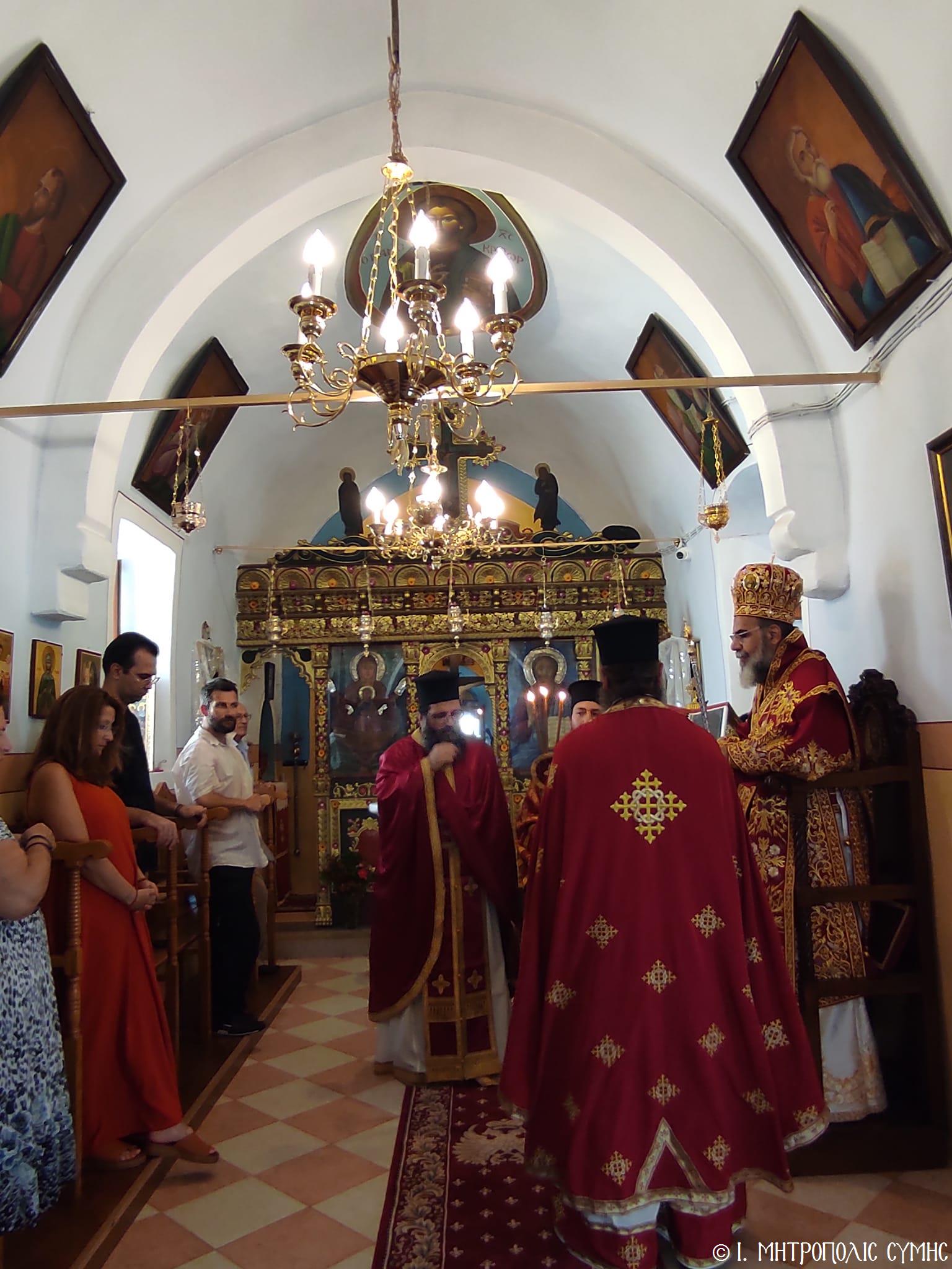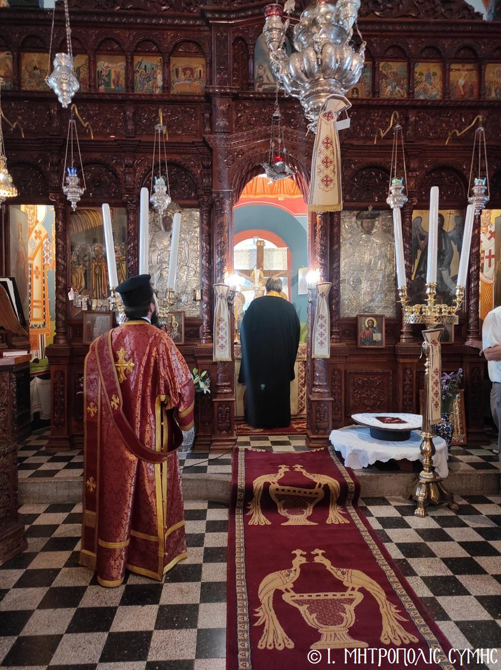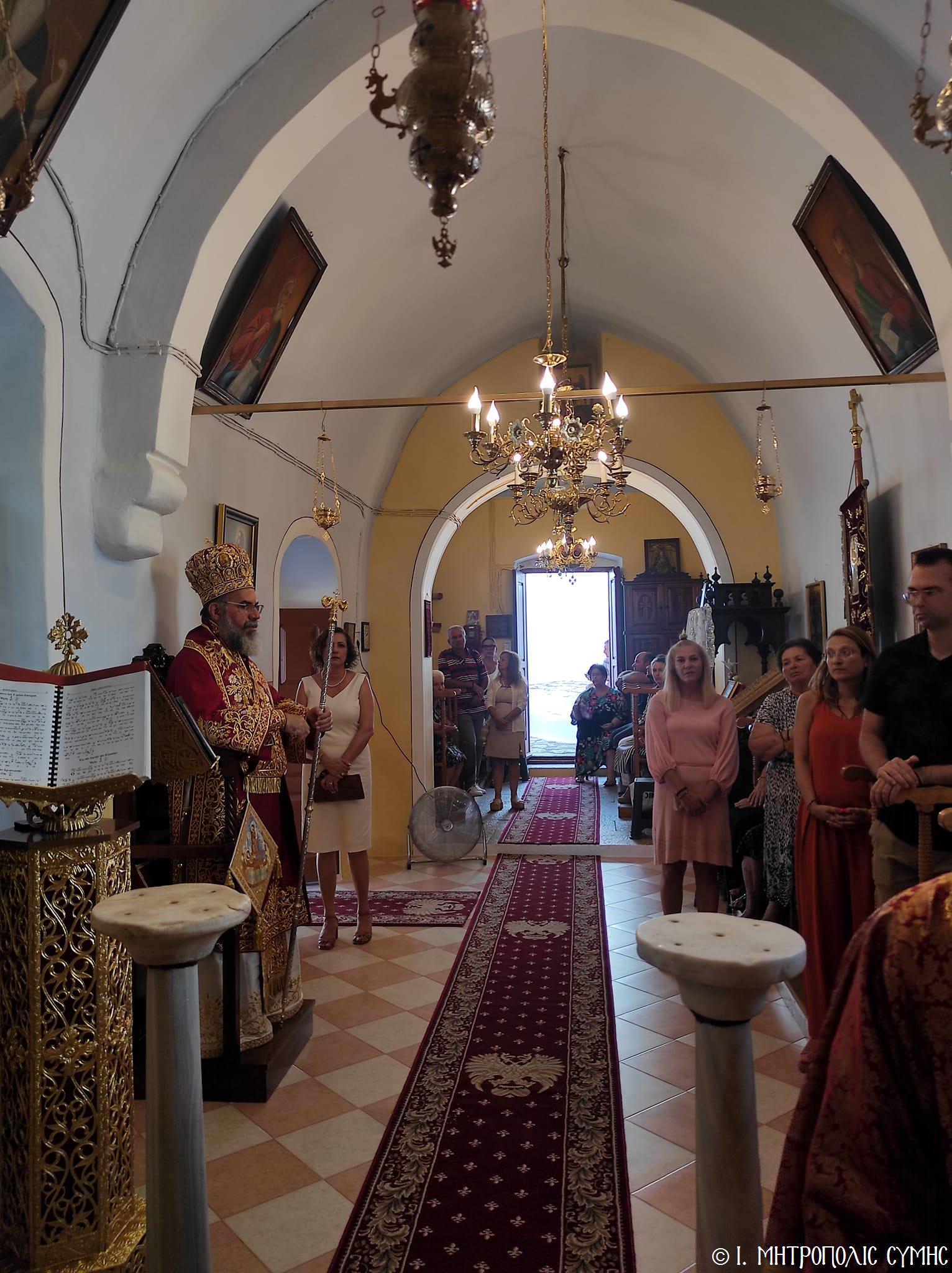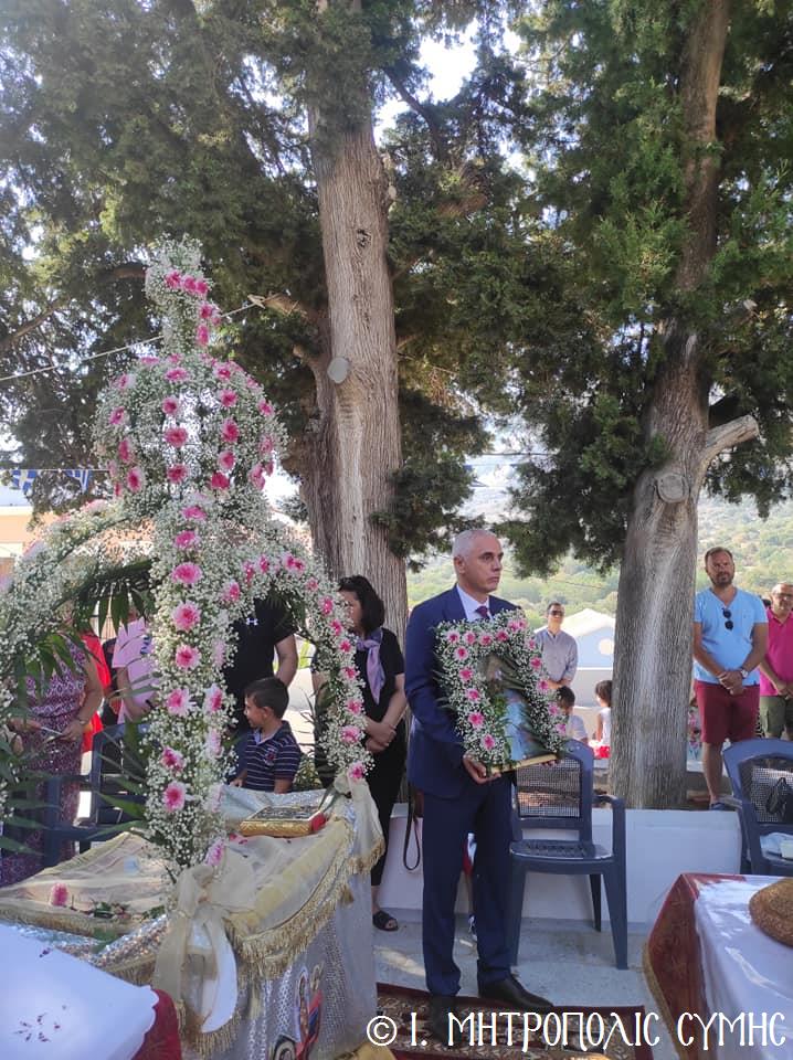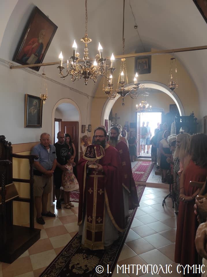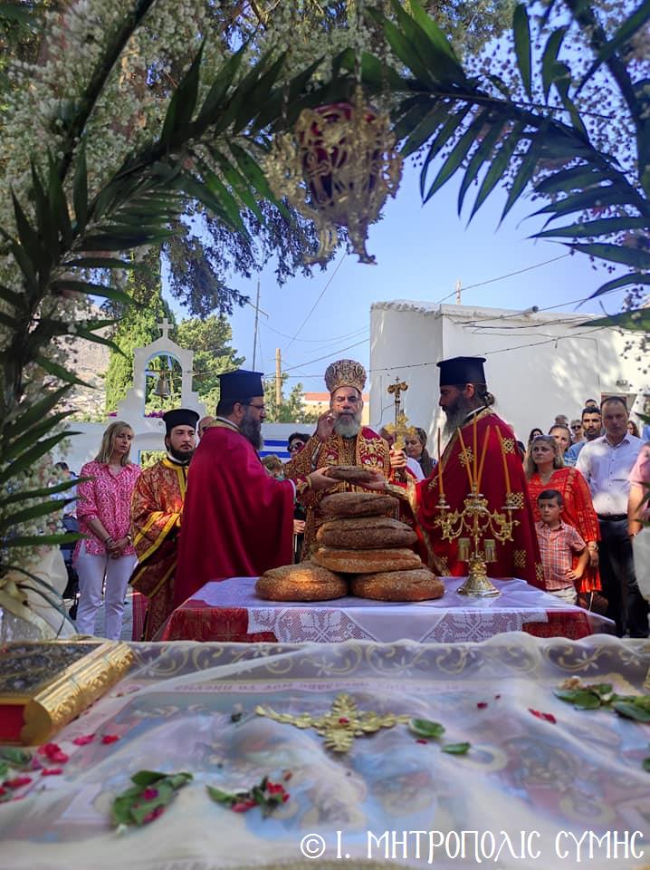 Μέ μεγαλοπρέπεια καί ἰδιαίτερη λαμπρότητα πανηγύρισε καί ἐφέτος ἡ Σύμη, μαζί μέ ὅλον τόν Ὀρθόδοξο κόσμο, τήν Ἑορτή τῆς Κοιμήσεως τῆς Ὑπεραγίας Θεοτόκου τῆς Ἐφόρου καί Προστάτιδος τοῦ Γένους μας. Πλῆθος πιστῶν συνέρρευσε ὅλες τίς ἡμέρες τοῦ Δεκαπενταυγούστου στίς γραφικές ἐκκλησίες καί τά ἀπέριττα ἐξωκκλήσια τοῦ νησιοῦ μας, πού εἶναι ἀφιερωμένα στήν Χάρη Της, γιά νά ὑμνήσει καί νά δοξάσει τήν Μεγάλη Μητέρα, τό στήριγμα καί τήν καταφυγή τῶν ψυχῶν μας, ἐπιβεβαιώνοντας γιά μία ἀκόμα φορά τήν βαθιά πίστη τοῦ Ἕλληνα, τήν πίστη πού τόν στήριξε σέ κάθε δύσκολη στιγμή καί τόν βοήθησε νά ἀντιμετωπίσει καί νά ξεπεράσει μέ τρόπο θαυμαστό δυσκολίες καί ἐμπόδια, κατ’ ἄνθρωπον, ἀνυπέρβλητα.