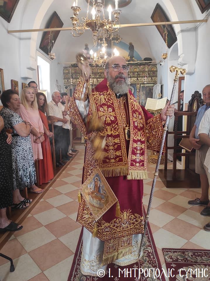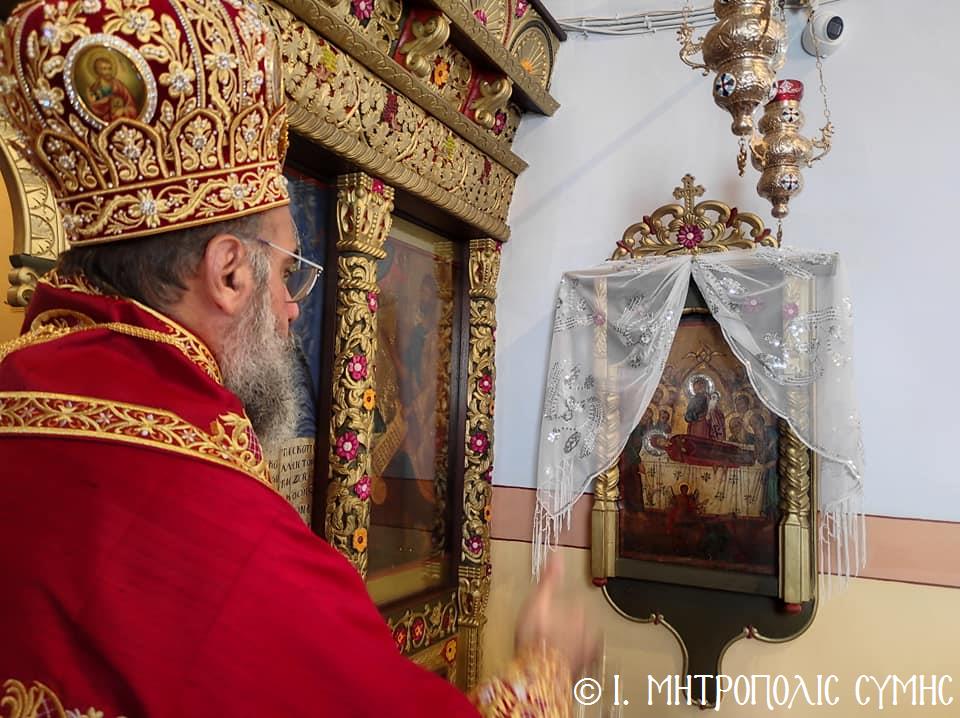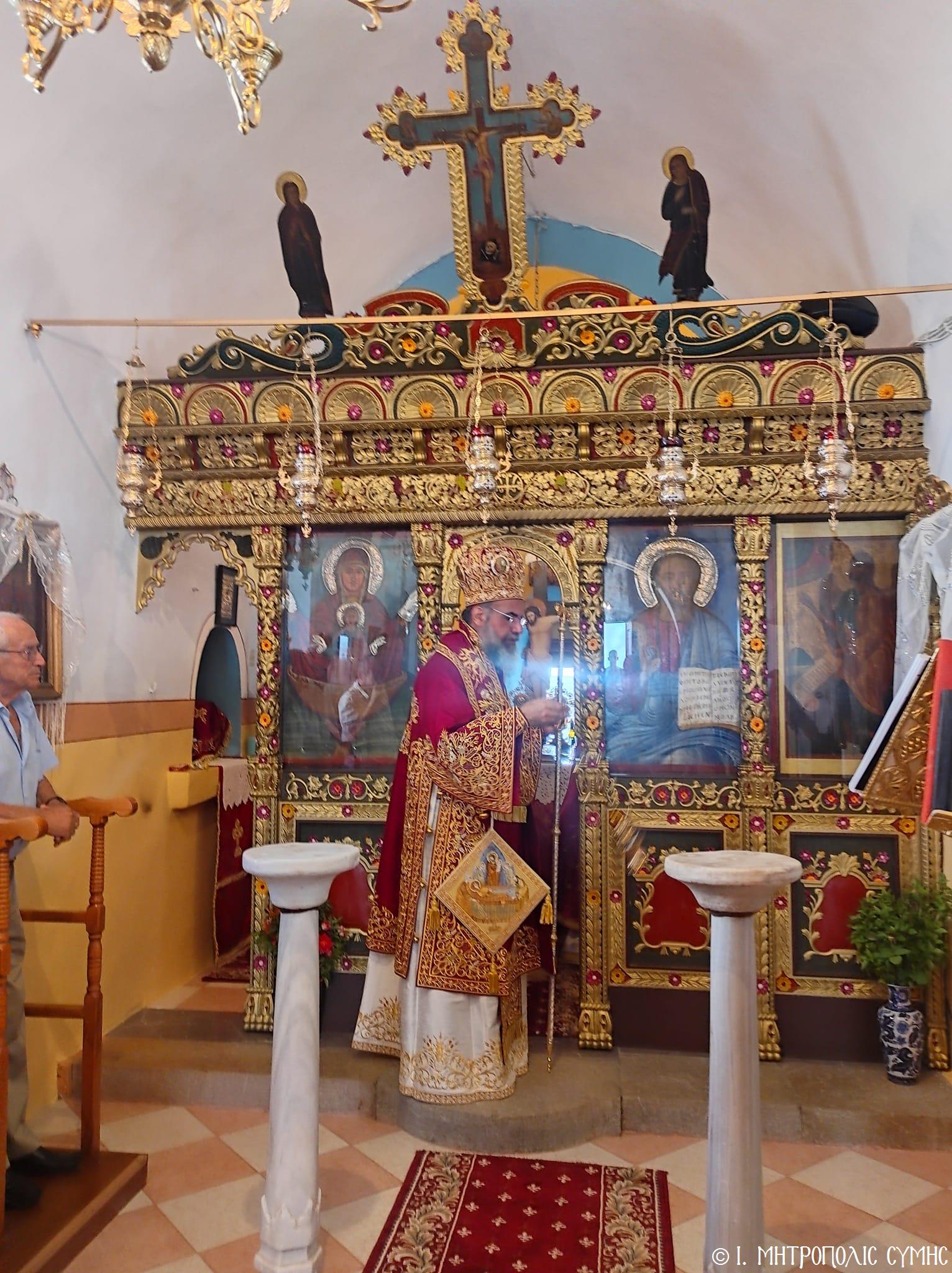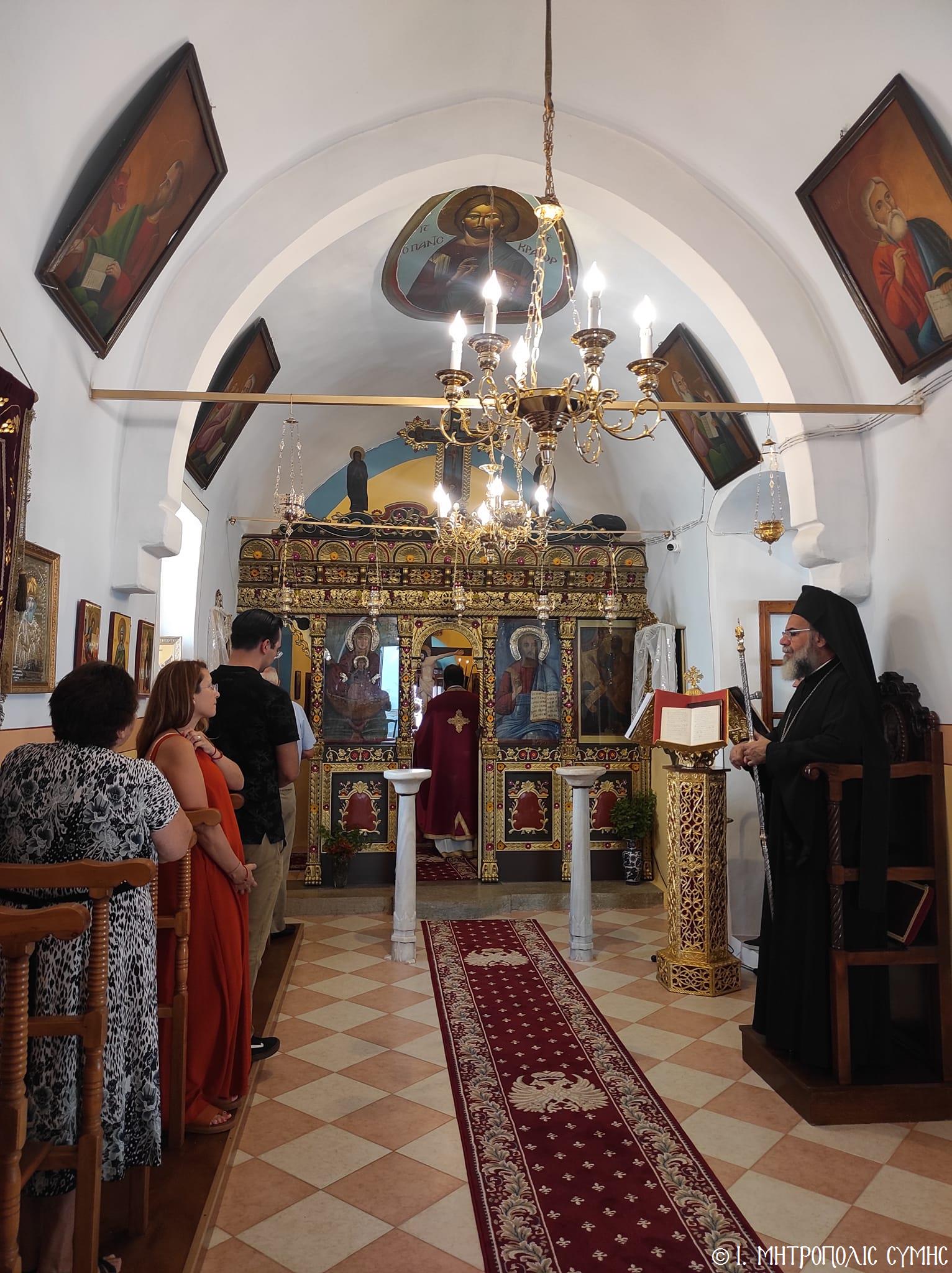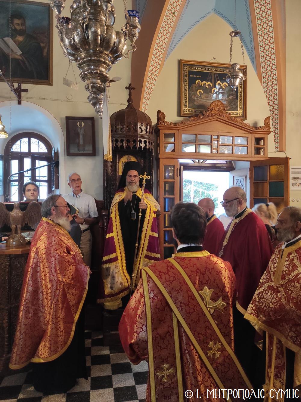 Μέ μεγαλοπρέπεια καί ἰδιαίτερη λαμπρότητα πανηγύρισε καί ἐφέτος ἡ Σύμη, μαζί μέ ὅλον τόν Ὀρθόδοξο κόσμο, τήν Ἑορτή τῆς Κοιμήσεως τῆς Ὑπεραγίας Θεοτόκου τῆς Ἐφόρου καί Προστάτιδος τοῦ Γένους μας. Πλῆθος πιστῶν συνέρρευσε ὅλες τίς ἡμέρες τοῦ Δεκαπενταυγούστου στίς γραφικές ἐκκλησίες καί τά ἀπέριττα ἐξωκκλήσια τοῦ νησιοῦ μας, πού εἶναι ἀφιερωμένα στήν Χάρη Της, γιά νά ὑμνήσει καί νά δοξάσει τήν Μεγάλη Μητέρα, τό στήριγμα καί τήν καταφυγή τῶν ψυχῶν μας, ἐπιβεβαιώνοντας γιά μία ἀκόμα φορά τήν βαθιά πίστη τοῦ Ἕλληνα, τήν πίστη πού τόν στήριξε σέ κάθε δύσκολη στιγμή καί τόν βοήθησε νά ἀντιμετωπίσει καί νά ξεπεράσει μέ τρόπο θαυμαστό δυσκολίες καί ἐμπόδια, κατ’ ἄνθρωπον, ἀνυπέρβλητα.
