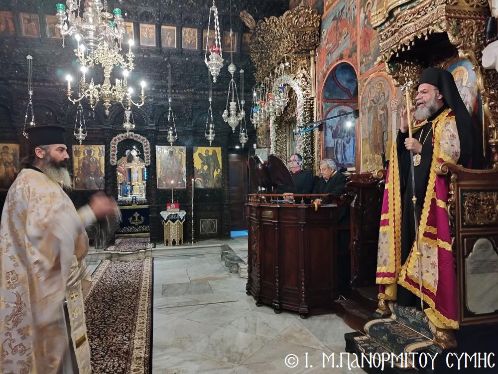 Στήν λατρευτική σύναξη, ἀρκετοί ἦταν ἐκεῖνοι πού προσῆλθαν γιά νά τιμήσουν τόν Μεγάλο Ὅσιο τῆς Ἐκκλησίας, «τόν ἀρχηγό τῶν ἀσκητῶν καί τῆς ἐρήμου τό μέγα κειμήλιον», νά προσκυνήσουν τό ἀπότμημα τοῦ ἱ. λειψάνου τοῦ ἐπίσης ἑορταζομένου Νεομάρτυρος Ἁγίου Γεωργίου τοῦ ἐν Ἰωαννίνοις καί ἐπιπλέον νά τιμήσουν καί τόν ἄγοντα τά ὀνομαστήριά του, Πανοσιολογιώτατο Καθηγούμενο τῆς Ἱ. Μονῆς Πανορμίτου, Ἀρχιμανδρίτη τοῦ Οἰκουμενικοῦ Θρόνου π. Ἀντώνιο Πατρό. Χοροστατοῦντος τοῦ Σεβ. Ποιμενάρχου μας κ. Χρυσοστόμου, ὁ ἑορτάζων Καθηγούμενος προσέφερε τήν ἀναίμακτον Θεία Λατρεία, μέ συλλειτουργούς του τόν π. Φιλόθεο Κάλφα καί τόν π. Γεώργιο Κακακιό, ἐνῶ τό ἱερό ἀναλόγιο διακόνησαν ἐμμελῶς ὁ Πρωτοψάλτης τῆς Ἱ. Μονῆς κ. Σταῦρος Πήλιουρας μέ τόν Ἱεροψάλτη κ. Ἀγαπητό Μιχελλῆ.