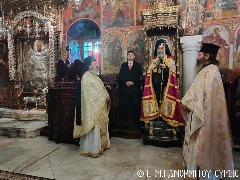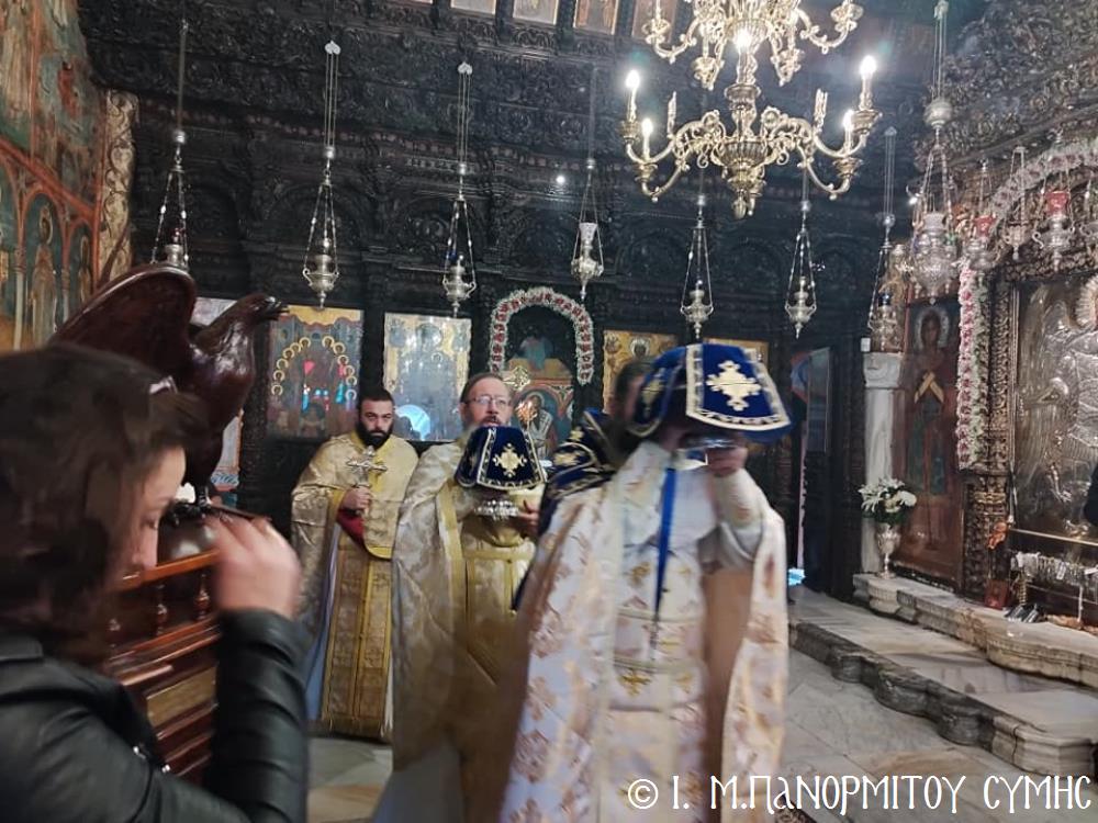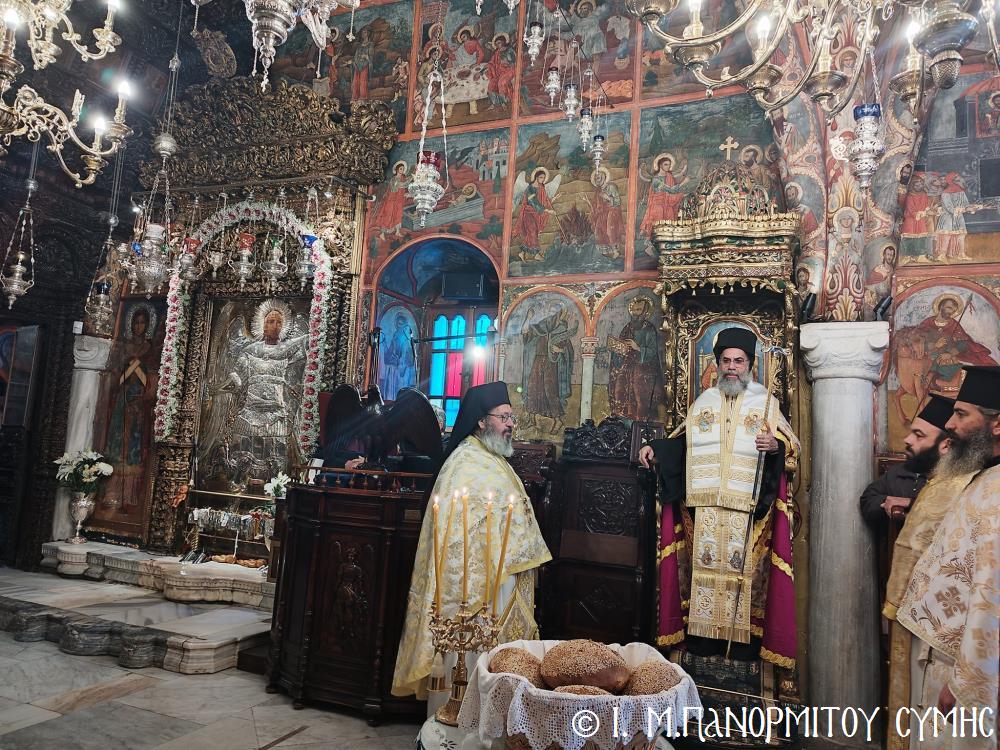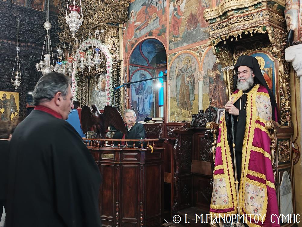 Τόν λόγο εἰς τό ἑξῆς, ἀνέλαβε ἡ παραδοσιακή συμαϊκή φιλοξενία. Γιά μιά φορά ἀκόμα ἐπιβεβαιώθηκε περίτρανα ἐκτός τῶν ἄλλλων καί ὁ κοινωνικός - συνεκτικός ρόλος τῆς Ἐκκλησίας μας. Εἶναι ἡ στοργική Μάνα πού συγκεντρώνει τά παιδιά της κάτω ἀπό τίς φτερούγες της, γιά νά χαροῦν πέρα ἀπό τήν μητρική της ἀγκάλη καί τήν αὐθεντική ἀδελφική συνύπαρξη, πού πλέον ὁπουδήποτε ἀλλοῦ φαντάζει οὐτοπία. Συγκεντρωμένοι στήν Μεγάλη Μοναστηριακή Τράπεζα τοῦ Πανορμίτη προσεφέρθησαν τά πατροπαράδοτα κεράσματα καί ἡ βίωσις τῆς ζώσης ἐπικοινωνίας τῶν προσώπων.