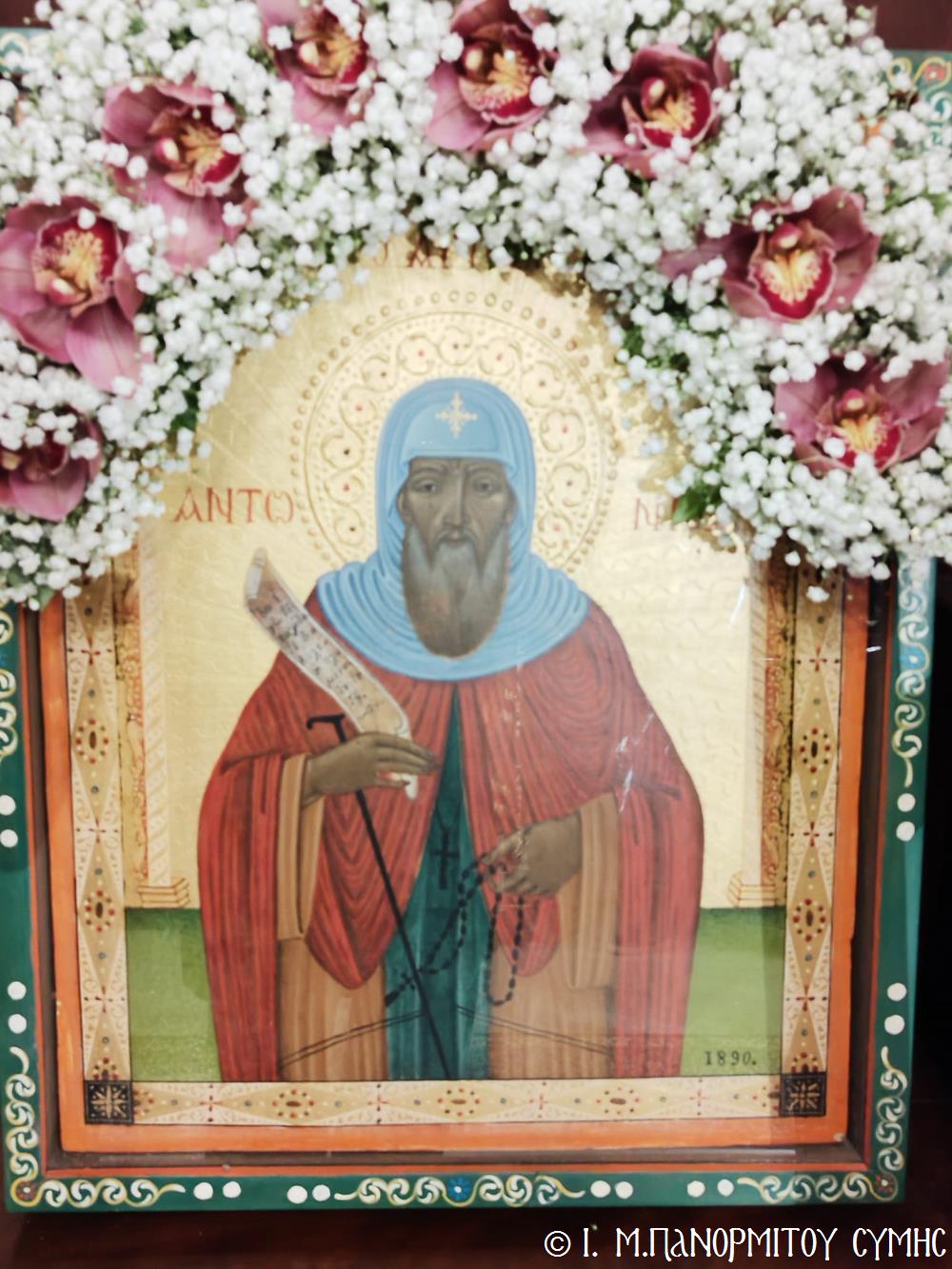 Τέλος ὁ Σεβασμιώτατος ὁμίλησε περί τῆς μεγάλης μορφῆς τοῦ Ἁγίου Ἀντωνίου, τοῦ καί Καθηγητοῦ τῆς ἐρήμου ἐπονομαζομένου, διδάσκοντας μέ τό παράδειγμα τῆς ὁσιακῆς βιωτῆς ἐκείνου τό πολυπληθές ἐκκλησίασμα, ἐνῶ εὐχήθη τά δέοντα στόν ἑορτάζοντα π. Ἀντώνιο, ἀναφερόμενος στήν εὔορκη διακονία του, καθώς καί στό ὑγιές ἐκκλησιαστικό του φρόνημα, διά τῶν ὁποίων μέ τήν χάρη τοῦ Θεοῦ καί τοῦ Ταξιάρχου, ὑπηρετεῖ μέ αὐταπάρνηση ἀπό τήν Ἡγουμενική θέση τήν Μονή τοῦ Πανορμίτη καί εὐρύτερα τήν Ἐκκλησία.
