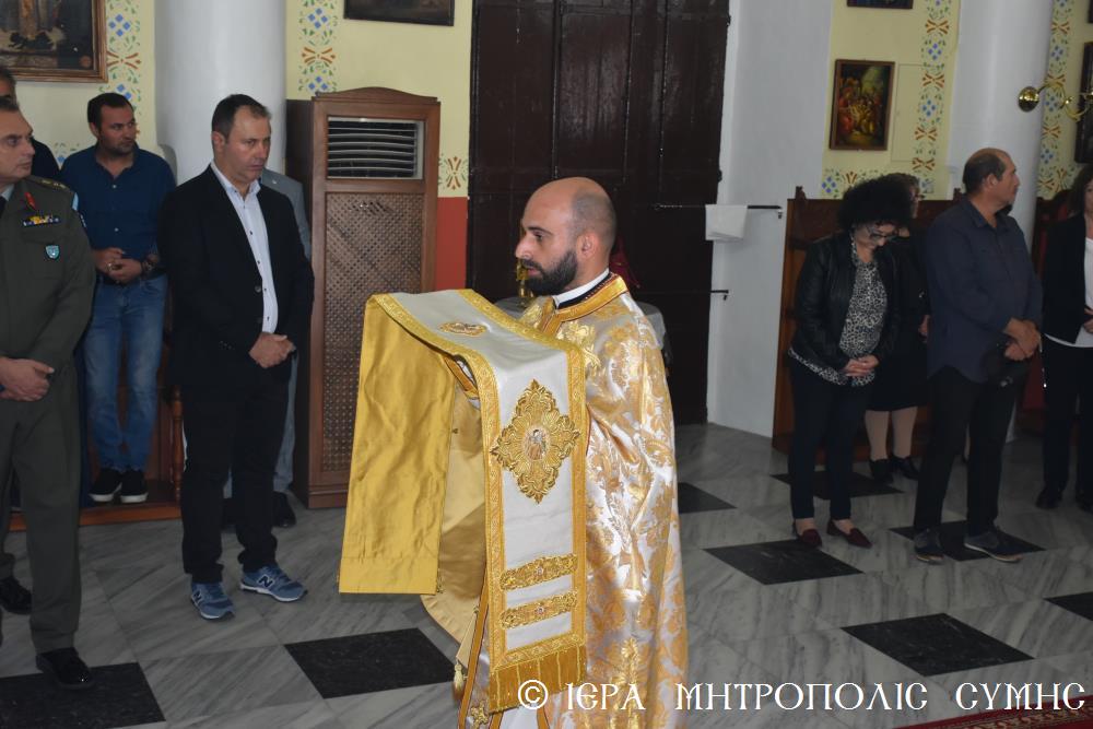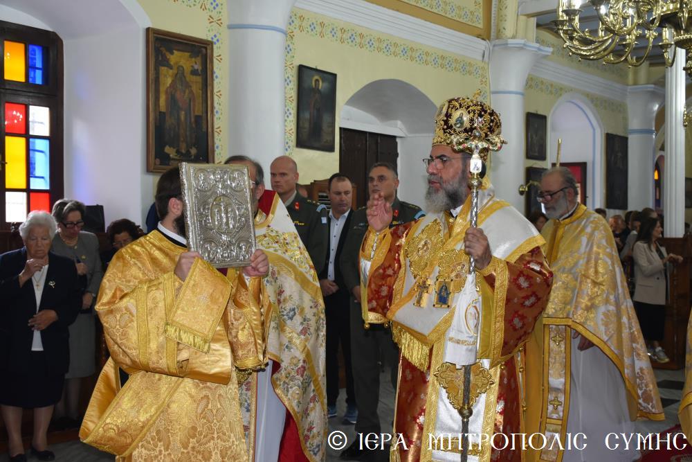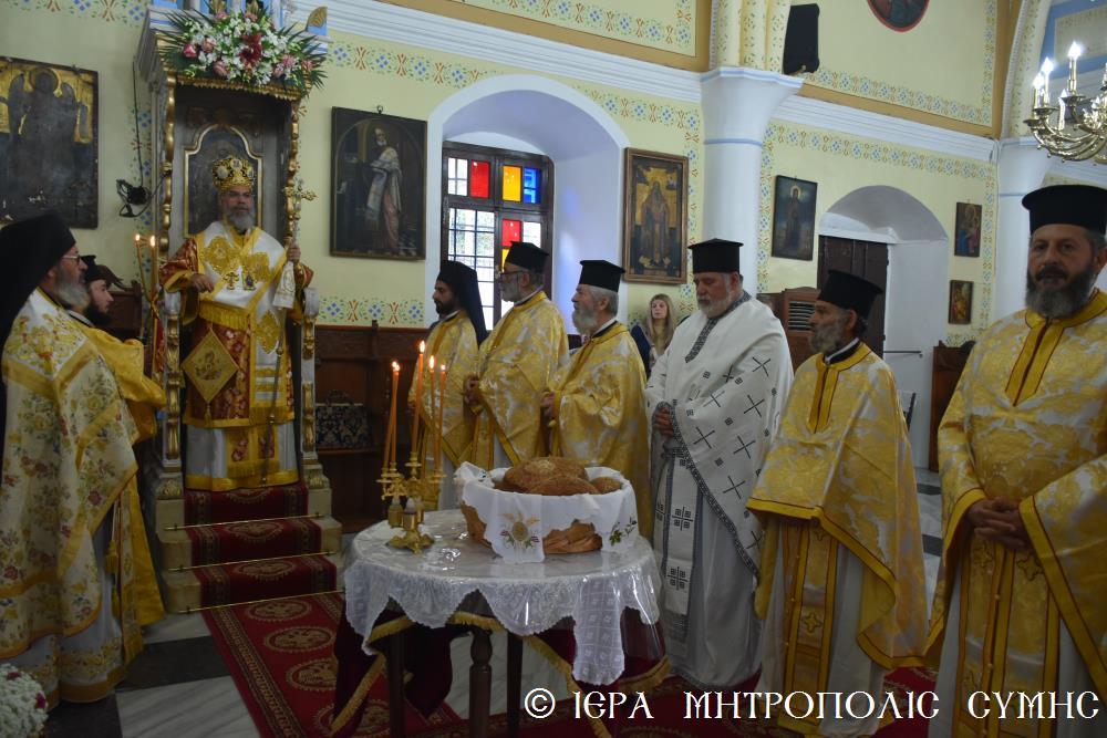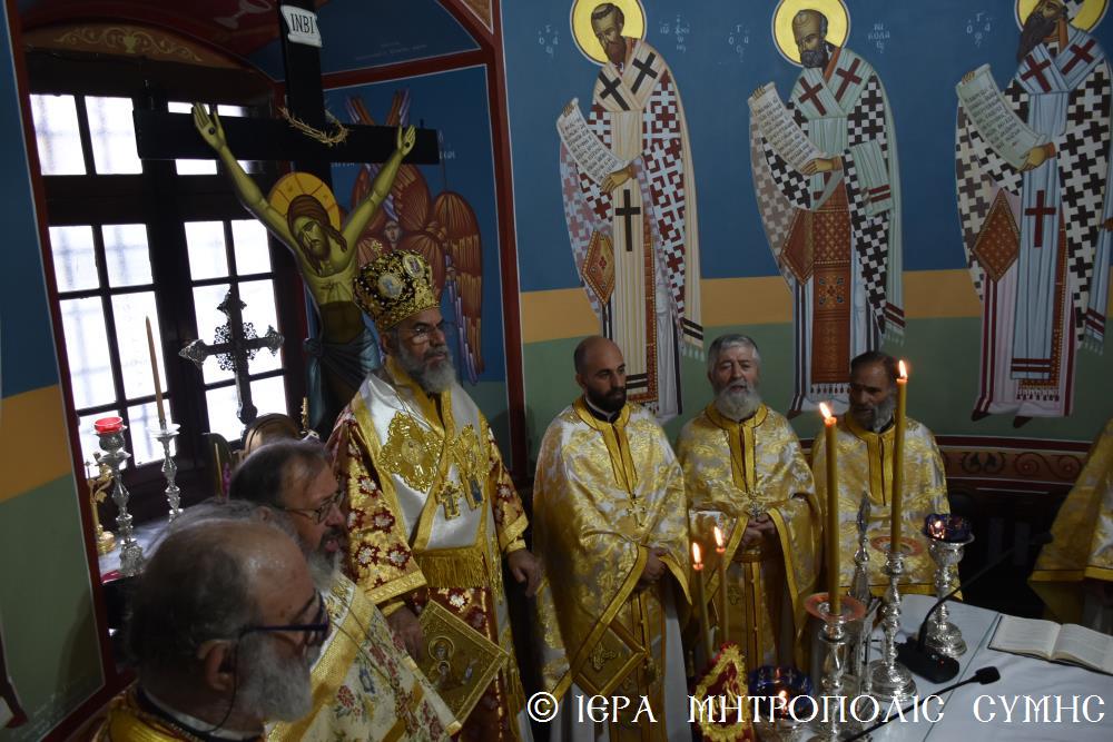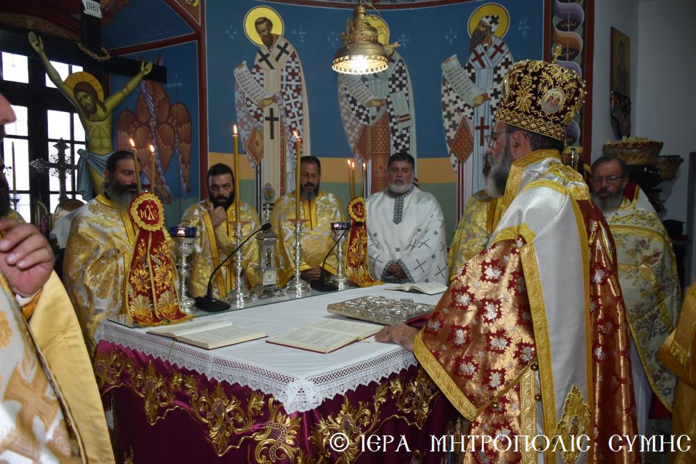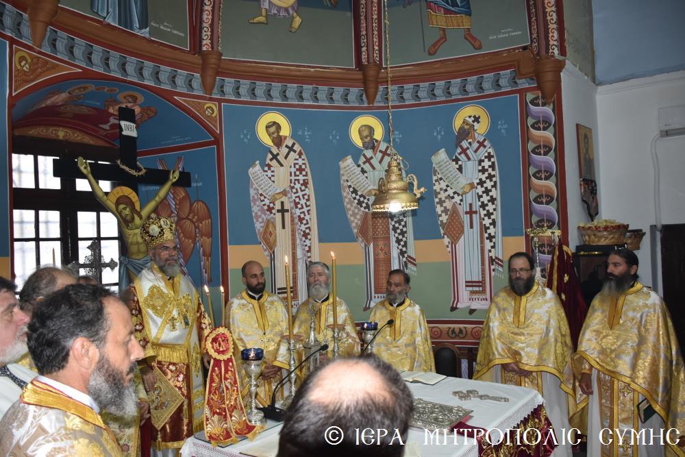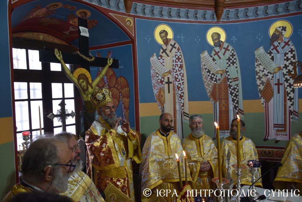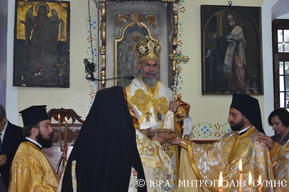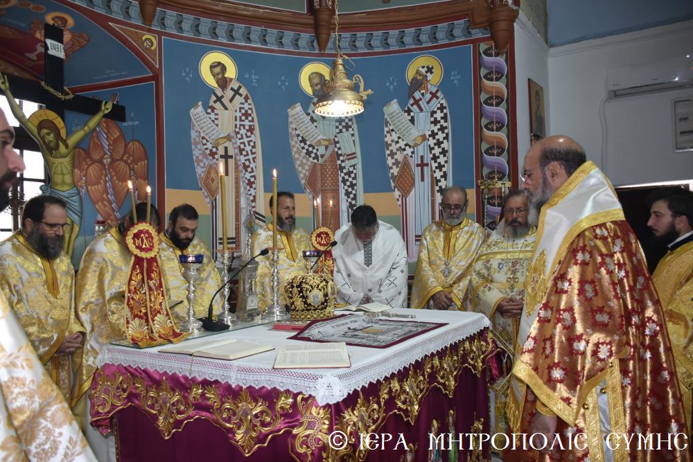 Σήμερα τό πρωΐ, Δευτέρα 13η Νοεμβρίου, κυριώνυμη ἡμέρα τῆς ἑορτῆς, ὁ Σεβ. Μητροπολίτης μας κ. Χρυσόστομος, χοροστάτησε στόν Ὄρθρο καί τέλεσε τήν Θ. Λειτουργία ὁμοίως στόν Ἱερό Μητροπολιτικό Ναό τοῦ Τιμίου Προδρόμου Σύμης μέ συλλειτουργούς του τόν Πανοσιολ. Καθηγούμενο τῆς Ἱ. Μονῆς Πανορμίτου Ἀρχιμ. Ἀντώνιο Πατρό, τόν Πανοσιολ. 'Αρχιμανδρίτη π. 'Ανδρέα Δημητρίου, τόν Γενικό Ἀρχιερατικό Ἐπίτροπο καί Ἐφημέριο τοῦ Μητροπολιτικοῦ Ναοῦ Πρωτοπρ. Στέφανο Μακρῆ, τόν Οἰκονόμον π. Χρῆστο Σταθόπουλο καί τούς Πρεσβ. π. Ἐμμανουήλ Λυκοπάντη, Συμαῖο τήν καταγωγή, κληρικό τῆς Ἱ. Ἀρχιεπισκοπῆς Αὐστραλίας, τόν π. Παντελεήμονα Μακρόπουλο, τόν π. Γεώργιο Χατζηχρυσάφη, τόν π. Ἀντώνιο Μανιᾶ, τόν π. Φιλόθεο Κάλφα, τόν π. Γεώργιο Κακακιό καί τόν Ἱεροδιάκονον π. Παῦλο Τερεζάκη. Ξεχωριστές παρουσίες ἦταν τοῦ Δημάρχου Σύμης κ. Ἐλευθερίου Παπακαλοδούκα, τῆς Προέδρου τοῦ Δ. Σ. κ. Σεβαστῆς Λούπη, τοῦ Ἀντιδημάρχου Σύμης κ. Νικήτα Γρύλλη, τοῦ Διοικητοῦ τοῦ 549 Τ.Ε. Ἀντισυνταγματάρχη κ. Στυλιανοῦ Φωκᾶ, τῆς Προέδρου τῆς Ἑνώσεως Γυναικῶν Σύμης κ. Σεβαστῆς Νικόλη καί τῶν ἐκπροσώπων τῶν λοιπῶν τοπικῶν Ἀρχῶν, Φορέων καί Συλλόγων.