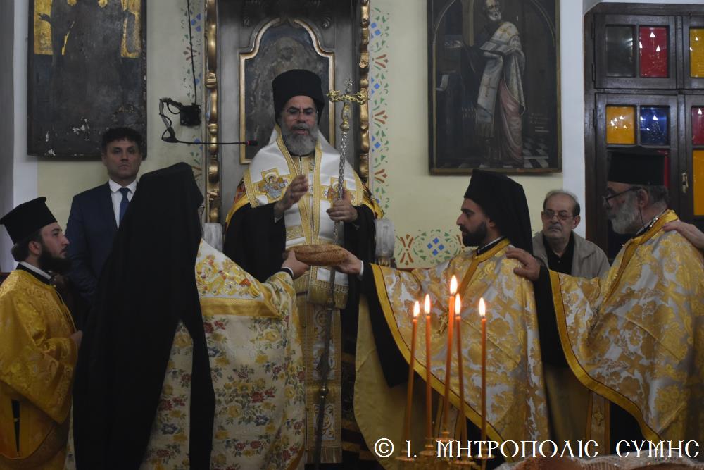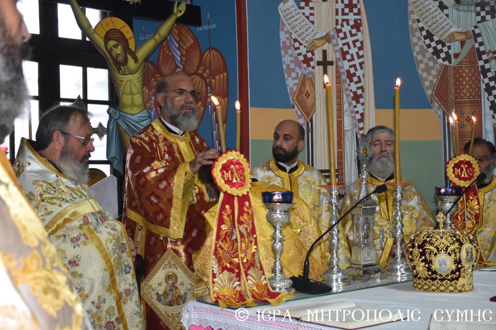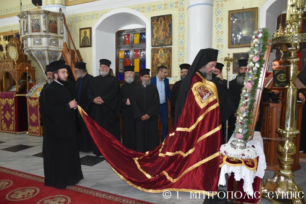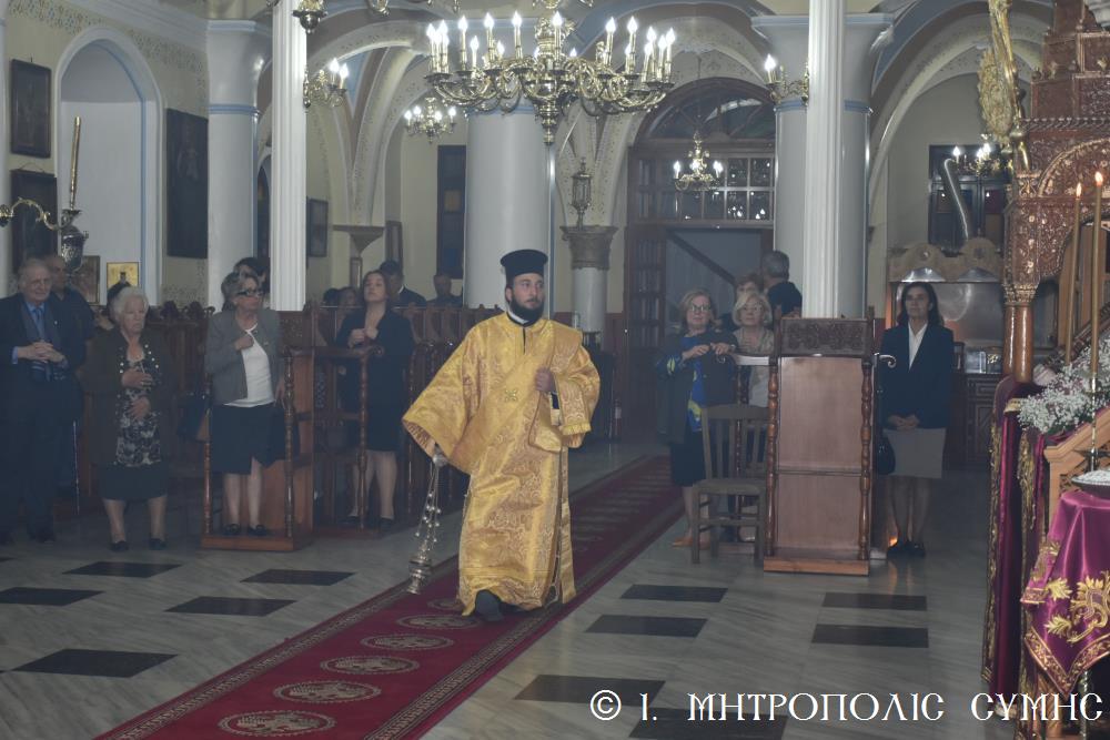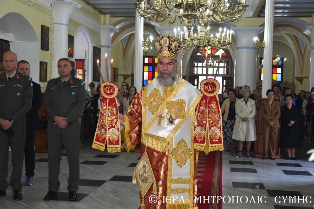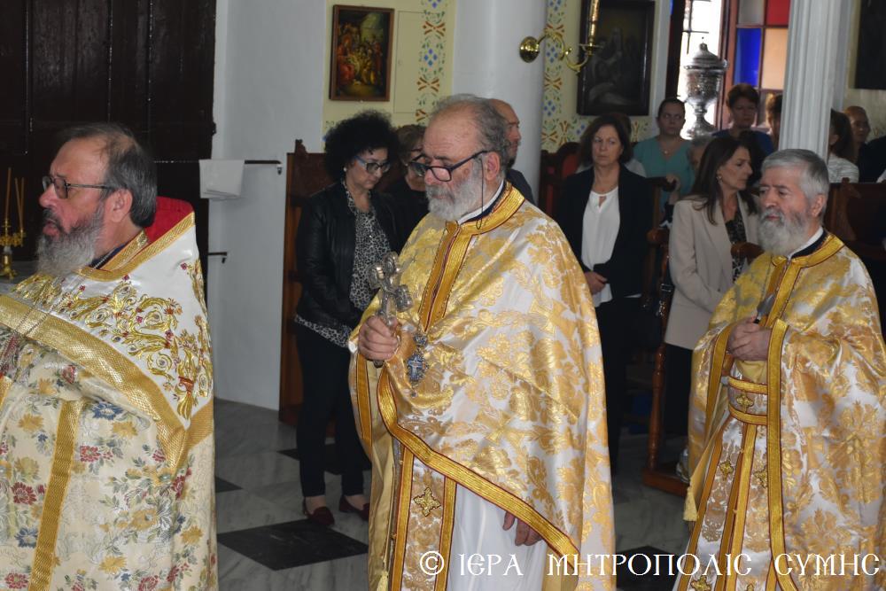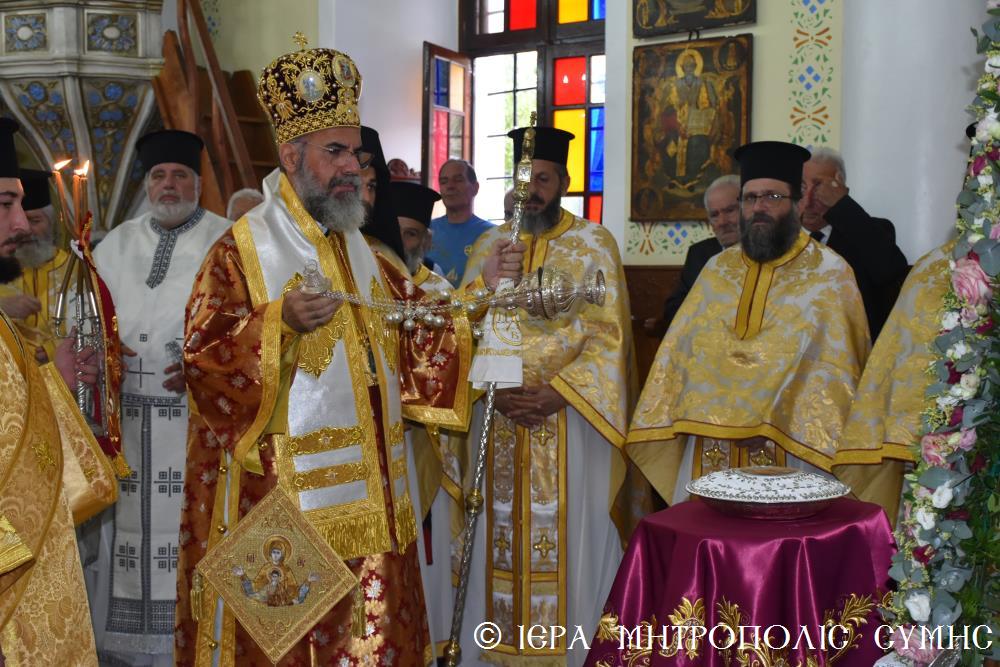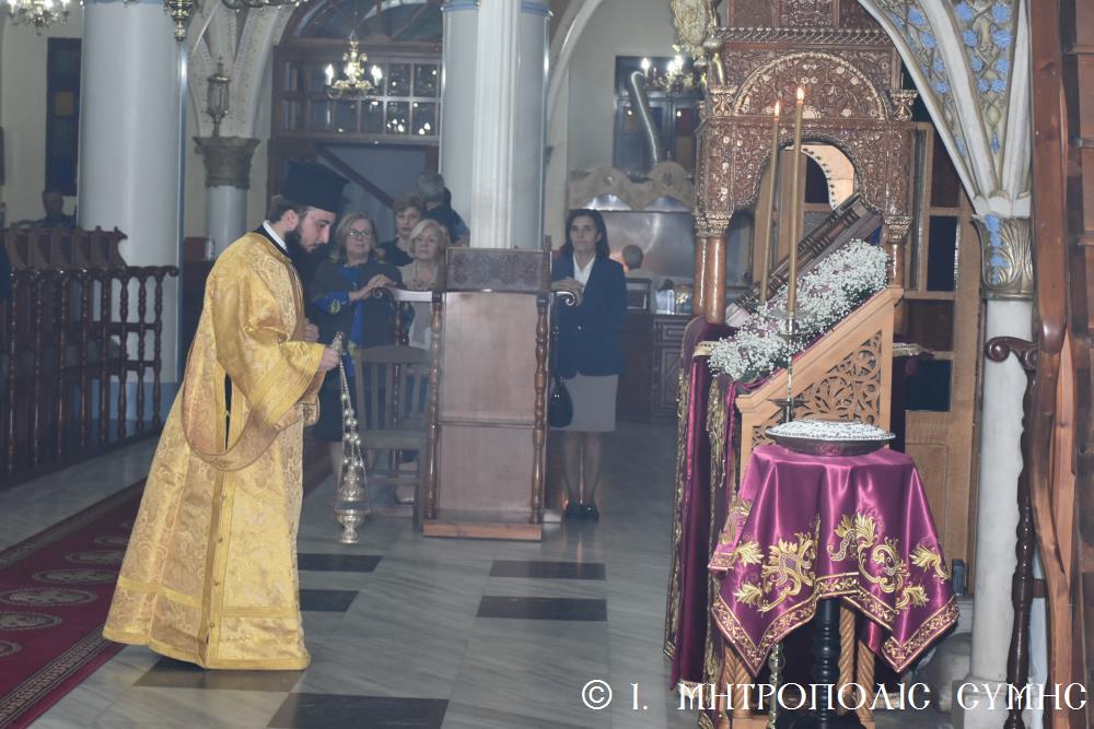 Σήμερα τό πρωΐ, Δευτέρα 13η Νοεμβρίου, κυριώνυμη ἡμέρα τῆς ἑορτῆς, ὁ Σεβ. Μητροπολίτης μας κ. Χρυσόστομος, χοροστάτησε στόν Ὄρθρο καί τέλεσε τήν Θ. Λειτουργία ὁμοίως στόν Ἱερό Μητροπολιτικό Ναό τοῦ Τιμίου Προδρόμου Σύμης μέ συλλειτουργούς του τόν Πανοσιολ. Καθηγούμενο τῆς Ἱ. Μονῆς Πανορμίτου Ἀρχιμ. Ἀντώνιο Πατρό, τόν Πανοσιολ. 'Αρχιμανδρίτη π. 'Ανδρέα Δημητρίου, τόν Γενικό Ἀρχιερατικό Ἐπίτροπο καί Ἐφημέριο τοῦ Μητροπολιτικοῦ Ναοῦ Πρωτοπρ. Στέφανο Μακρῆ, τόν Οἰκονόμον π. Χρῆστο Σταθόπουλο καί τούς Πρεσβ. π. Ἐμμανουήλ Λυκοπάντη, Συμαῖο τήν καταγωγή, κληρικό τῆς Ἱ. Ἀρχιεπισκοπῆς Αὐστραλίας, τόν π. Παντελεήμονα Μακρόπουλο, τόν π. Γεώργιο Χατζηχρυσάφη, τόν π. Ἀντώνιο Μανιᾶ, τόν π. Φιλόθεο Κάλφα, τόν π. Γεώργιο Κακακιό καί τόν Ἱεροδιάκονον π. Παῦλο Τερεζάκη. Ξεχωριστές παρουσίες ἦταν τοῦ Δημάρχου Σύμης κ. Ἐλευθερίου Παπακαλοδούκα, τῆς Προέδρου τοῦ Δ. Σ. κ. Σεβαστῆς Λούπη, τοῦ Ἀντιδημάρχου Σύμης κ. Νικήτα Γρύλλη, τοῦ Διοικητοῦ τοῦ 549 Τ.Ε. Ἀντισυνταγματάρχη κ. Στυλιανοῦ Φωκᾶ, τῆς Προέδρου τῆς Ἑνώσεως Γυναικῶν Σύμης κ. Σεβαστῆς Νικόλη καί τῶν ἐκπροσώπων τῶν λοιπῶν τοπικῶν Ἀρχῶν, Φορέων καί Συλλόγων.