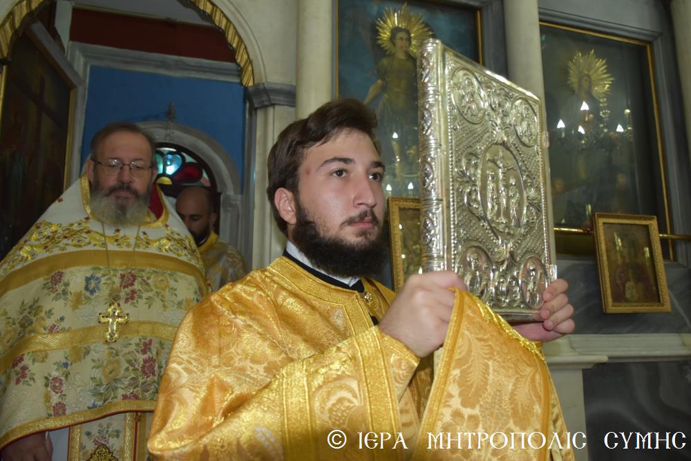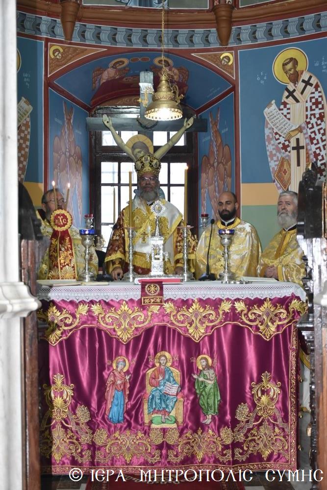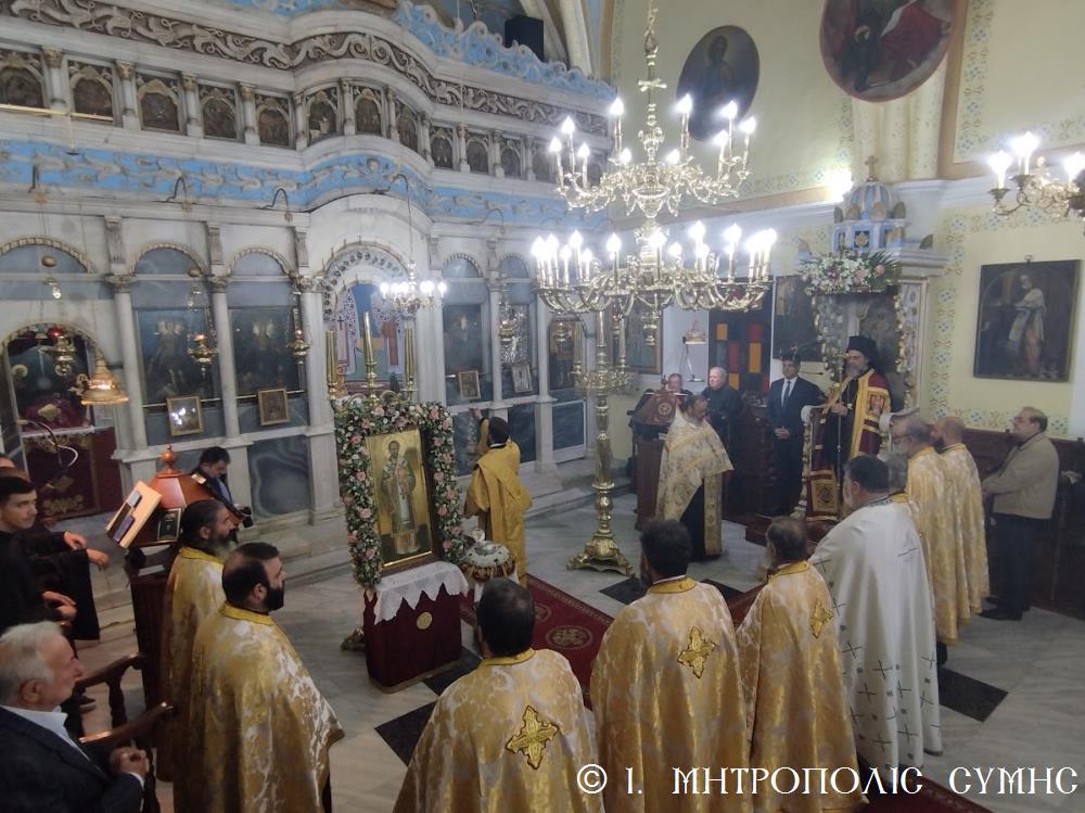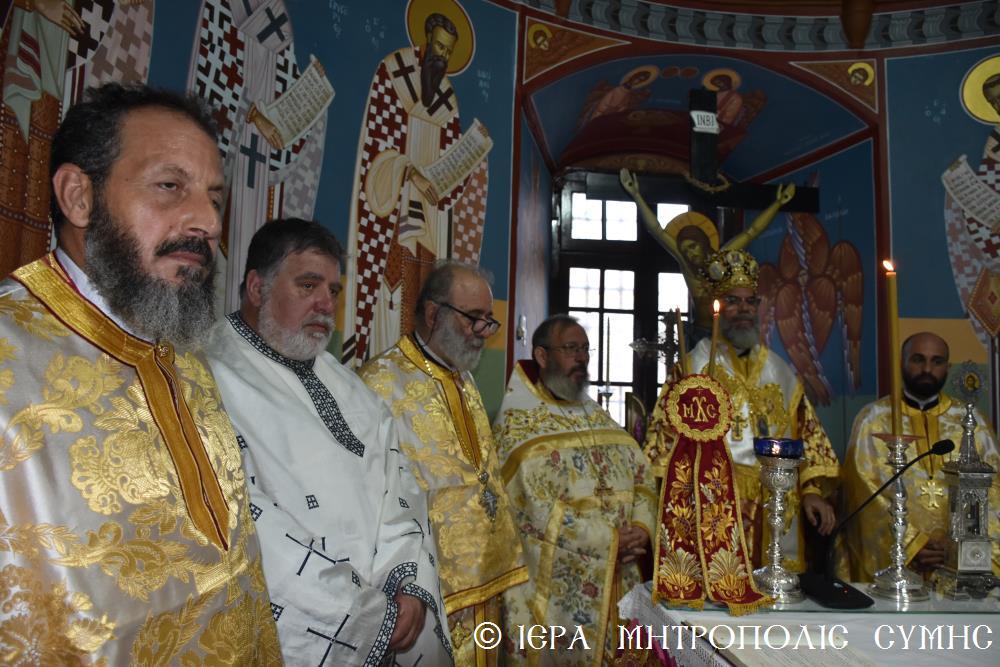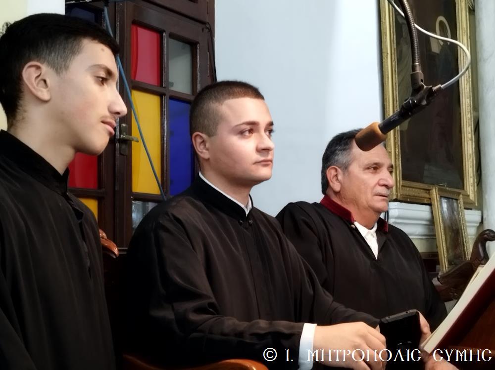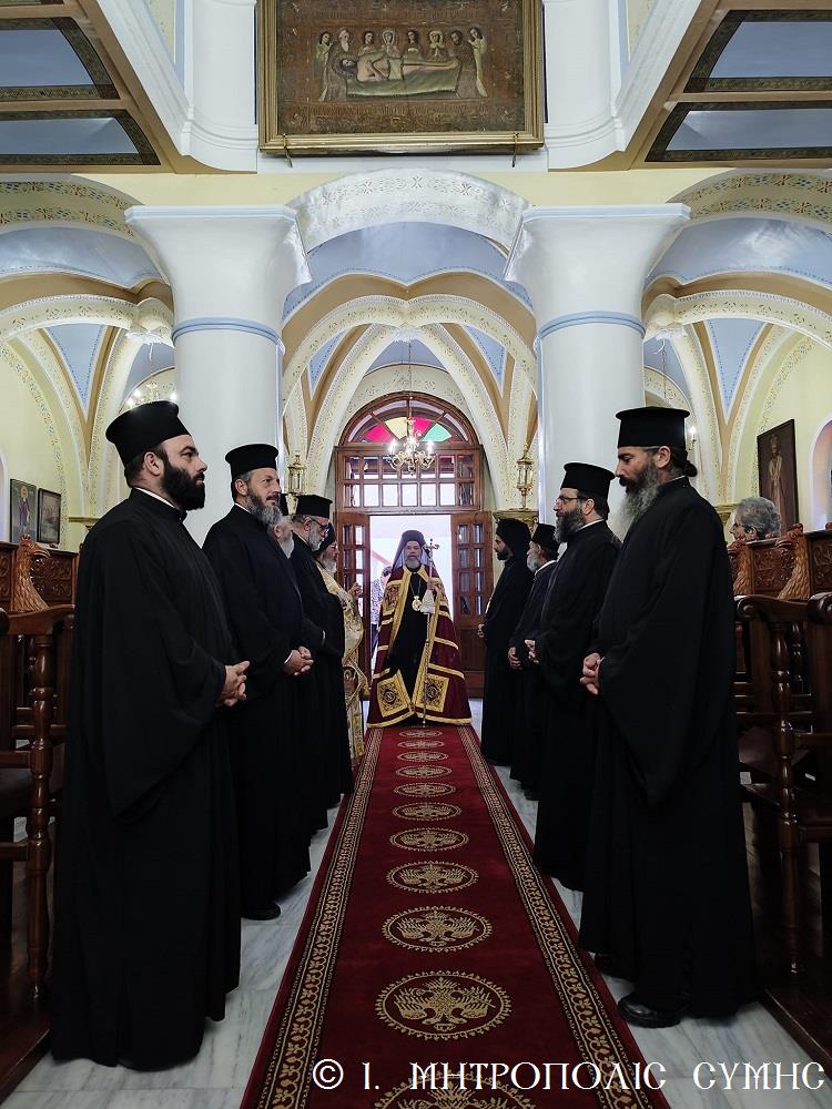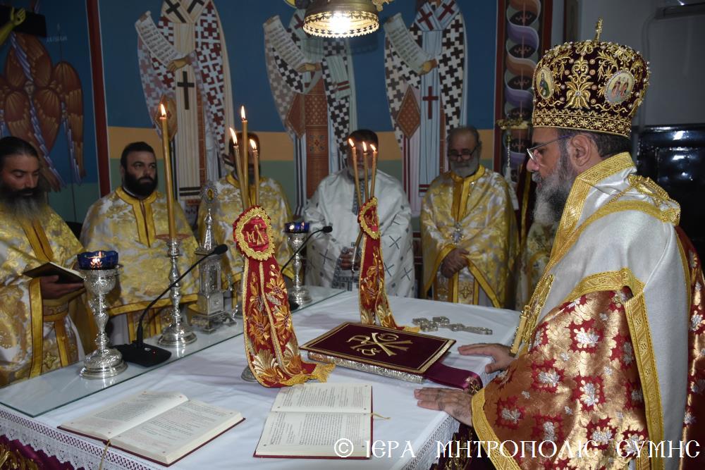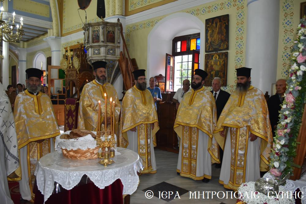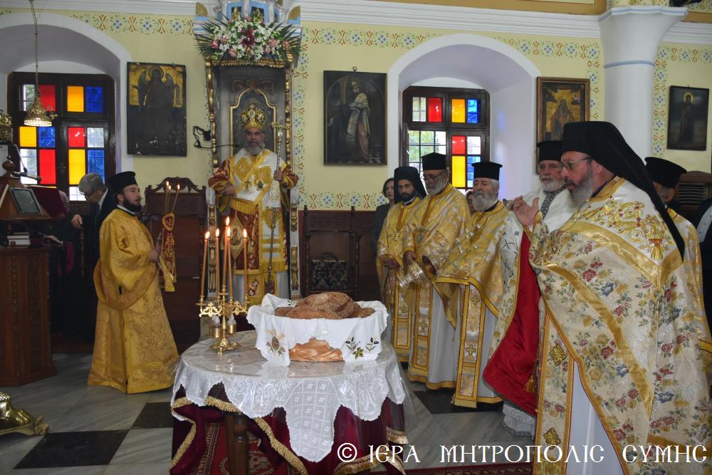 Σήμερα τό πρωΐ, Δευτέρα 13η Νοεμβρίου, κυριώνυμη ἡμέρα τῆς ἑορτῆς, ὁ Σεβ. Μητροπολίτης μας κ. Χρυσόστομος, χοροστάτησε στόν Ὄρθρο καί τέλεσε τήν Θ. Λειτουργία ὁμοίως στόν Ἱερό Μητροπολιτικό Ναό τοῦ Τιμίου Προδρόμου Σύμης μέ συλλειτουργούς του τόν Πανοσιολ. Καθηγούμενο τῆς Ἱ. Μονῆς Πανορμίτου Ἀρχιμ. Ἀντώνιο Πατρό, τόν Πανοσιολ. 'Αρχιμανδρίτη π. 'Ανδρέα Δημητρίου, τόν Γενικό Ἀρχιερατικό Ἐπίτροπο καί Ἐφημέριο τοῦ Μητροπολιτικοῦ Ναοῦ Πρωτοπρ. Στέφανο Μακρῆ, τόν Οἰκονόμον π. Χρῆστο Σταθόπουλο καί τούς Πρεσβ. π. Ἐμμανουήλ Λυκοπάντη, Συμαῖο τήν καταγωγή, κληρικό τῆς Ἱ. Ἀρχιεπισκοπῆς Αὐστραλίας, τόν π. Παντελεήμονα Μακρόπουλο, τόν π. Γεώργιο Χατζηχρυσάφη, τόν π. Ἀντώνιο Μανιᾶ, τόν π. Φιλόθεο Κάλφα, τόν π. Γεώργιο Κακακιό καί τόν Ἱεροδιάκονον π. Παῦλο Τερεζάκη. Ξεχωριστές παρουσίες ἦταν τοῦ Δημάρχου Σύμης κ. Ἐλευθερίου Παπακαλοδούκα, τῆς Προέδρου τοῦ Δ. Σ. κ. Σεβαστῆς Λούπη, τοῦ Ἀντιδημάρχου Σύμης κ. Νικήτα Γρύλλη, τοῦ Διοικητοῦ τοῦ 549 Τ.Ε. Ἀντισυνταγματάρχη κ. Στυλιανοῦ Φωκᾶ, τῆς Προέδρου τῆς Ἑνώσεως Γυναικῶν Σύμης κ. Σεβαστῆς Νικόλη καί τῶν ἐκπροσώπων τῶν λοιπῶν τοπικῶν Ἀρχῶν, Φορέων καί Συλλόγων.