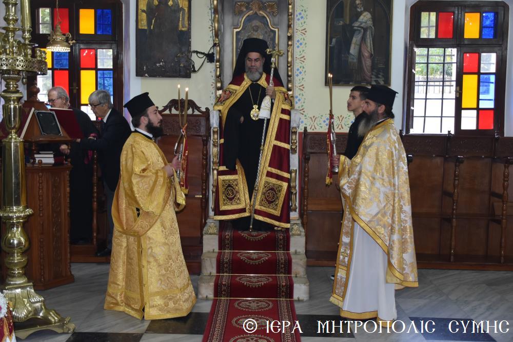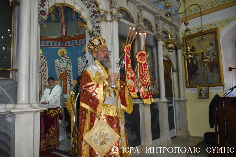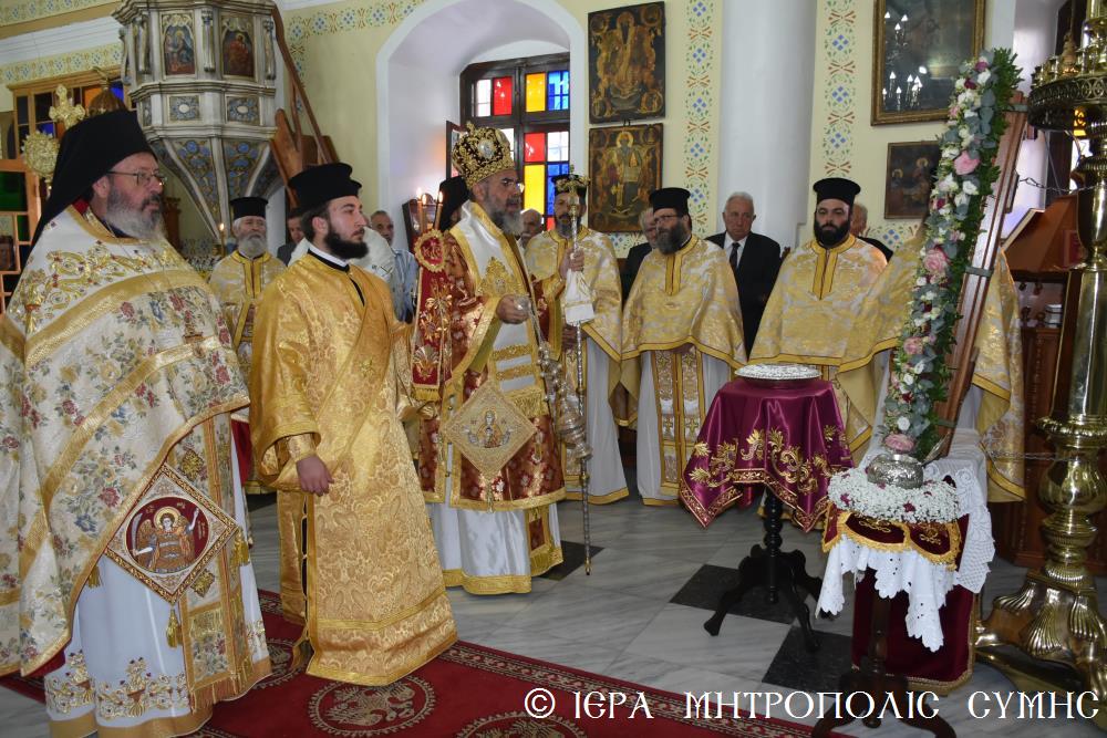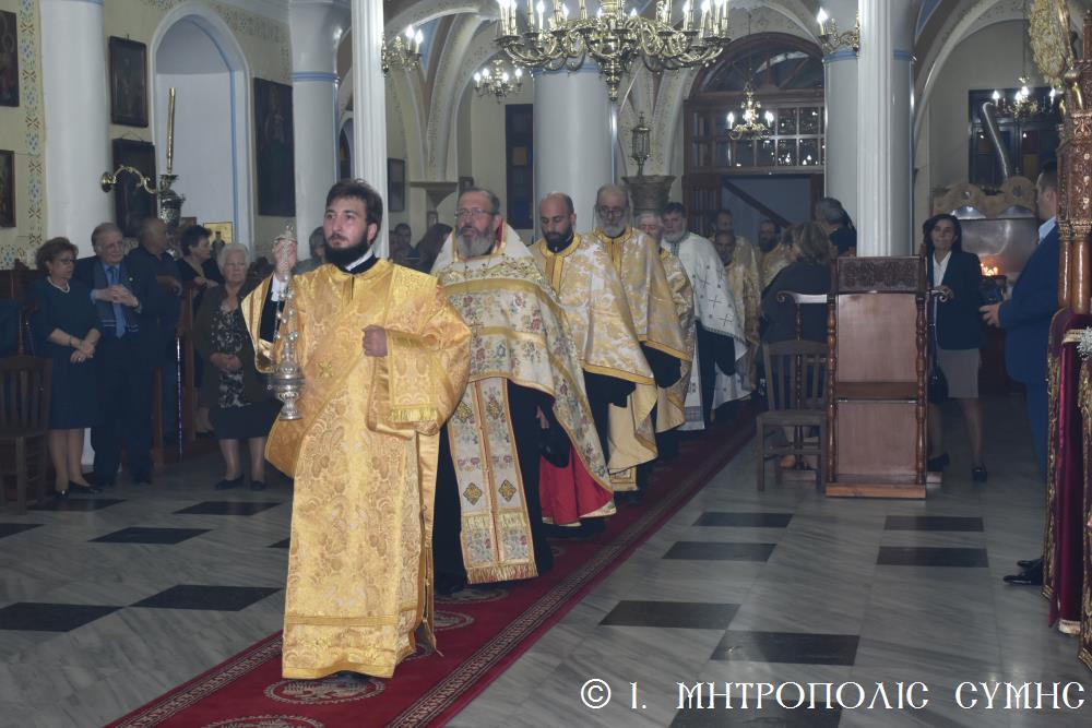 Μέ τήν Χάρη τοῦ ἐν Τριάδι Θεοῦ καί ἐπικαλούμενος τήν πρός Αὐτόν μεσιτείαν τοῦ ἐν Ἁγίοις οὐρανίου προστάτου του, Ἰωάννου Ἀρχιεπισκόπου Κωνσταντινουπόλεως τοῦ Χρυσοστόμου, ἑόρτασε ὁ Σεβ. Ποιμενάρχης μας, Μητροπολίτης Σύμης, Τήλου, Χάλκης καί Καστελλορίζου κ. Χρυσόστομος τά ὀνομαστήριά του, προεξάρχων τῶν Ἱερῶν Ἀκολουθιῶν εἰς τόν Ἱ. Μητροπολιτικόν Ναόν Τιμίου Προδρόμου Σύμης.