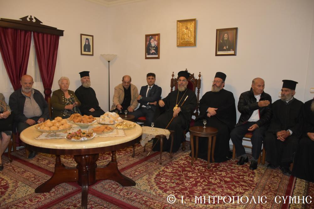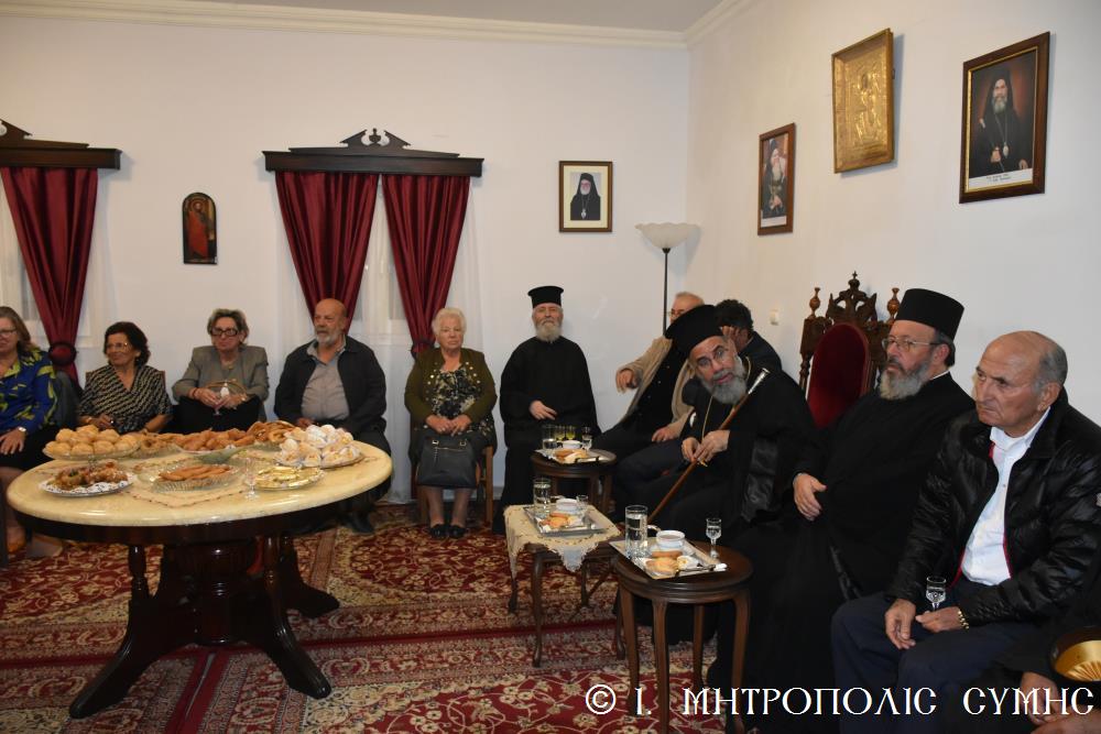 Ἐν συνεχείᾳ, τό πυκνό ἐκκλησίασμα μετέβη στό Μητροπολιτικό Μέγαρο, ὅπου εὐχήθη καί αὖθις στόν ἑορτάζοντα Ποιμενάρχη του καί ἐδέχθη πλούσια δοχή καί ἑόρτια κεράσματα.