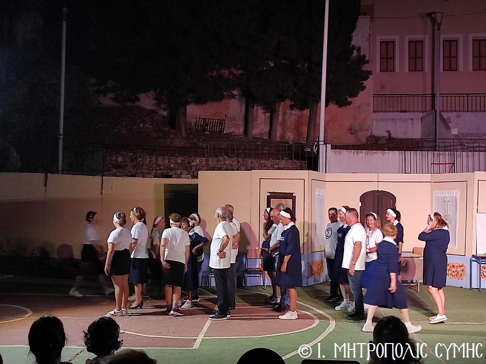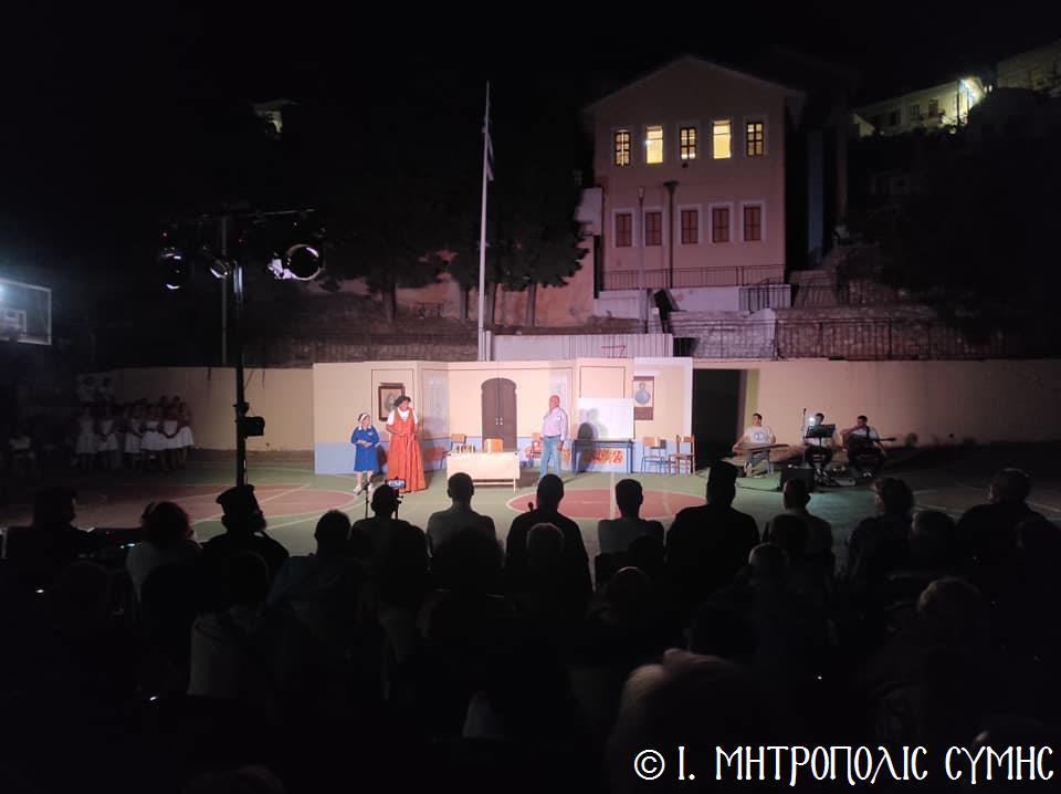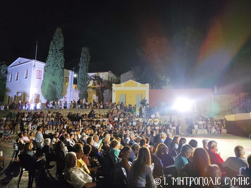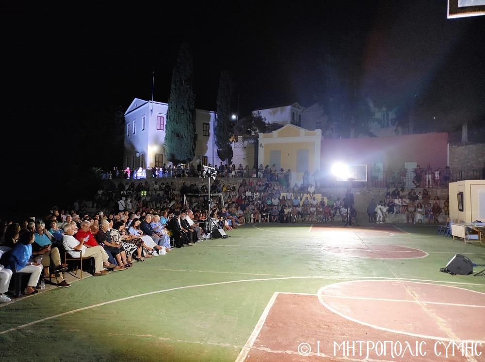 Ἐπρόκειτο ἀναμφίβολα γιά μιά πολύ ἐπιτυχημένη καί ὑψηλοῦ ἐπιπέδου ἐκδήλωση, τήν ὁποία λάμπρυνε μέ τήν παρουσία του ὁ Σεβ. Μητροπολίτης μας κ. Χρυσόστομος, καί τῆς ὁποίας τήν ὀργάνωση καί τόν συντονισμό εἶχε ὁ Καλλιτεχνικός Διευθυντής τοῦ Συμιακοῦ θεάτρου κ. Μανώλης Ἀντωνόγλου καί συμμετεῖχαν δεκάδες πρώην μαθητές τοῦ Σχολείου, καταφέρνοντας μέ τίς ἐπιδόσεις τους νά ἐνθουσιάσουν τό πολυπληθές κοινό, πού τούς χειροκρότησε κατενθουσιασμένο.