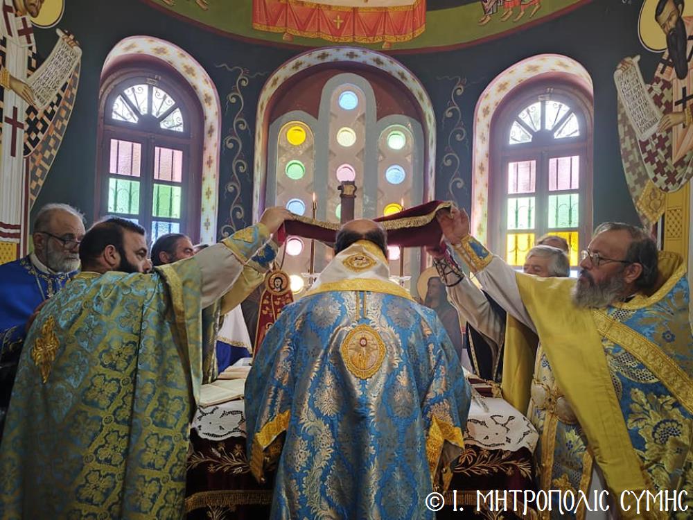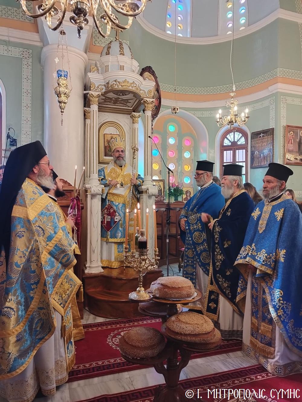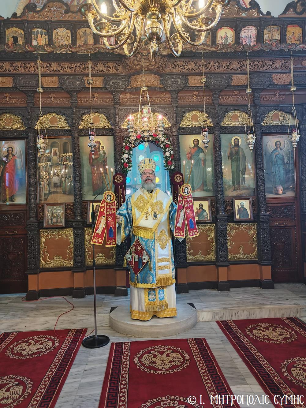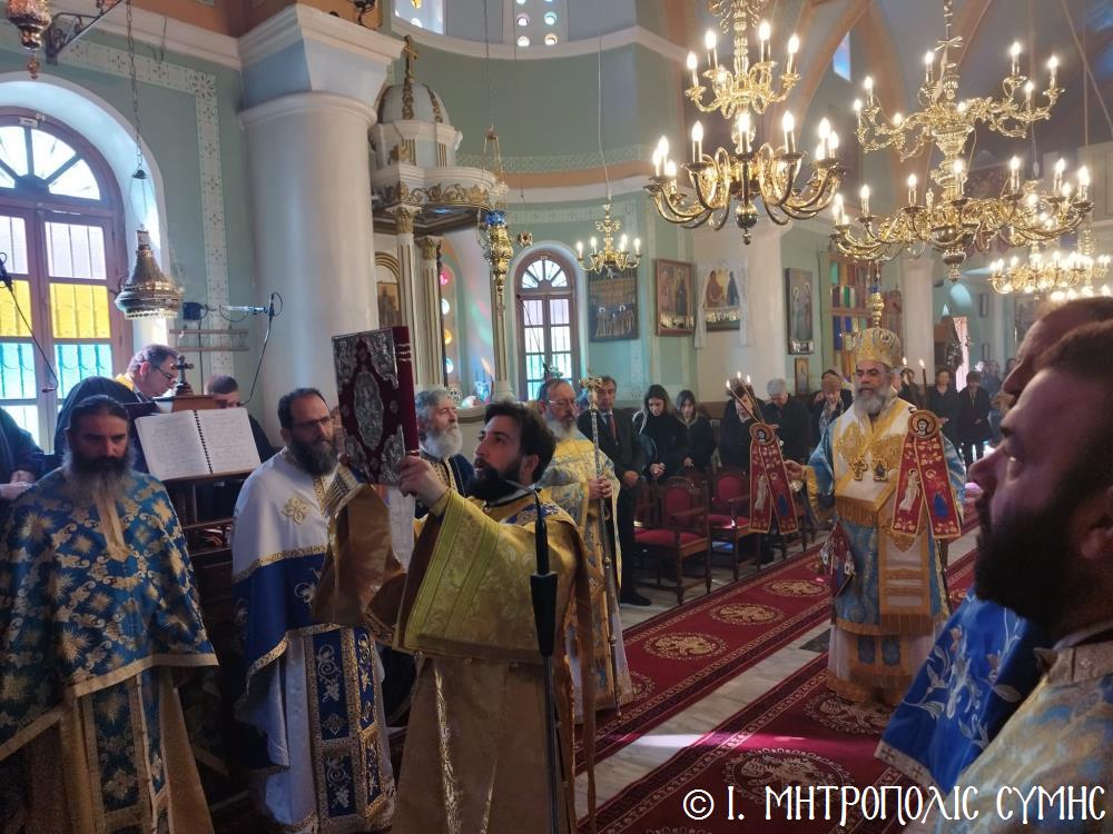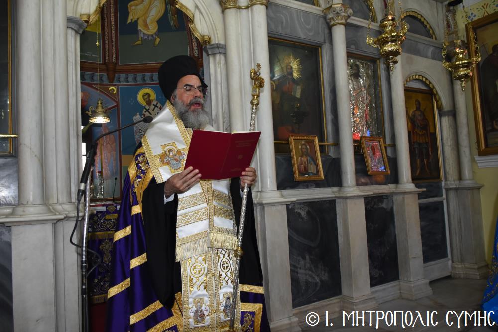 Σήμερα, Δευτέρα πρωί, κυριώνυμος ἡμέρα τῆς ἑορτῆς, ὁ Σεβ. Μητροπολίτης μας κ. Χρυσόστομος, ἐπανακάμψας ἐκ τοῦ Σεπτοῦ τῆς Ὀρθοδοξίας Κέντρου, χοροστάτησε τοῦ Ὄρθρου εὐλόγησε τούς παρατιθέμενους Ἄρτους καί ἐν συνεχείᾳ τέλεσε τήν Θεία Λειτουργία, εἰς τόν ὡς ἄνω Πανηγυρίζοντα Ναόν τοῦ Εὐαγγελισμοῦ, ἔχοντας συλλειτουργούς, τόν Πανοσιολ. Καθηγούμενον τῆς Ἱ. Μονῆς Πανορμίτου Ἀρχιμ. Ἀντώνιον Πατρόν καί ἅπαντας τούς Ἐφημερίους τῆς Σύμης, μετά τοῦ Ἱεροδιακόνου. Μετά τήν Ἀπόλυση πραγματοποιήθηκε ἡ καθιερωμένη λιτανεία πέριξ τοῦ Ἱ. Ναοῦ πρός ἁγιασμόν τῶν πιστῶν τῆς Ἐνορίας. Στήν λειτουργική σύναξη, ἐκτός τῆς πληθύος τῶν πιστῶν, παρέστησαν ὁ Δήμαρχος Σύμης κ. Ἐλευθ. Παπακαλοδούκας, ὁ Ἄρχων Δικαιοφύλαξ τῆς Μ.Χ.Ε. Ἐντιμολ. κ. Θεόδωρος Παπαγεωργίου, ὁ Πρόεδρος τοῦ Δημοτ. Συμβουλίου κ. Φίλ. Δερμιτζάκης, ὁ Ἀντιδήμαρχος κ. Νικ. Γρύλλης καί Μέλη τοῦ Δ.Σ. ὁ Διοικητής Δ.Α.Ν. τῆς Σύμης Συνταγματάρχης κ. Παναγιώτης Βρανάς, ὁ Διοικητής τοῦ 549 Τ.Ε. Σύμης Ἀνχης κ. Στυλιανός Φωκᾶς, καθώς καί Ἐκπρόσωποι τῶν λοιπῶν τοπικῶν Ἀρχῶν, Φορέων καί Συλλόγων.