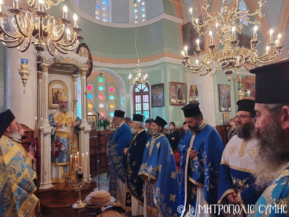 Καθ’ ὅλη τήν διάρκεια τῆς ἑσπερινῆς Ἀκολουθίας ὁ περικαλλής Θεομητορικός Ναός ἦταν κατάμεστος ἀπό τούς εὐλαβεῖς Χριστιανούς, οἱ ὁποῖοι προσῆλθαν γιά νά ἀνάψουν τό κερί τους καί νά προσευχηθοῦν, λαμβάνοντας τήν Χάρη τῆς Ὑπεραγίας Θεοτόκου. Μετά τό πέρας, ἡ δραστήρια Ἐκκλησιαστική Ἐπιτροπή καί οἱ εὐσεβεῖς κυρίες τῆς Ἐνορίας, προσέφεραν πρός ὅλους τούς ἐκκλησιαζόμενους - ἀλλά καί πρός ὅλους ἐκείνους τούς πιστούς πού ἔφθαναν μέχρι ἀργά τό βράδυ - ὡς παραδοσιακό κέρασμα, τό συμιακό ἀκούμι.