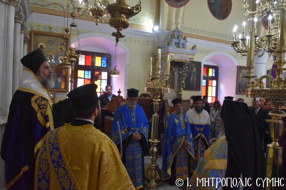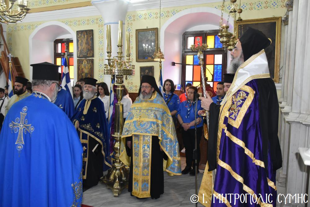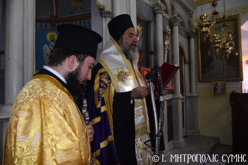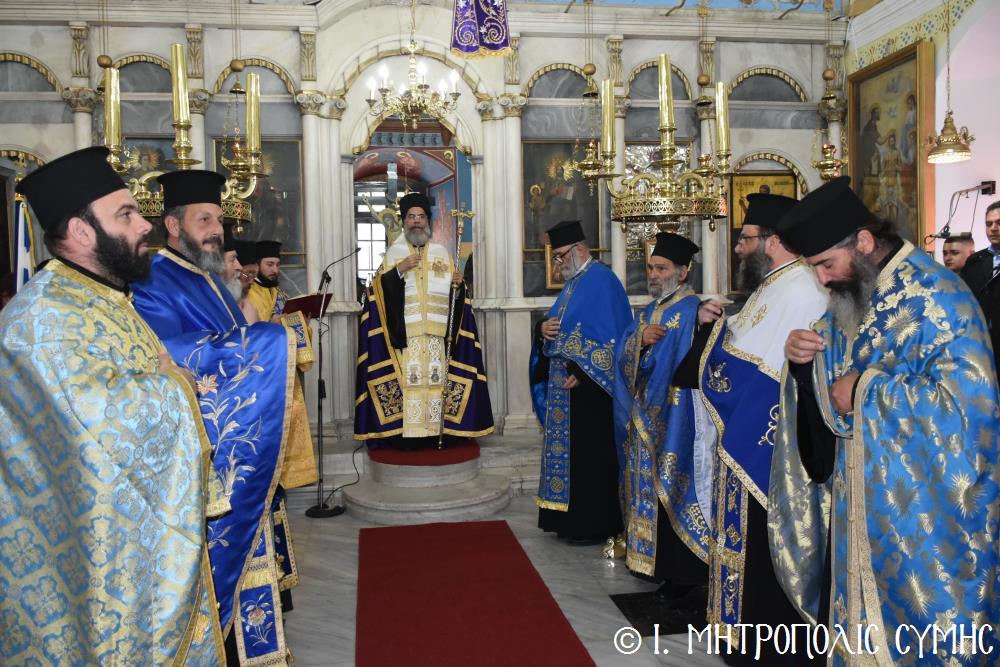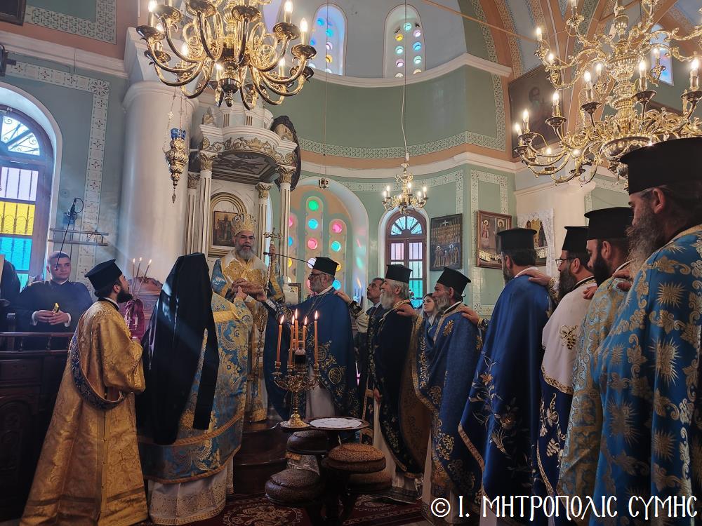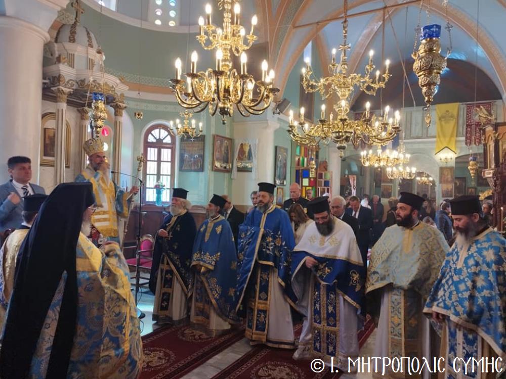 Μέ τήν δέουσα ἐκκλησιαστική τάξη καί λαμπρότητα ἑορτάστηκε ἐφέτος Κυριακή 24η καί Δευτέρα 25η Μαρτίου 2024 καί στήν Σύμη, τήν ἕδρα τῆς Ἱερᾶς Μητροπόλεώς μας, ἡ διπλή ἑορτή τοῦ Εὐαγγελισμοῦ τῆς Ὑπεραγίας Θεοτόκου καί παράλληλα ἡ ἐπέτειος τῆς Ἐθνικῆς μας Παλιγγενεσίας. Τό ἐπίκεντρο τοῦ ἑορτασμοῦ ἦταν ὁ πανηγυρίζων ἐνοριακός Ἱερός Ναός τοῦ Εὐαγγελισμοῦ τῆς Θεοτόκου, ὁ ὁποῖος δεσπόζει σέ περίοπτη θέση δεξιά τῆς εἰσόδου τοῦ γραφικοῦ λιμανιοῦ τοῦ νησιοῦ.