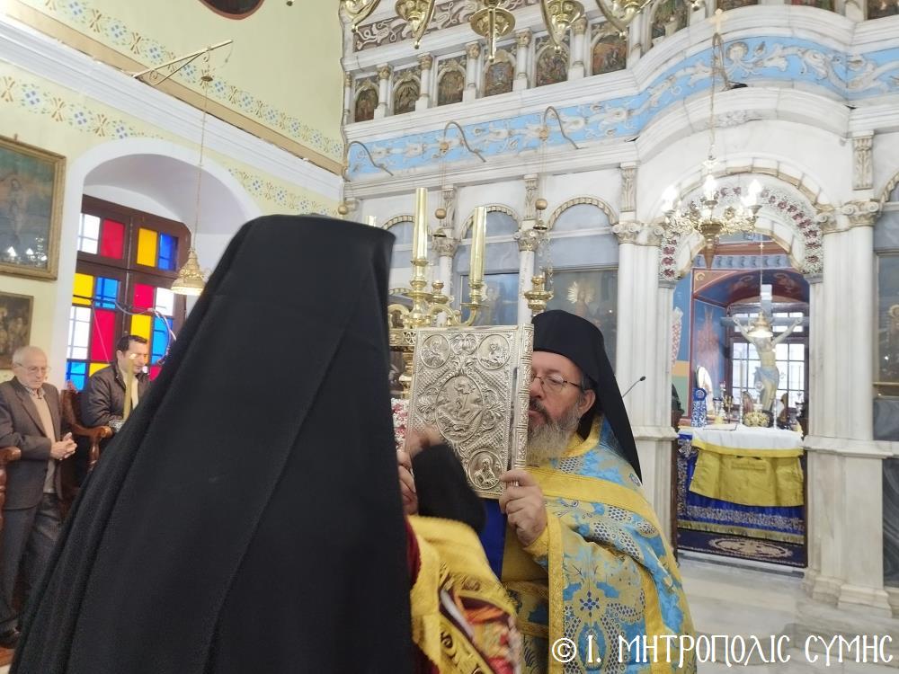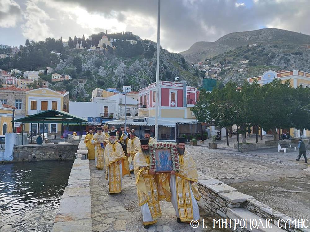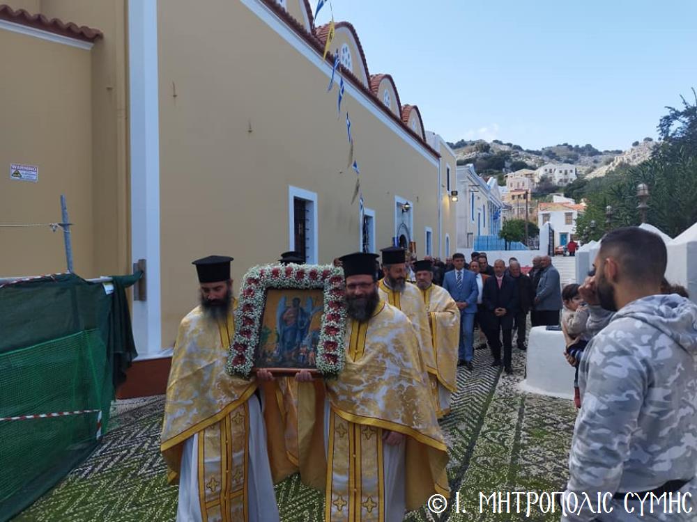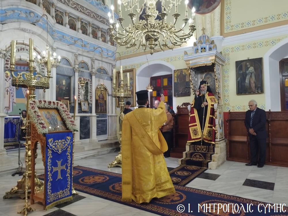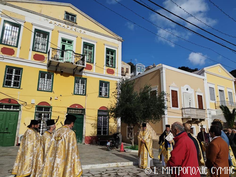 Πρό τῆς Ἀπολύσεως ἐπραγματοποιήθη ἡ λιτανεία τῆς ἱ. Εἰκόνος τοῦ Τιμίου Προδρόμου εἰς τάς παρακειμένας ὁδούς τοῦ Ἱ. Ναοῦ, ἐνῶ πρό τοῦ Δημαρχιακοῦ, τοῦ Μητροπολιτικοῦ Μεγάρου, ὡς καί τῆς Λέσχης Ἀξιωματικῶν τῶν Ἐνόπλων Δυνάμεων ἀνεπέμφθη Δέησις. Μεταξύ τῶν πιστῶν, παρέστησαν ὁ Δήμαρχος Σύμης κ. Ἐλευθέριος Παπακαλοδούκας, οἱ Ἀντιδήμαρχοι κ. Νικήτας Γρύλλης καί κ. Ἠλίας Χάσκας, Μέλη τοῦ Δημοτικοῦ Συμβουλίου, ὁ Διοικητής Δ.Α.Ν. Σύμης Συνταγματάρχης κ. Παναγιώτης Βρανάς, ὡς καί ἐκπρόσωποι τῶν λοιπῶν τοπικῶν Ἀρχῶν, Φορέων καί Συλλόγων.