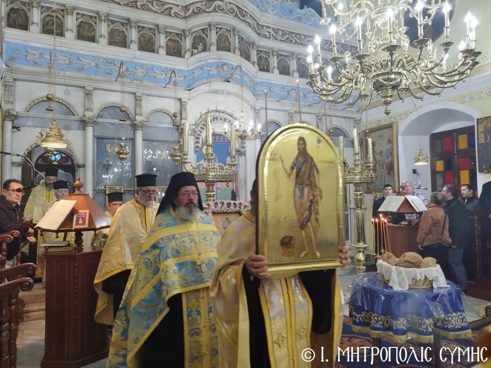 Μέ τήν δέουσα ἐκκλησιαστική τάξη καί λαμπρότητα πανηγύρισε σήμερα Κυριακή 7η Ἰανουαρίου 2024 τήν Σύναξη τοῦ Τιμίου καί Ἐνδόξου Προφήτου Προδρόμου καί Βαπτιστοῦ Ἰωάννου, ὁ ὁμώνυμος Μητροπολιτικός Ἱ. Ναός τοῦ Ἁγίου Ἰωάννου Προδρόμου Σύμης, μέ τήν συμμετοχή πυκνοῦ ἐκκλησιάσματος.