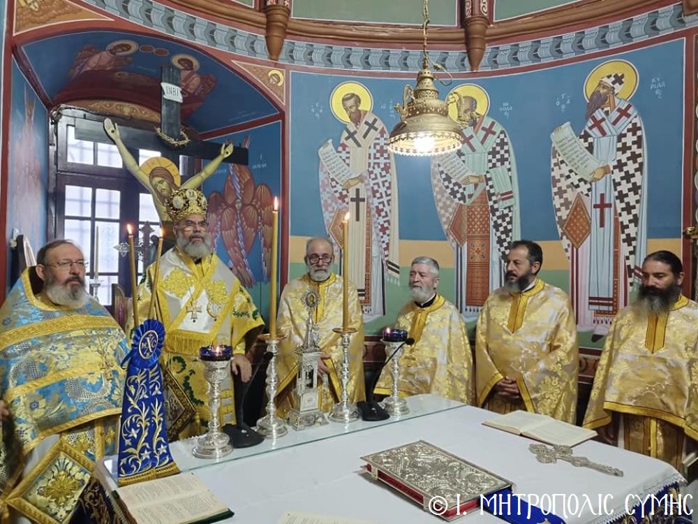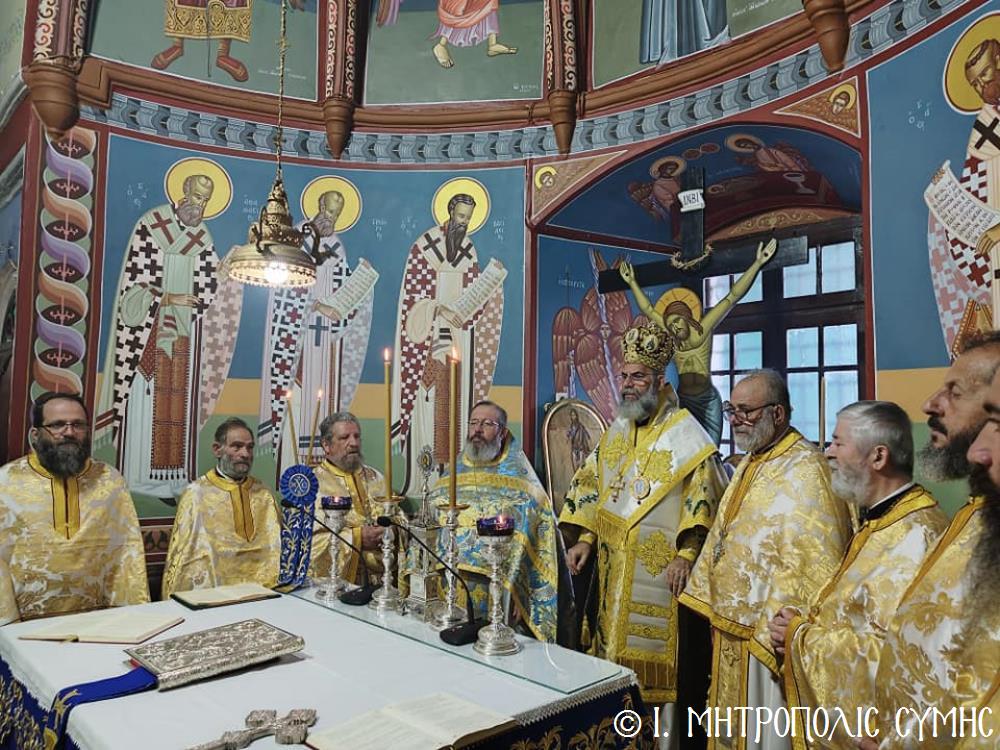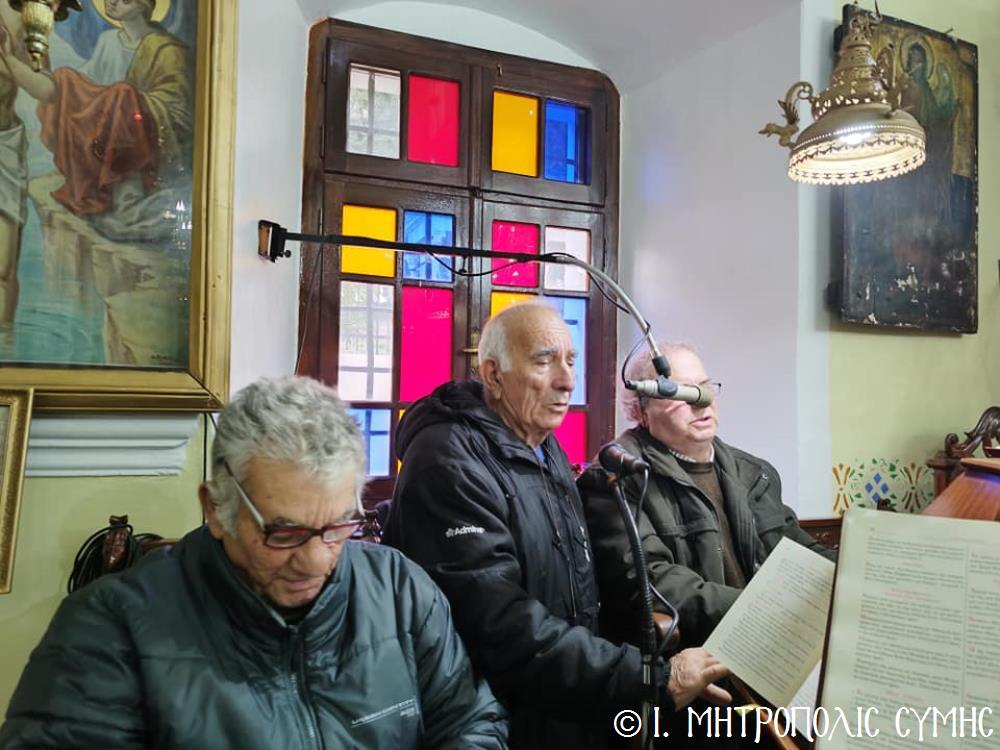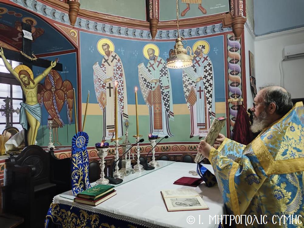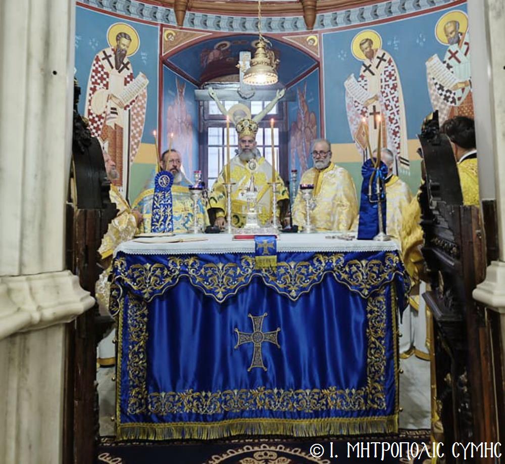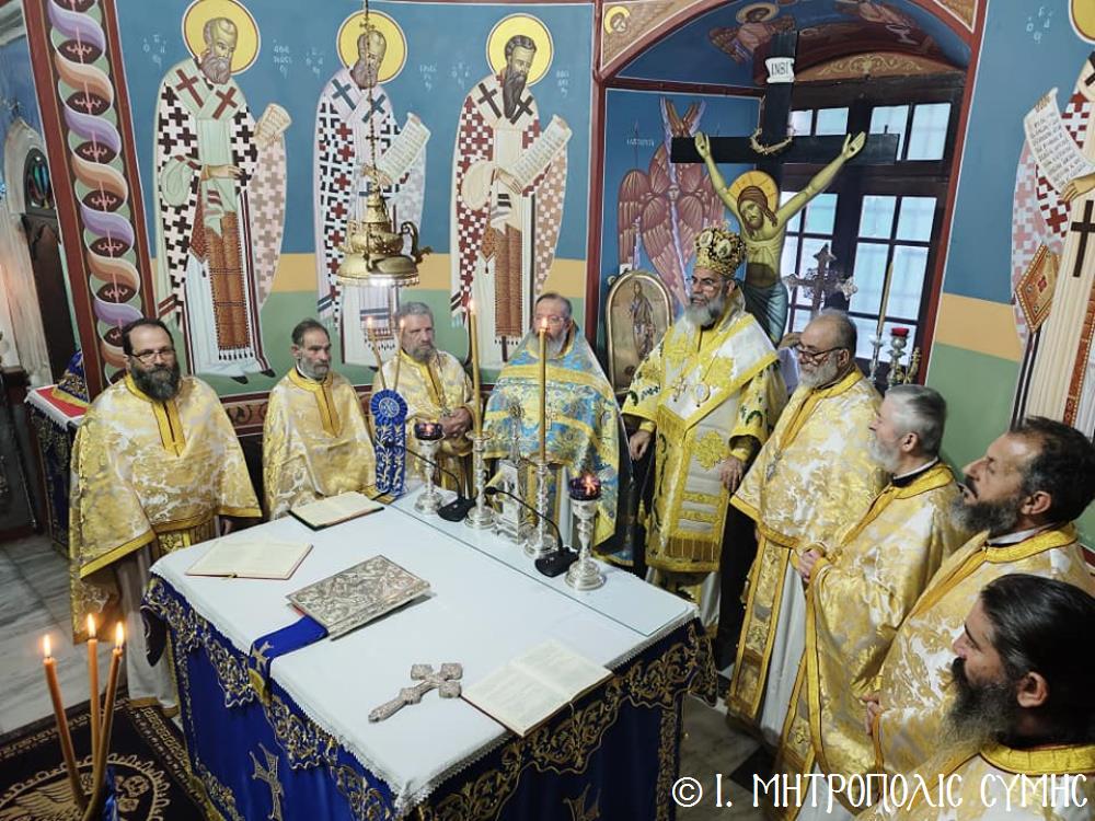 Σήμερα τό πρωί, κυριώνυμος ἡμέρα, ὁ Σεβ. Ποιμενάρχης μας κ. Χρυσόστομος χοροστάτησε εἰς τόν Ὄρθρον καί τέλεσε τήν Θ. Λειτουργία μετ’ Ἀρτοκλασίας, μέ συλλειτουργούς του ἅπαντες τούς ὡς ἄνω Κληρικούς. Τά ἀναλόγια λάμπρυναν κατά τήν Πανήγυρη, δεξιά ὁ Πρωτοψάλτης τοῦ Μητροπολιτικοῦ Ἱ. Ναοῦ κ. Δημοσθένης Γιανναρᾶς, μετά τοῦ υἱοῦ του Μερκουρίου καί τοῦ κ. Πανορμίτη Κακακιοῦ, περιστοιχιζόμενοι καί ἐξ ἑτέρων.