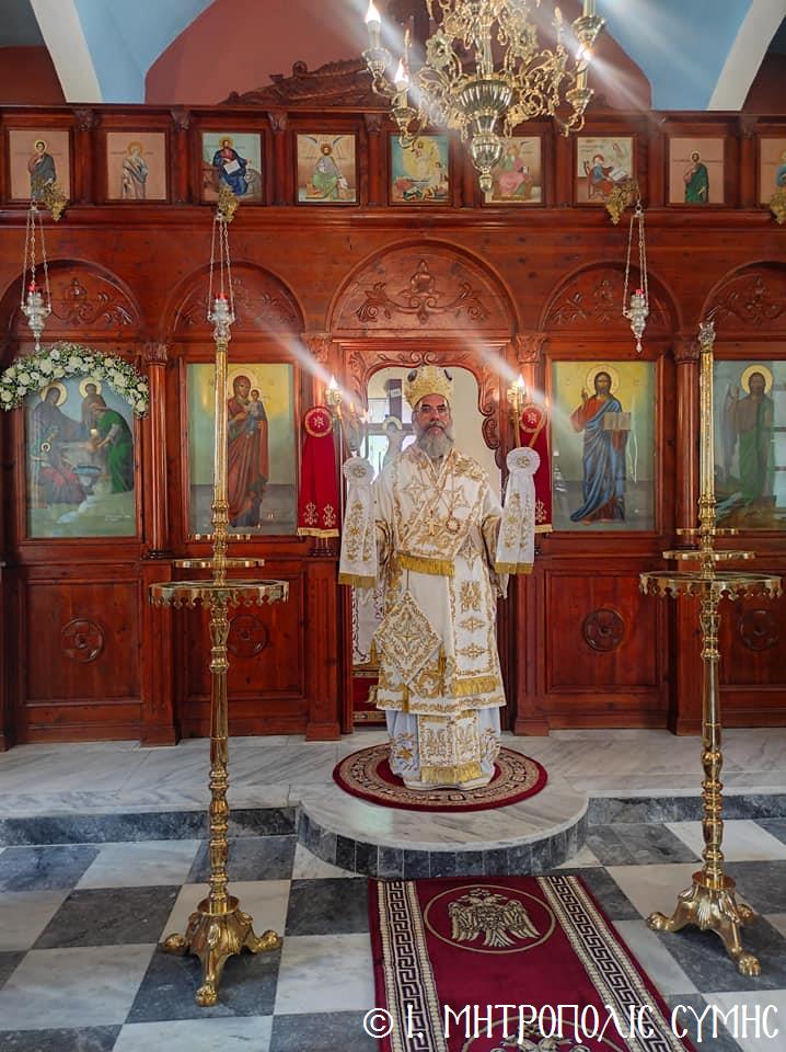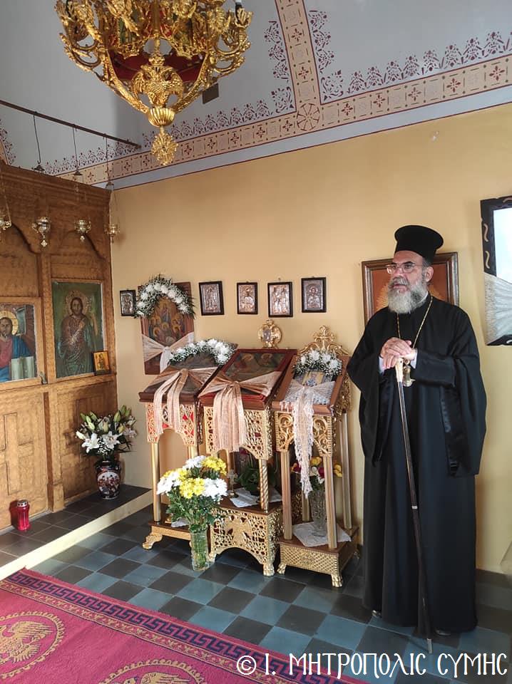 Μέ ἱεροπρέπεια καί εὐλάβεια ἑορτάσθη καί ἐφέτος στήν Σύμη ἡ ἑορτή τοῦ Γενεθλίου τῆς Ὑπεραγίας Θεοτόκου. Τό ἑσπέρας τῆς παραμονῆς, Πέμπτης 7ης Σεπτεμβρίου 2023, ὁ Σεβ. Μητροπολίτης μας κ. Χρυσόστομος, χοροστάτησε στόν Μέγα πανηγυρικό Ἑσπερινό, ὁ ὁποῖος ἐτελέσθη στό γραφικό ἐκκλησάκι τῆς Παναγίας τοῦ «Στύλου» κατά τήν Συμαϊκή ντοπιολαλιά, πού βρίσκεται ἐπί τῆς ἐπαρχιακῆς ὁδοῦ Σύμης-Πανορμίτη. Τόν Σεβασμιώτατο πλαισίωσαν ὁ Ἐφημέριος τῆς Ἐνορίας Ἁγίας Τριάδος Σύμης π. Γεώργιος Χατζηχρυσάφης ἐνῶ τό ἱ. ἀναλόγιο διακόνησε ὁ Ἱεροψάλτης κ. Μερκούριος Γιανναρᾶς.