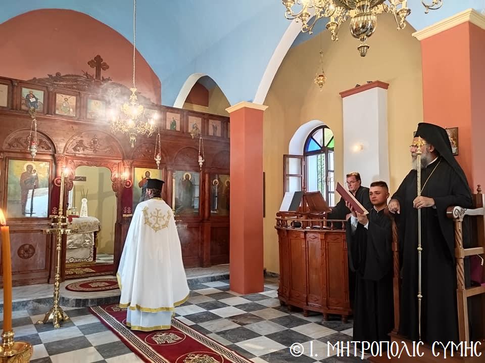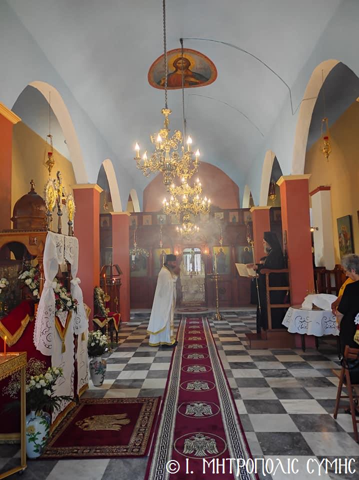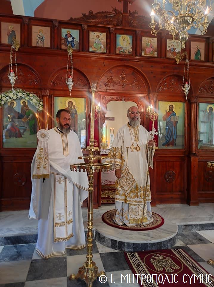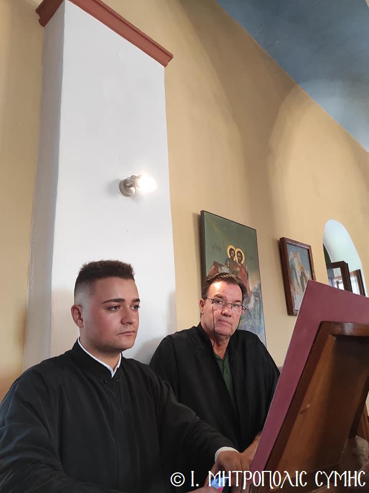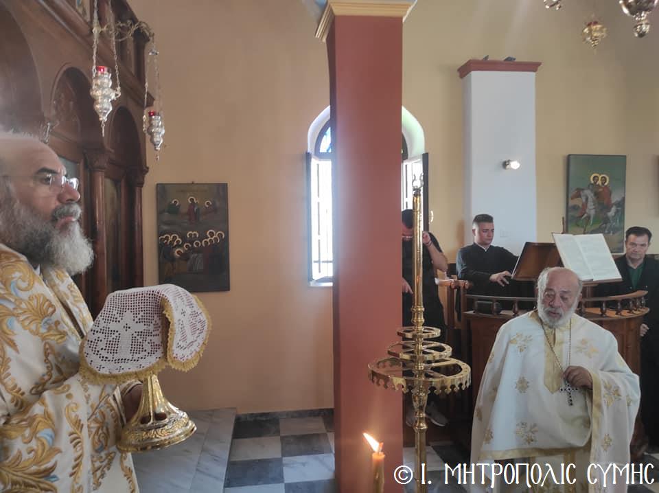 Σήμερα Παρασκευή 8η Σεπτεμβρίου κυριώνυμος ἡμέρα, ὁ Σεβ. Μητροπολίτης μας κ. Χρυσόστομος χοροστάτησε στόν Ὄρθρο καί τέλεσε τήν Θεία Λειτουργία στόν Προσκυνηματικό Ἱ. Ναό Γενεθλίου Θεοτόκου τῆς «Πειραιώτισσας» στήν Σύμη, μέ συλλειτουργούς του, τόν Γεν. Ἀρχιερατικό Ἐπίτροπο τῆς Ἱ. Μητροπόλεως Κώου καί Νισύρου, Αἰδεσιμολ. Πρωτοπρεσβύτερο τοῦ Οἰκουμενικοῦ Θρόνου π. Ἰωάννη Διακοπαναγιώτη, φιλοξενούμενο τοῦ Σεβ. Ποιμενάρχου μας, τόν Ἐφημέριο τῆς Ἐνορίας Εὐαγγελισμοῦ τῆς Θεοτόκου π. Ἀντώνιο Μανιᾶ καί τόν Ἐφημέριο τῆς Ἐνορίας Ἁγίου Δημητρίου π. Γεώργιο Κακακιό. Τά δέ ἀναλόγια διηκόνησαν οἱ Ἱεροψάλτες, δεξιά ὁ κ. Θεόδωρος Κορδομπούσης καί ὁ κ. Ἐλευθέριος Ξηράκης καί ἀριστερά ὁ κ. Ἀγαπητός Μιχελής καί ὁ κ. Πανορμίτης Κακακιός.