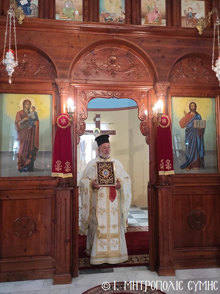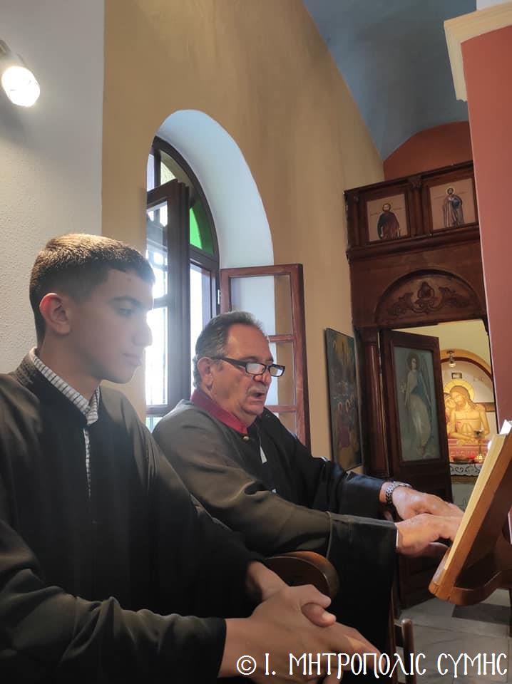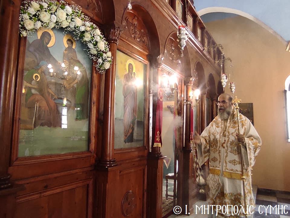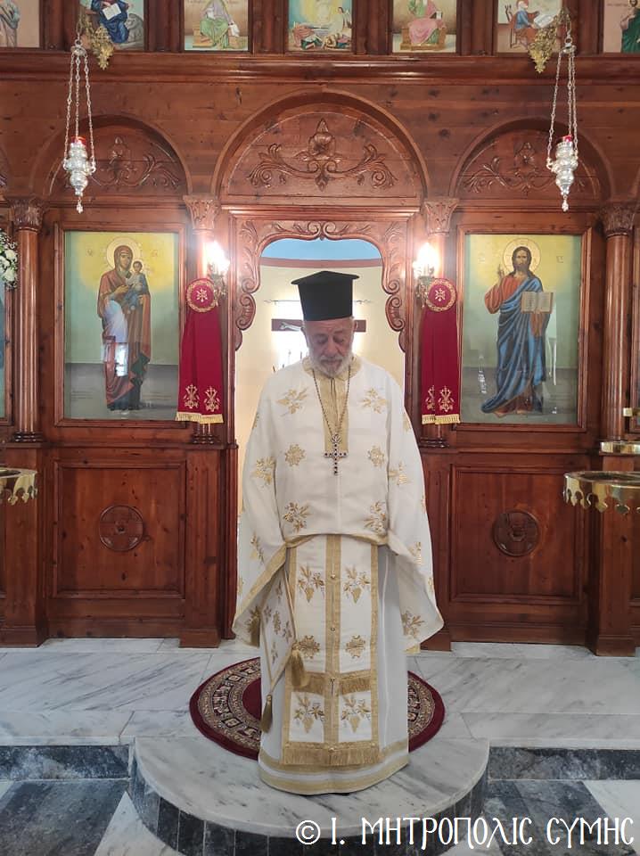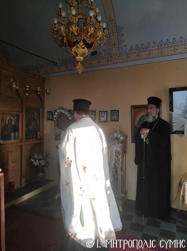 Σήμερα Παρασκευή 8η Σεπτεμβρίου κυριώνυμος ἡμέρα, ὁ Σεβ. Μητροπολίτης μας κ. Χρυσόστομος χοροστάτησε στόν Ὄρθρο καί τέλεσε τήν Θεία Λειτουργία στόν Προσκυνηματικό Ἱ. Ναό Γενεθλίου Θεοτόκου τῆς «Πειραιώτισσας» στήν Σύμη, μέ συλλειτουργούς του, τόν Γεν. Ἀρχιερατικό Ἐπίτροπο τῆς Ἱ. Μητροπόλεως Κώου καί Νισύρου, Αἰδεσιμολ. Πρωτοπρεσβύτερο τοῦ Οἰκουμενικοῦ Θρόνου π. Ἰωάννη Διακοπαναγιώτη, φιλοξενούμενο τοῦ Σεβ. Ποιμενάρχου μας, τόν Ἐφημέριο τῆς Ἐνορίας Εὐαγγελισμοῦ τῆς Θεοτόκου π. Ἀντώνιο Μανιᾶ καί τόν Ἐφημέριο τῆς Ἐνορίας Ἁγίου Δημητρίου π. Γεώργιο Κακακιό. Τά δέ ἀναλόγια διηκόνησαν οἱ Ἱεροψάλτες, δεξιά ὁ κ. Θεόδωρος Κορδομπούσης καί ὁ κ. Ἐλευθέριος Ξηράκης καί ἀριστερά ὁ κ. Ἀγαπητός Μιχελής καί ὁ κ. Πανορμίτης Κακακιός.