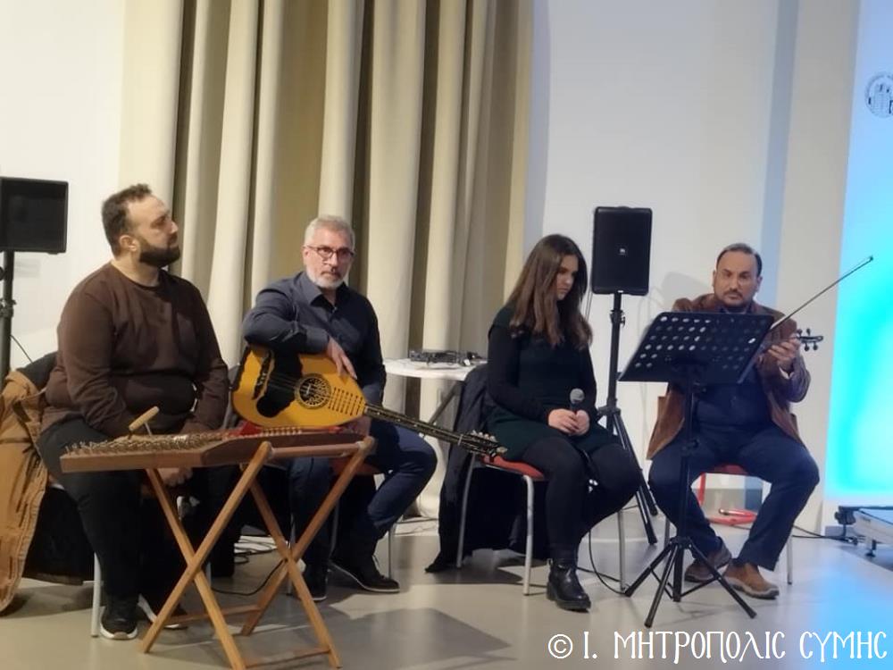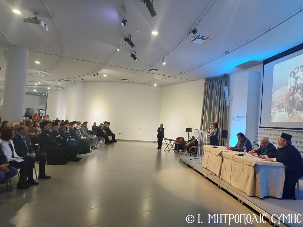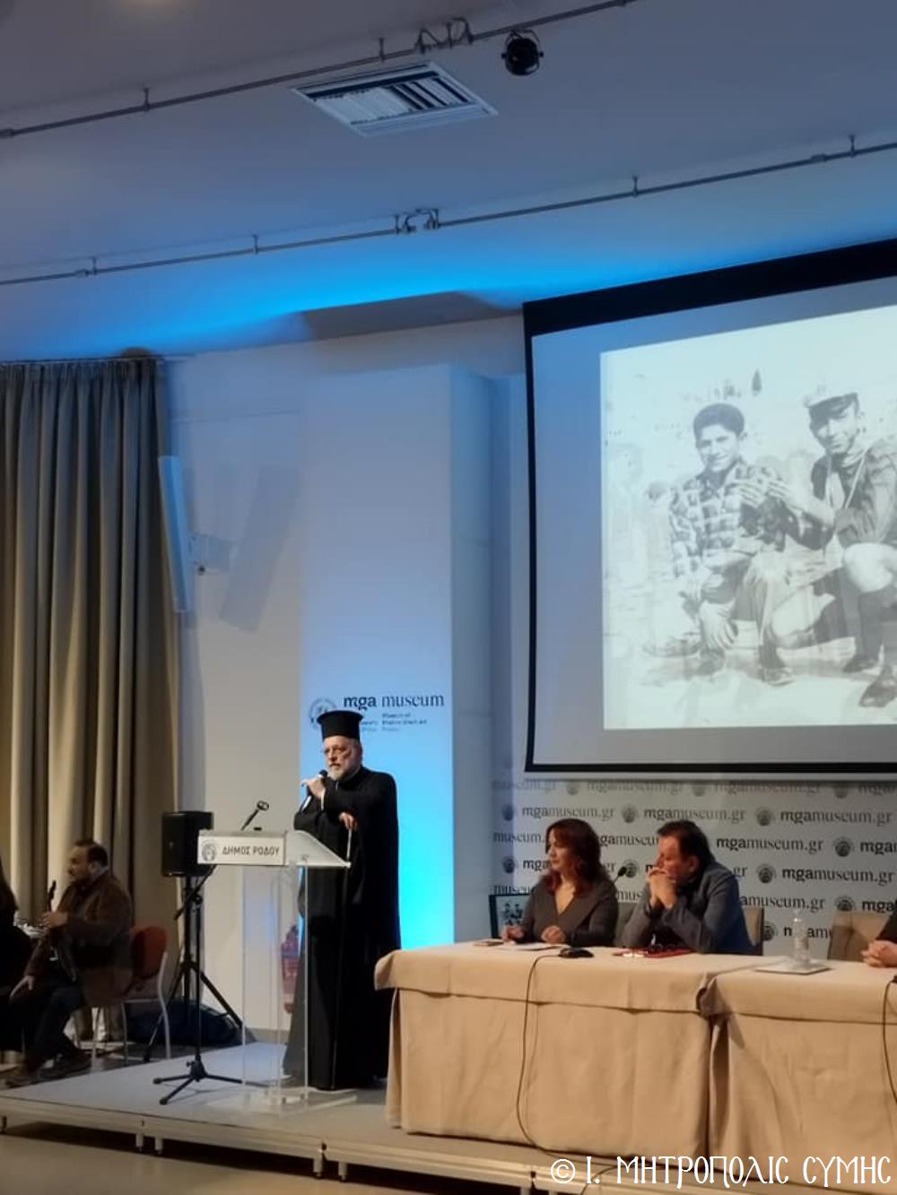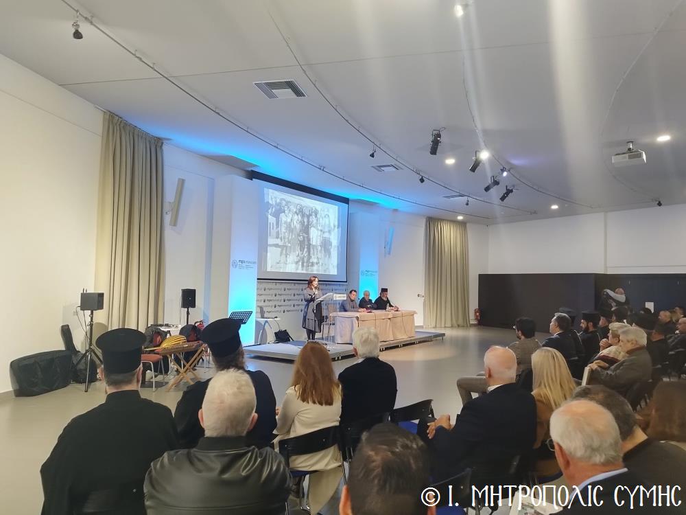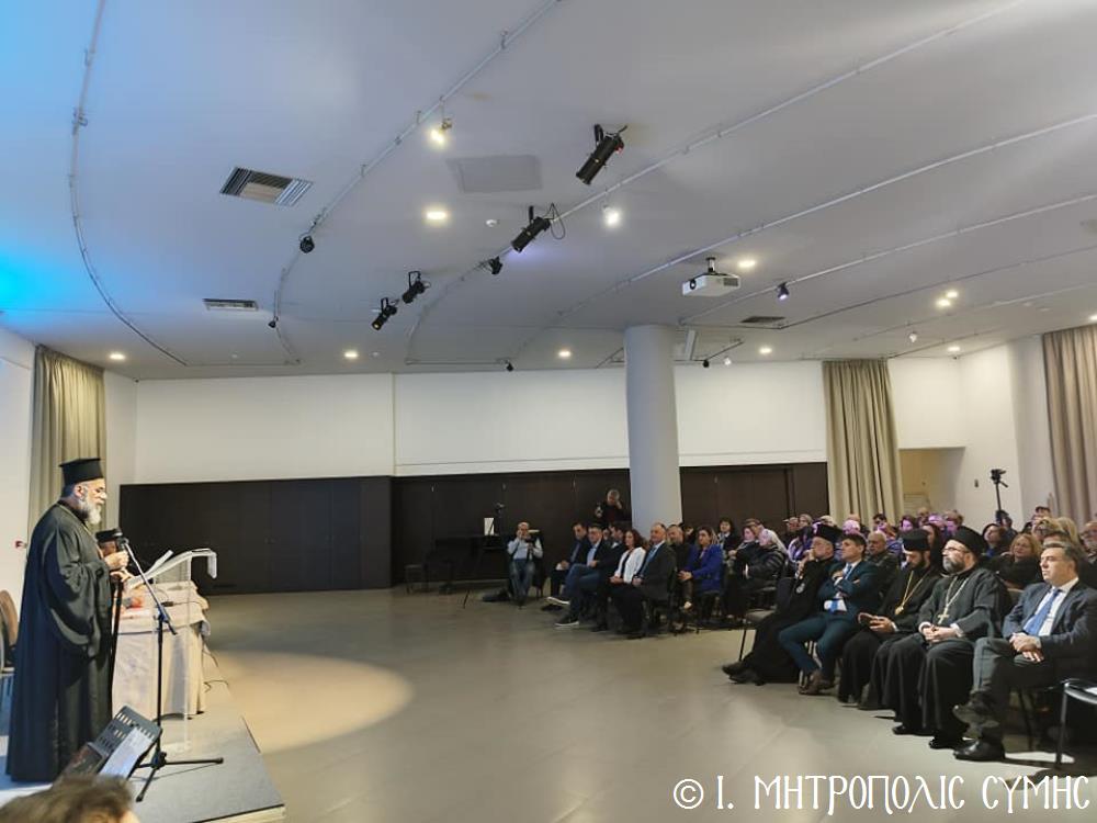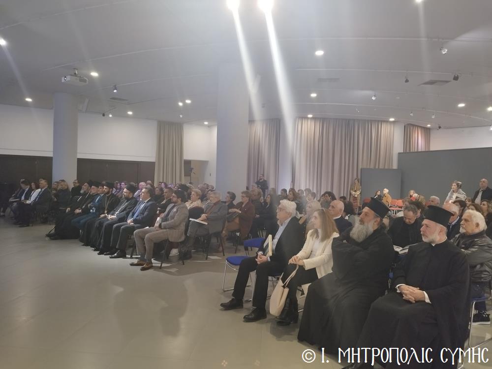 Τόν καταληκτικό χαιρετισμό ἔκανε ὁ Σεβ. Μητροπολίτης μας κ. Χρυσόστομος, ἀναφερόμενος στήν ἔκδοση τοῦ Τόμου, ἐπισημαίνοντας ὅτι ἐπινοήθηκε ὡς τιμή καί χρέος ἀπέναντι σέ ὅσους ἀνάλωσαν τούς ἑαυτούς τους καί «παντοιοτρόπως συνέβαλαν στήν ἐπίτευξη τοῦ ἱεροῦ τούτου σκοποῦ, καί δή ἐν μέσῳ τῆς Ἰταλικῆς κατοχῆς, προσφέροντας ἀποτέλεσμα ἀνέλπιστο διά τά δεδομένα τῆς ἐποχῆς ἐκείνης, τῆς ἱδρύσεως δηλαδή τοῦ πνευματικοῦ αὐτοῦ πνεύμονος, ὁ ὁποῖος ἀπεδείχθη ζωτικός καί καταλυτικός στήν κατίσχυση τοῦ Ἑλληνικοῦ πνεύματος ἔναντι τῆς ἀνίερης καί λυσσαλέας τότε προσπάθειας ἀφελληνισμοῦ καί προσκολλήσεως στόν ἰταλικό κορμό, τόσον τῆς Νήσου μας, ὅσον καί ὅλης τῆς Δωδεκανήσου». Ὁ Σεβασμιώτατος συνέχισε μέ θερμές εὐχαριστίες σ’ ὅλους τούς ἄξιους συντελεστές τῆς ἐκδηλώσεως, μνημονεύοντας ὅσους συνέγραψαν κείμενα καί πρωτοστάτησαν γιά τήν συλλογή τοῦ πλουσίου αὐτοῦ ἀρχειακοῦ ὑλικοῦ, τούς ὁμιλητές μέ ἐπικεφαλῆς τόν Πανοσιολ. Ἀρχιμανδρίτη τοῦ Οἰκουμενικοῦ Θρόνου Ἀντώνιο Πατρό, τόν κ. Μανώλη Ἀντωνόγλου καί τόν κ. Κώστα Σκανδαλίδη, τόν Σύλλογο Συμιακῶν Ρόδου «Ὁ Γλαῦκος» γιά τήν ἄψογη διοργάνωση καί ὅλους τούς Συμαϊκούς Συλλόγους, ἐπίσης τούς μουσικούς κ. Γεώργιο Χατζηπέτρο ἐκ Σύμης καί τό μουσικό σχῆμα τοῦ κ. Μιχ. Καλαϊτζῆ γιά τήν ὄμορφη μουσική βραδιά πού ἀκολούθησε.