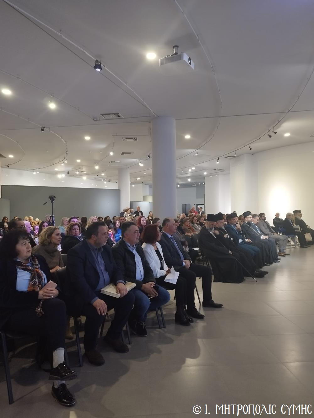 Ἐπρόκειτο ἀναμφίβολα γιά μιά πολύ ἐπιτυχημένη καί ὑψηλοῦ ἐπιπέδου ἐκδήλωση, τήν ὁποία λάμπρυναν μέ τήν τιμητική παρουσία τους πολλά καί ἐκλεκτά πρόσωπα, ἐκ τῶν ὁποίων ἐνδεικτικῶς ἀναφέρουμε τόν Σεβ. Ποιμενάρχη μας, Μητροπολίτη Σύμης κ. Χρυσόστομο, τόν οἰκεῖο Σεβ. Μητροπολίτη Ρόδου κ. Κύριλλο, τόν Θεοφ. Ἐπίσκοπο Ὀλύμπου κ. Κύριλλο, τόν Πανοσιολ. Καθηγούμενο τῆς Ἱερᾶς Μονῆς Πανορμίτου, Ἀρχιμανδρίτη τοῦ Οἰκουμενικοῦ Θρόνου Ἀντώνιο Πατρό, τόν Πανοσιολ. Πρωτοσύγκελλο τῆς Ἱ. Μητροπόλεως Ρόδου Ἀρχιμ. Θεωνᾶ Καμπέρη, τόν Πανοσιολ. Ἀρχιμ. Μελίτωνα Μπέλλο, τόν Πανοσιολ. Ἀρχιμ. π. Νεκτάριο Πόκκια, Διευθυντῆ τοῦ Τηλεοπτικοῦ Σταθμοῦ «Θάρρι» τῆς ὁμωνύμου ἐν Ρόδῳ Ἱ. Μονῆς, τόν Βουλευτῆ Δωδεκανήσου κ. Μάνο Κόνσολα, τόν Δήμαρχο Ροδίων κ. Ἀλέξανδρο Κολιάδη, τόν Δήμαρχο Σύμης κ. Ἐλευθέριο Παπακαλοδούκα, τόν Διοικητῆ τῆς 95 Α.Δ.Τ.Ε. Ὑποστράτηγο κ. Γεώργιο Μανουρᾶ, τούς Ἄρχοντες Ὀφικιαλίους τοῦ Οἰκουμενικοῦ Θρόνου κ. Θεόδωρον Παπαγεωργίου, Νομικό Σύμβουλο τῆς Ἱερᾶς Μητροπόλεως καί κ. Ἀθανάσιον Ταβουτσόγλου, τήν κ. Σουσάνα Καρδούλια, Πρόεδρο τοῦ Συμβουλίου Δημοτικῆς Κοινότητας Ρόδου καί Πρόεδρο τοῦ Μουσείου Νεοελληνικῆς Τέχνης τοῦ Δήμου Ρόδου, τόν Πρόεδρο τοῦ Δημοτ. Σ. Ρόδου κ. Κυριάκο Κασάπη καί Μέλη τοῦ Δ. Σ. τόν Πρόεδρο τοῦ Δημοτικοῦ Λιμενικοῦ Ταμείου Νοτίας Δωδεκανήσου κ. Βασ. Βαγιαννάκη, τόν κ. Νικόλαο Κωνσταντινίδη, Πρόεδρο τῆς Ὁμοσπονδίας Παροικιακῶν Συλλόγων Ρόδου καί Μέλος τοῦ Δ.Σ τῆς Στέγης Γραμμάτων καί Τεχνῶν Δωδεκανήσου, ἐκπροσώπους ἄλλων Δωδεκανησιακῶν Συλλόγων καί Σωματείων, πολλούς Συμιακούς καί φίλους τῆς Σύμης, καθώς καί ἀποφοίτους τοῦ Πανορμιτείου Γυμνασίου.