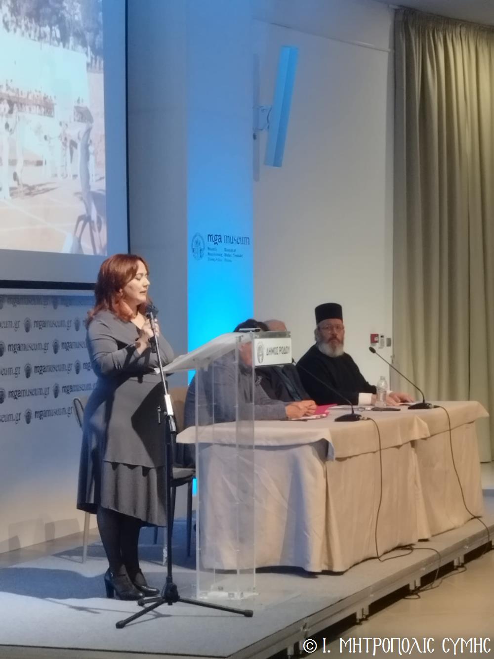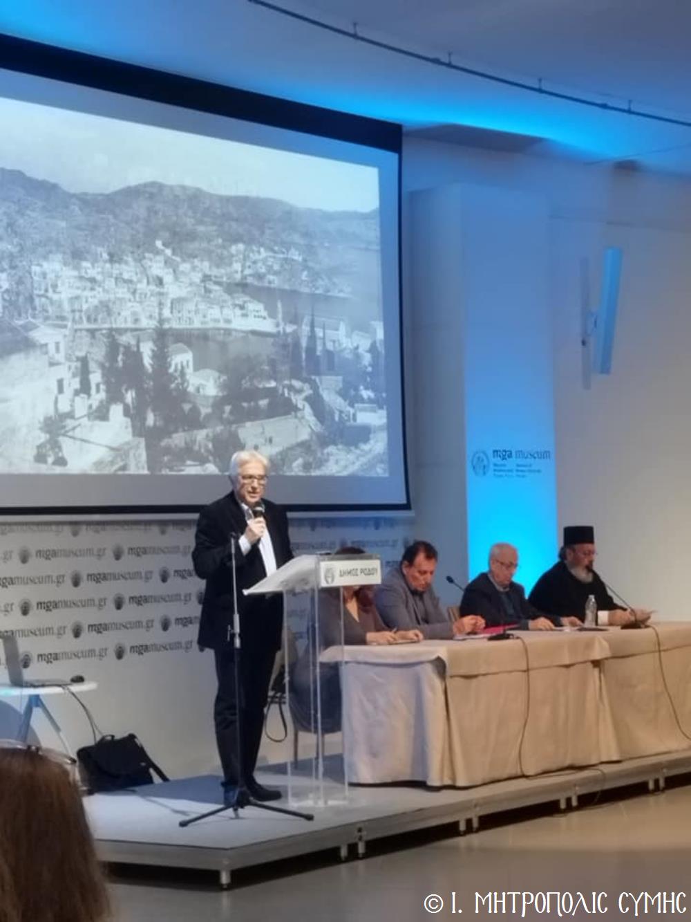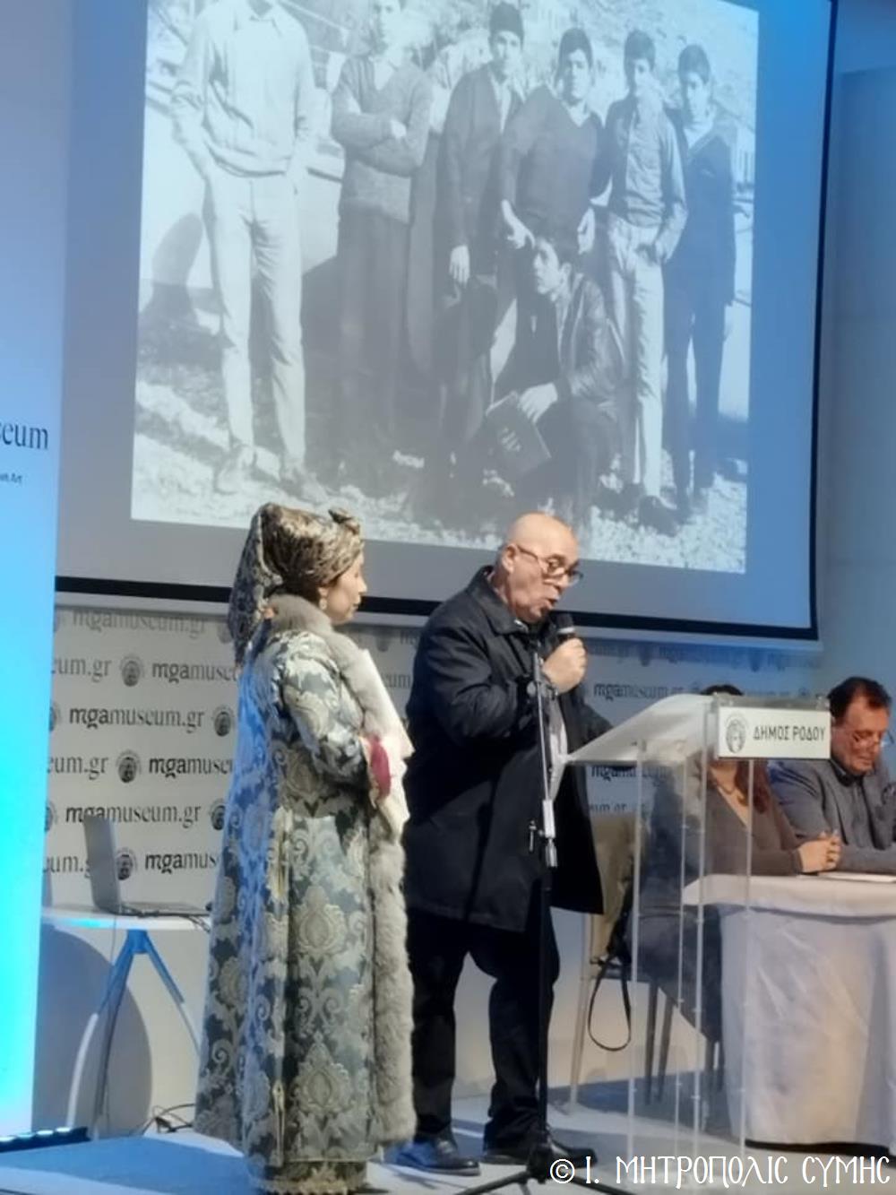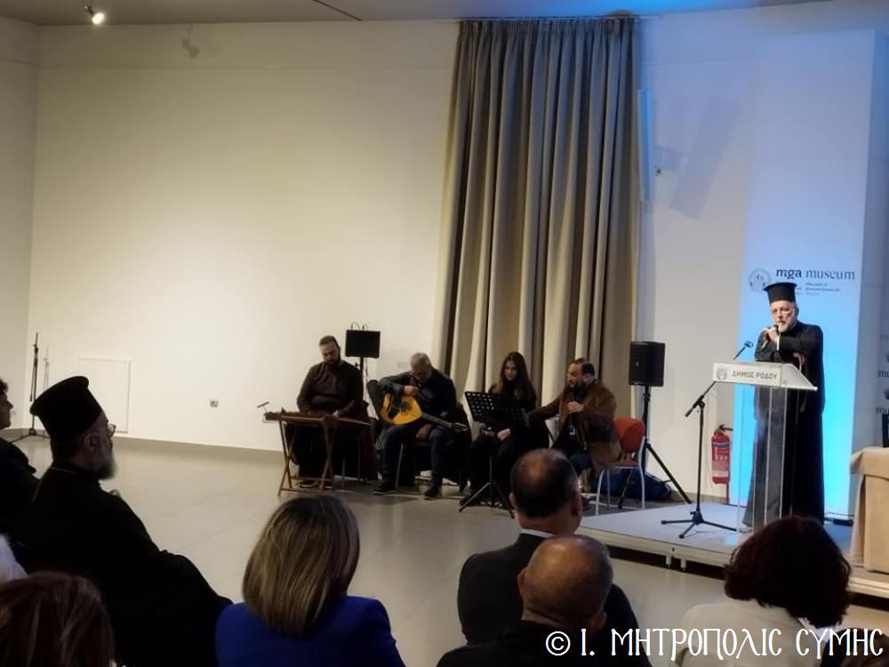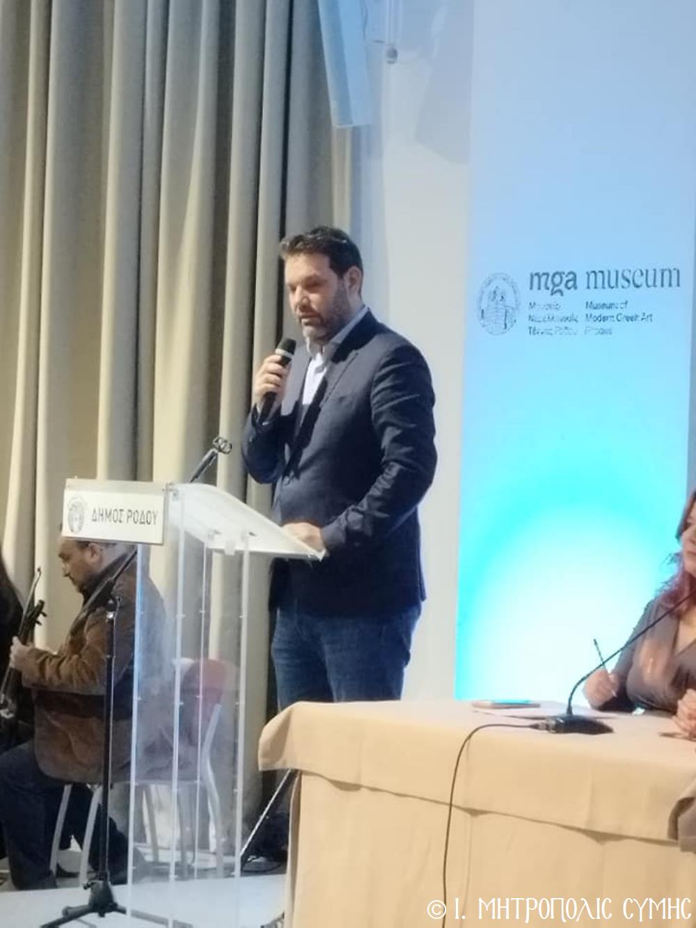 Ἐπίσης, χαιρετισμούς ἀπηύθυναν ὁ Σεβ. Μητροπολίτης Ρόδου κ. Κύριλλος, ὁ Βουλευτής κ. Μάνος Κόνσολας, ὁ Δήμαρχος Ροδίων κ. Ἀλέξανδρος Κολιάδης καί ὁ Δήμαρχος Σύμης κ. Ἐλευθέριος Παπακαλοδούκας, ἡ κ. Σουσάνα Καρδούλια, Πρόεδρος τοῦ Μουσείου Νεοελληνικῆς Τέχνης καί ὁ κ. Νικόλαος Κωνσταντινίδης, Πρόεδρος τῆς Ὁμοσπονδίας Παροικιακῶν Συλλόγων Ρόδου, καθώς καί ὁ κ. Σωτήριος Πατατοῦκος Ἐκπρόσωπος τοῦ Δ.Σ. τοῦ Συλλόγου Συμιακῶν Ρόδου "ὁ Γλαῦκος".