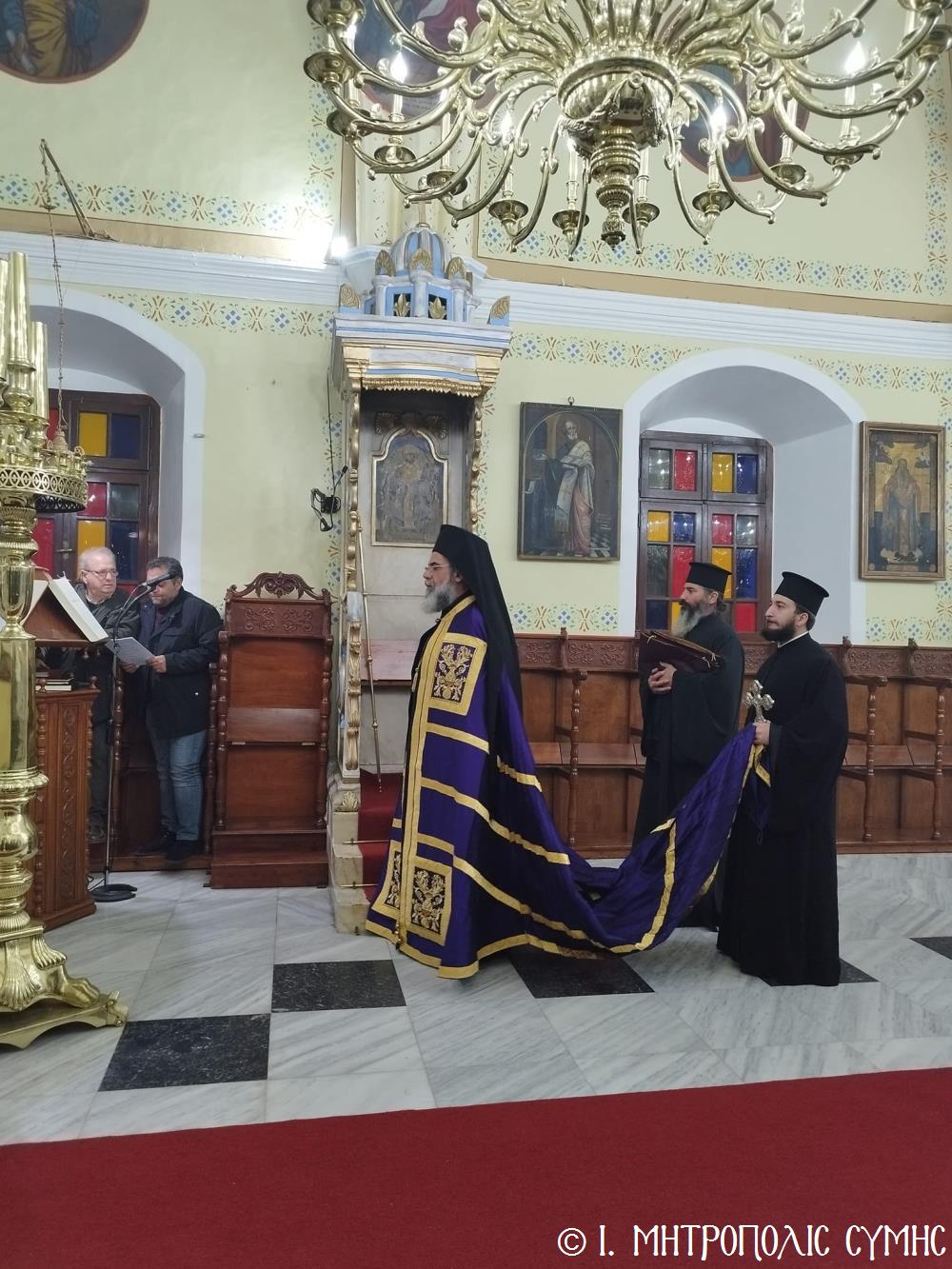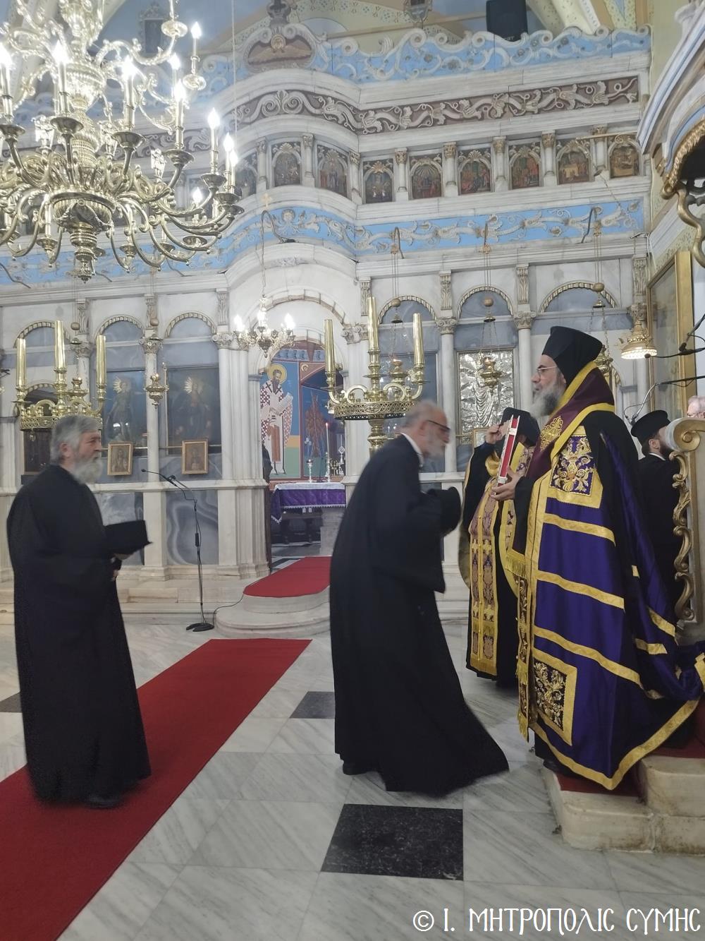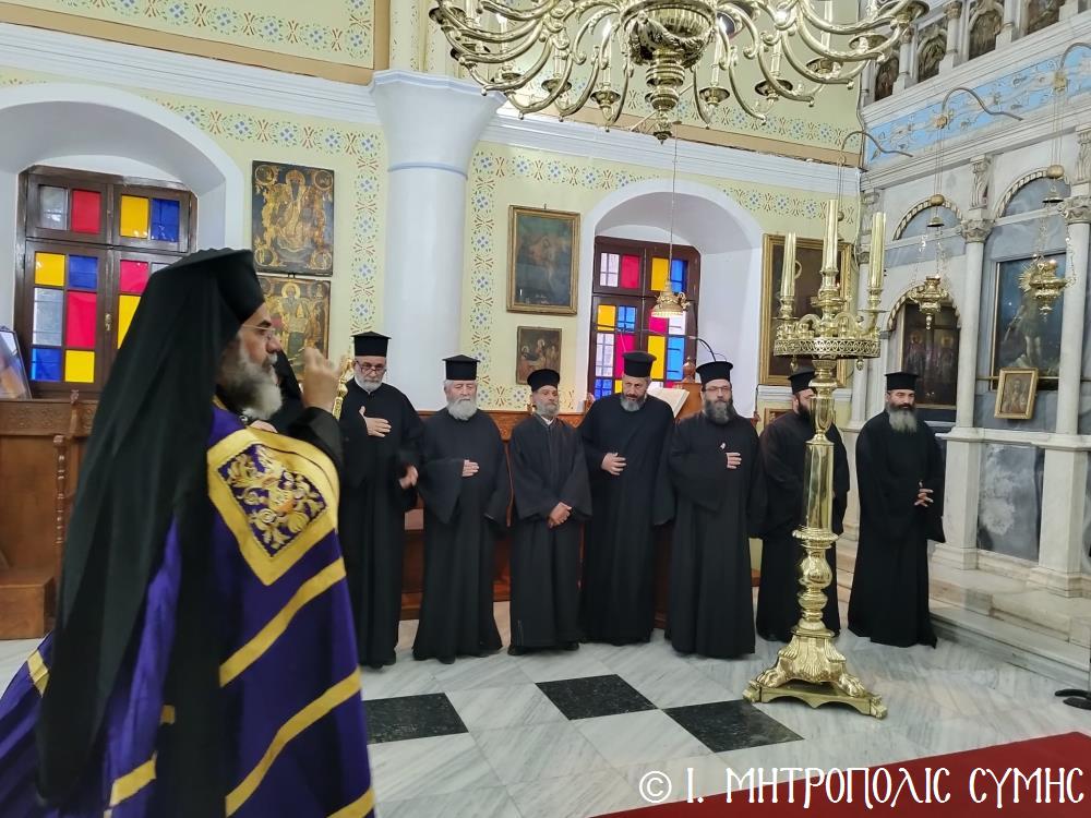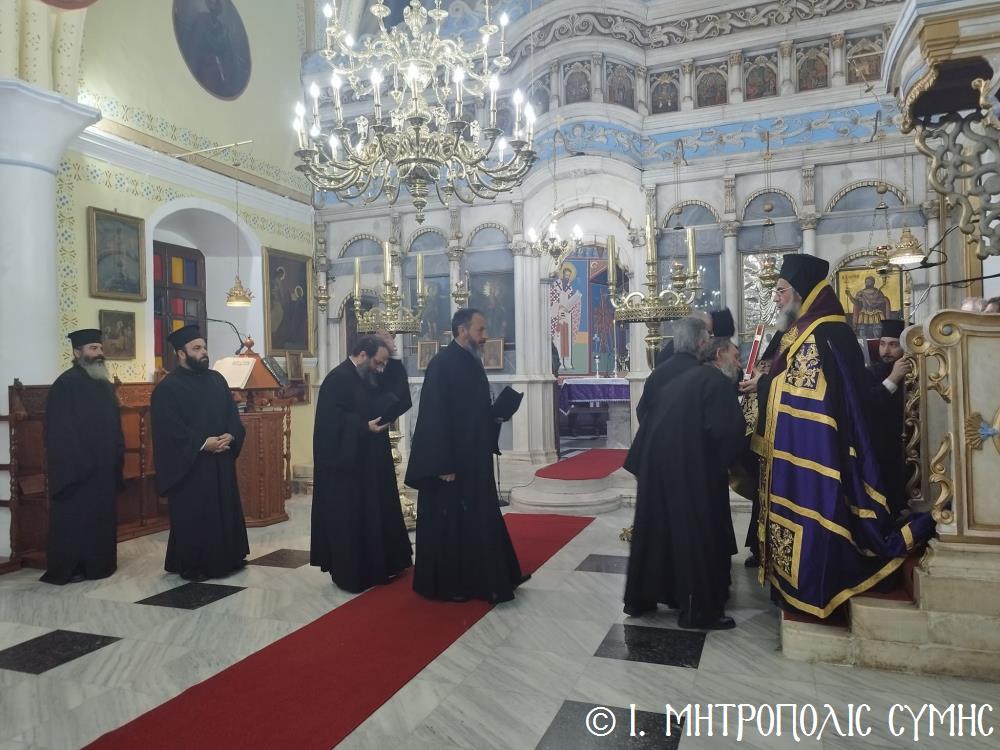 Σήμερα, Κυριακή τῆς Τυρινῆς, 17η Μαρτίου 2024 καί ὥρα 6η ἀπογευματινή ἐτελέσθη, χοροστατοῦντος τοῦ Σεβ. Ποιμενάρχου μας κ. Χρυσοστόμου καί συμπροσευχομένων τῶν Κληρικῶν τῆς Νήσου μας, ὁ Α΄ Κατανυκτικός Ἑσπερινός τῆς Ἁγίας καί Μεγάλης Τεσσαρακοστῆς, ὁ ἑπονομαζόμενος τῆς «Συγγνώμης», εἰς τόν Ἱερόν Μητροπολιτικόν Ναόν τοῦ Τιμίου Προδρόμου Σύμης. Τό ἱερόν Ἀναλόγιον διακόνησαν οἱ Ἱεροψάλτες κ.κ. Δημοσθένης Γιανναρᾶς, Σταῦρος Πίλιουρας, Χαράλαμπος Κατσιμπρής καί Ἐλευθέριος Ξηράκης, ἐνῶ συμμετεῖχε ἀρκετός κόσμος.
