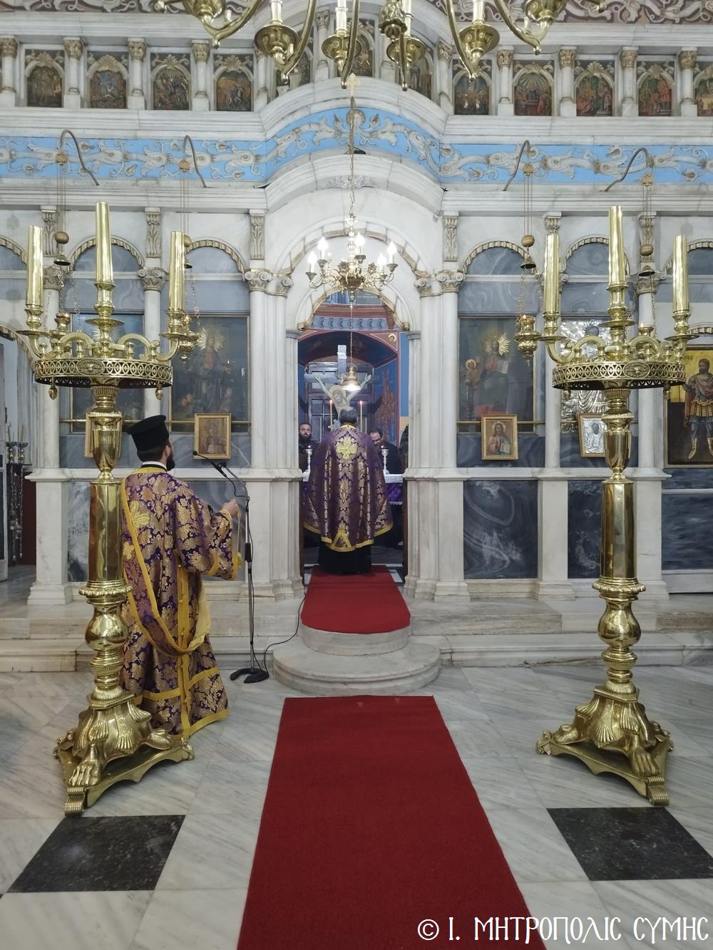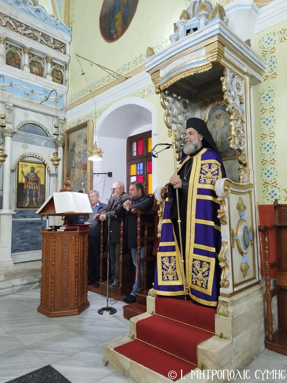 Μετά τό πέρας τοῦ Ἑσπερινοῦ ὁ Σεβασμιώτατος ὁμίλησε ἐπικαίρως περί τῆς Ἁγίας καί Μεγάλης Τεσσαρακοστῆς, ἀναγνώσας τήν συγχωρητικήν εὐχή, μετά τήν ὁποίαν προσερχόμενοι πάντες ἔλαβαν καί ἔδωσαν τήν συγχώρησιν, ὥστε νά εἰσέλθουν χριστιανοπρεπῶς εἰς τό πνευματικόν στάδιον τῶν ἁγίων Νηστειῶν, προετοιμαζόμενοι καταλλήλως διά τήν βίωσιν ἐκκλησιαστικῶς τῶν Κοσμοσωτηρίων Παθῶν καί τῆς Ζωηφόρου Ἀναστάσεως τοῦ Σωτῆρος ἡμῶν Ἰησοῦ Χριστοῦ.
