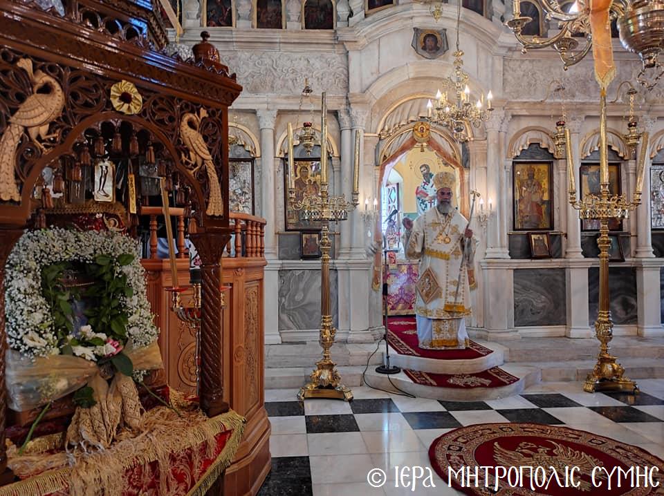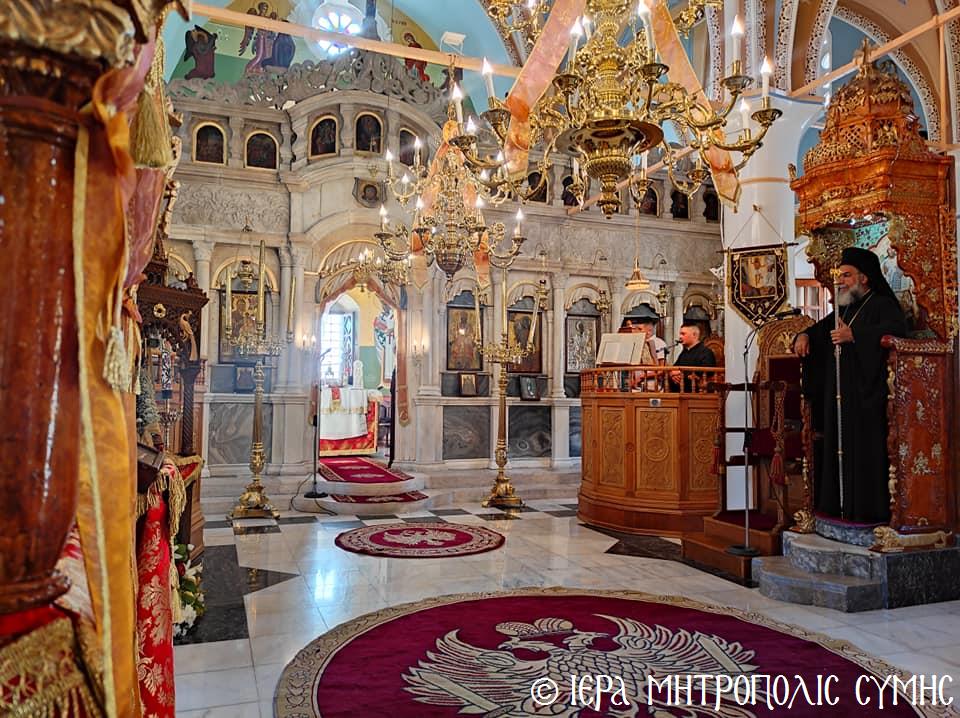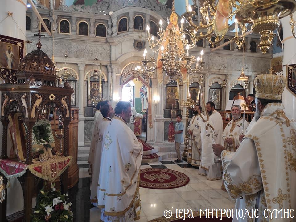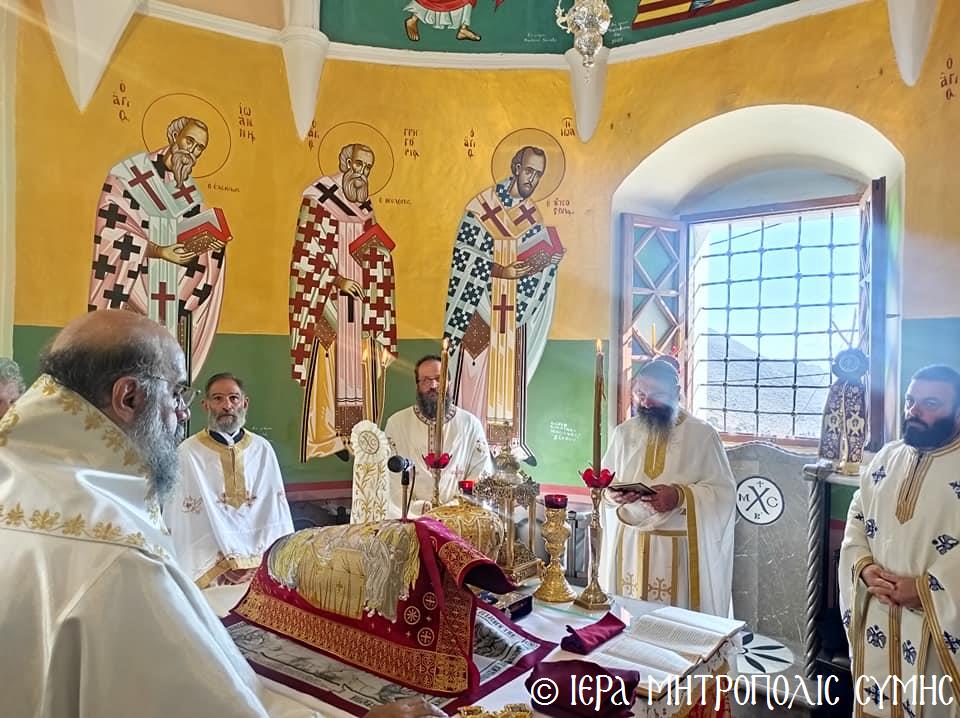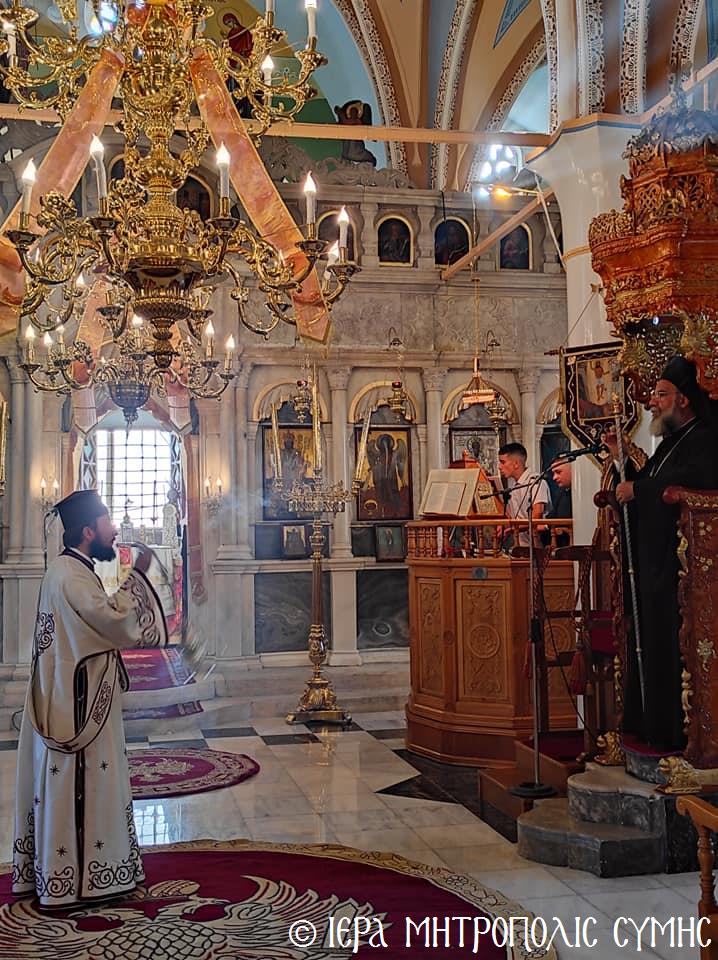 Ο ΣΕΒ. ΜΗΤΡΟΠΟΛΙΤΗΣ ΜΑΣ κ. ΧΡΥΣΟΣΤΟΜΟΣ ΛΕΙΤΟΥΡΓΟΣ ΣΤΟΝ I. ΕΝΟΡΙΑΚΟ ΝΑΟ ΑΓΙΟΥ ΑΘΑΝΑΣΙΟΥ ΣΥΜΗΣ ΕΠΙ ΤΗ ΣΥΝΑΞΕΙ ΤΗΣ ΠΑΝΑΓΙΑΣ "ΓΛΥΣΤΡΙΑΝΗΣ" 2023