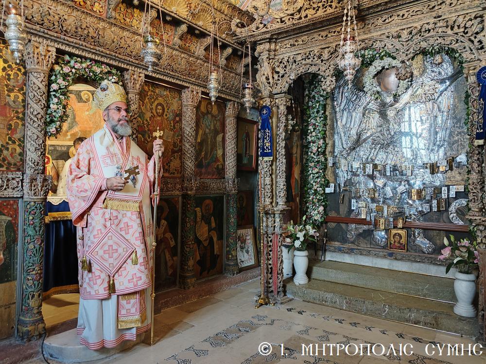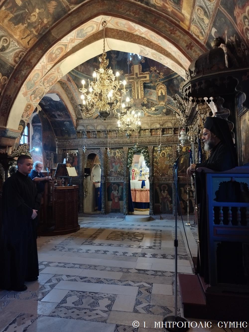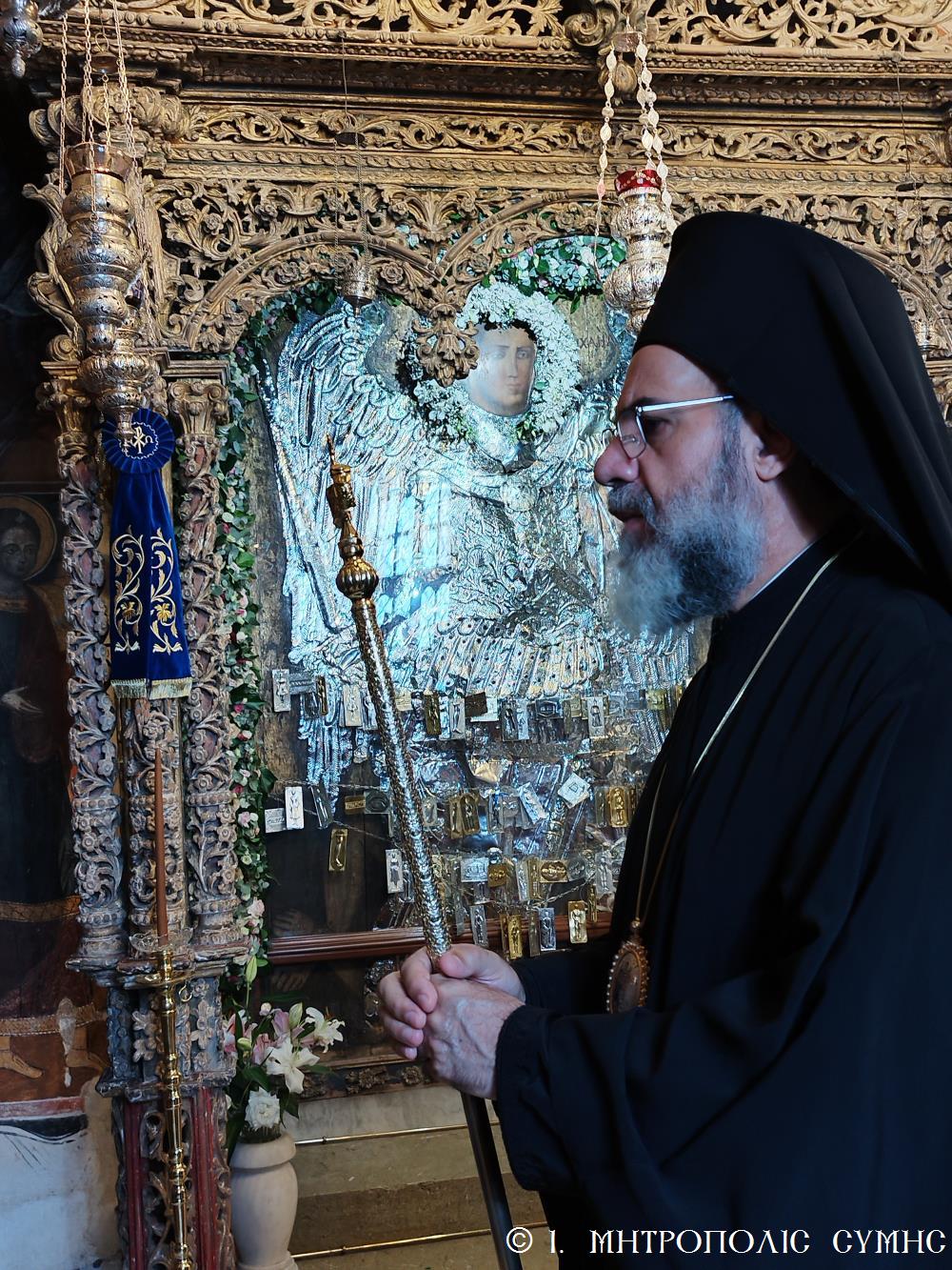 Σήμερα 12η Νοεμβρίου 2023, μεθέορτη Κυριακή Η΄ Λουκᾶ, ἀπό τῆς Συνάξεως τῶν Παμμεγίστων Ταξιαρχῶν, ὁ Σεβ. Μητροπολίτης μας κ. Χρυσόστομος, σύμφωνα μέ τό ἀνακοινωθέν πρόγραμμά του, χοροστάτησε στόν Ὄρθρο καί τέλεσε τήν Θ. Λειτουργία στήν πρότριτα πανηγυρίζουσα Ἱ. Μονή τοῦ Ταξιάρχου Μιχαήλ τοῦ Ρουκουνιώτου Σύμης, μέ συλλειτουργούς του τόν Ἱεροεπιστάτη αὐτῆς καί Γεν. Ἀρχιερατικό Ἐπίτροπο Πρωτοπρ. π. Στέφανο Μακρῆ, τόν π. Ἐμμανουήλ Λυκοπάντη, Συμαῖο τήν καταγωγή, κληρικό τῆς Ἱ. Ἀρχιεπισκοπῆς Αὐστραλίας, ὡς καὶ τόν Ἱεροδιάκονό μας π. Παῦλο Τερεζάκη. Τό ἱ. ἀναλόγιο διακόνησαν οἱ καλλικέλαδοι Ἱεροψάλτες κ. Δημοσθένης Γιανναράς καί κ. Ἐλευθέριος Ξηράκης.