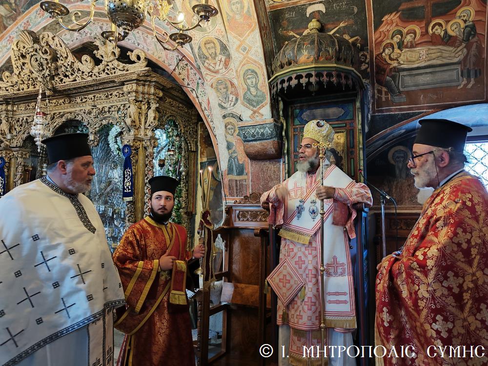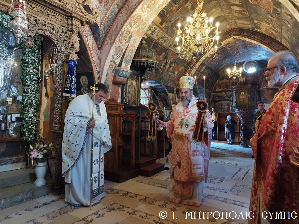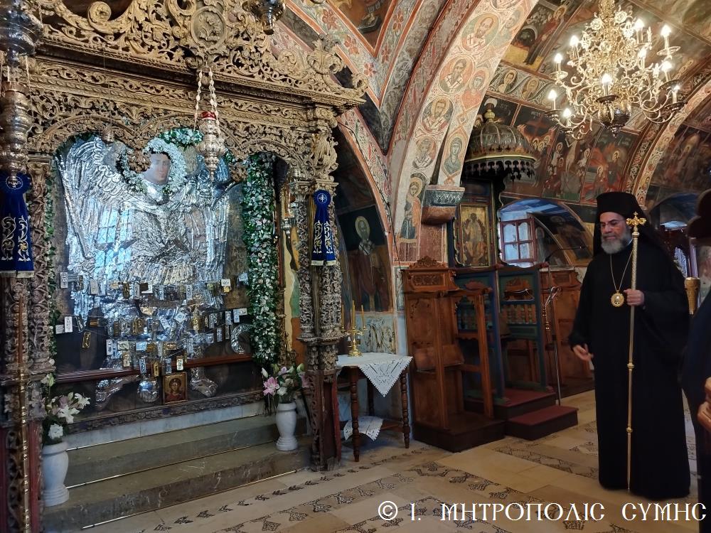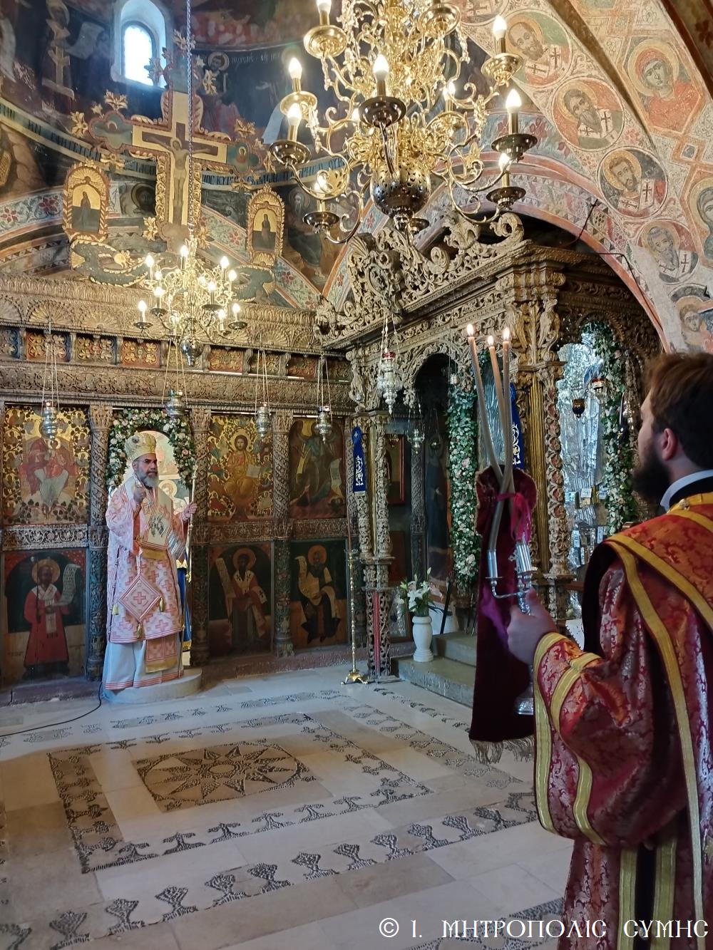 Σήμερα 12η Νοεμβρίου 2023, μεθέορτη Κυριακή Η΄ Λουκᾶ, ἀπό τῆς Συνάξεως τῶν Παμμεγίστων Ταξιαρχῶν, ὁ Σεβ. Μητροπολίτης μας κ. Χρυσόστομος, σύμφωνα μέ τό ἀνακοινωθέν πρόγραμμά του, χοροστάτησε στόν Ὄρθρο καί τέλεσε τήν Θ. Λειτουργία στήν πρότριτα πανηγυρίζουσα Ἱ. Μονή τοῦ Ταξιάρχου Μιχαήλ τοῦ Ρουκουνιώτου Σύμης, μέ συλλειτουργούς του τόν Ἱεροεπιστάτη αὐτῆς καί Γεν. Ἀρχιερατικό Ἐπίτροπο Πρωτοπρ. π. Στέφανο Μακρῆ, τόν π. Ἐμμανουήλ Λυκοπάντη, Συμαῖο τήν καταγωγή, κληρικό τῆς Ἱ. Ἀρχιεπισκοπῆς Αὐστραλίας, ὡς καὶ τόν Ἱεροδιάκονό μας π. Παῦλο Τερεζάκη. Τό ἱ. ἀναλόγιο διακόνησαν οἱ καλλικέλαδοι Ἱεροψάλτες κ. Δημοσθένης Γιανναράς καί κ. Ἐλευθέριος Ξηράκης.