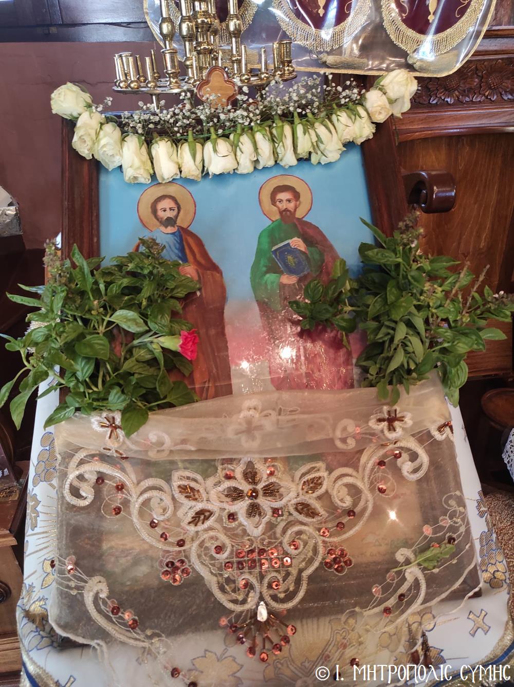 Σήμερα 30ή Ἰουλίου 2023, Κυριακή Η΄ Ματθαίου καί μνήμη τῶν Ἁγίων Ἀποστόλων Σίλα, Σιλουανοῦ, Ἐπαινετοῦ, Κρήσκη καί Ἀνδρονίκου, ἐκ τῶν ἑβδομήκοντα μαθητῶν, ὁ Σεβ. Μητροπολίτης μας κ. Χρυσόστομος χοροστάτησε εἰς τόν Ὄρθρο καί τέλεσε τήν Θεία Λειτουργία εἰς τόν Ἐνοριακό Ἱ. Ναό Ἁγίου Δημητρίου Σύμης, ὅπου εὑρίσκεται ἡ Εἰκόνα του καί τιμᾶται ὁ Ἅγιος Σίλας, μέ συλλειτουργούς του τόν π. Γεώργιο Κακακιό Ἐφημέριο τοῦ Ἱ. Ναοῦ καί τόν Ἱεροδιάκονο π. Παῦλο Τερεζάκη, ἐνῶ τήν ἱερά ὑμνωδία μελώδησαν ὁ κ. Έλευθέριος Ξηράκης, μεθ’ ἑτέρων.