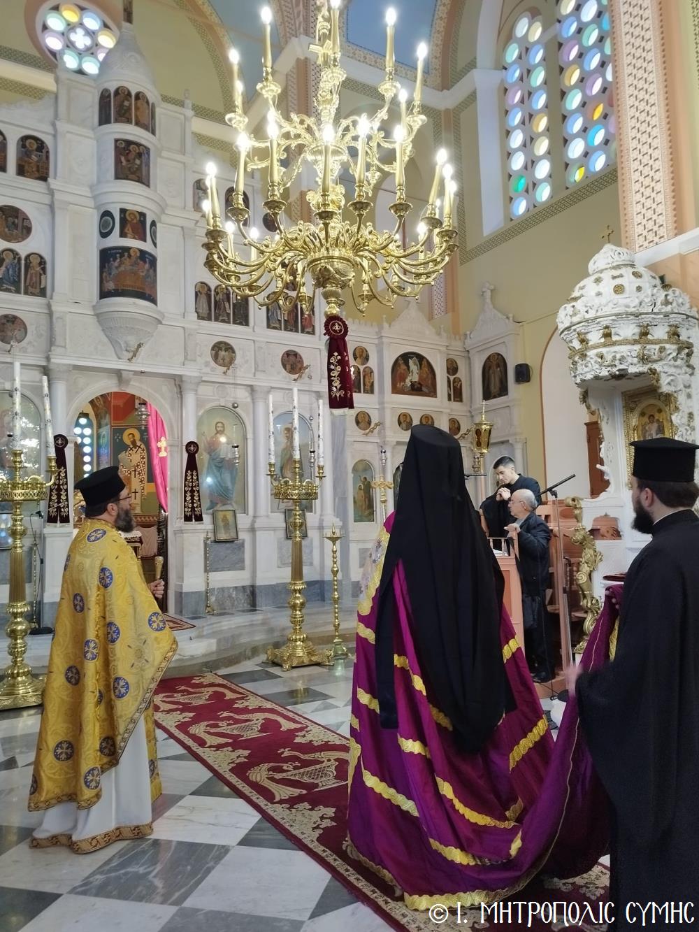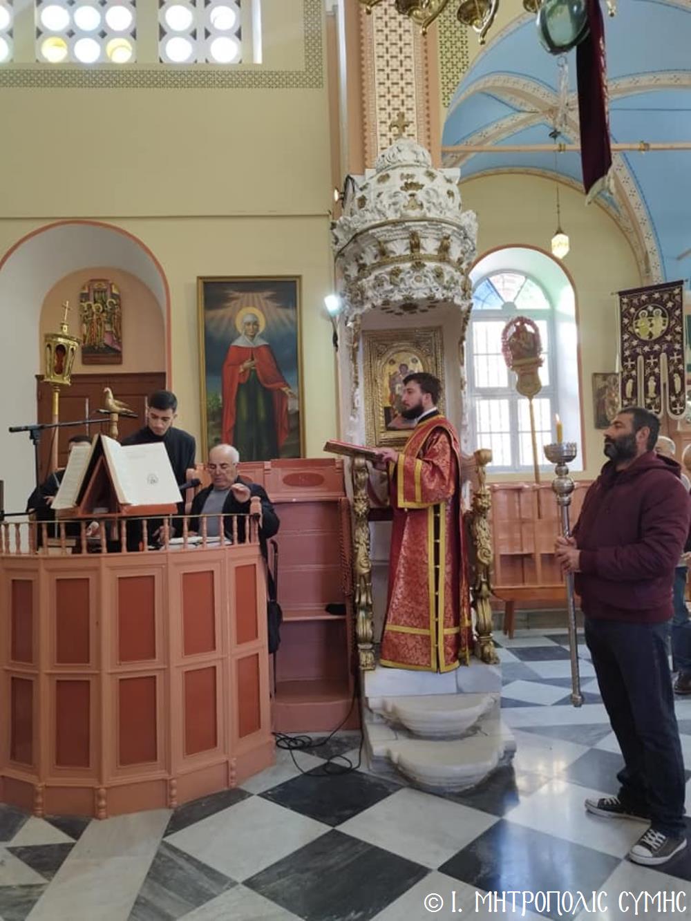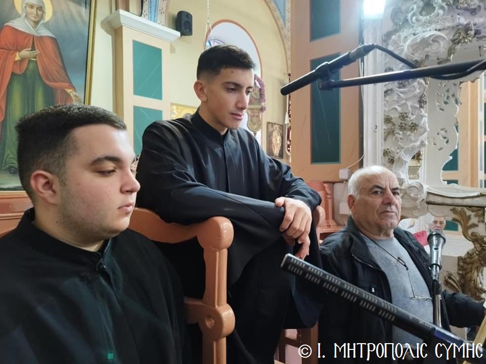 Σήμερα 24η Δεκεμβρίου 2023, Κυριακή πρό τῆς Χριστοῦ Γεννήσεως, ὁ Σεβ. Μητροπολίτης μας κ. Χρυσόστομος, χοροστάτησε στόν Ὄρθρο καί τέλεσε τήν Θεία Λειτουργία στόν Ἐνοριακό Ἱ. Ναό Ἁγίας Τριάδος Σύμης, μέ συλλειτουργούς του τόν ἐφημέριο τῆς Ἐνορίας π. Γεώργιο Χατζηχρυσάφη καί τόν Ἱεροδιάκονο π. Παῦλο Τερεζάκη. Τό ἱ. ἀναλόγιο στελέχωσαν καί ἀπέδωσαν τήν θεία ὑμνωδία, ὁ κ. Πανορμίτης Κακακιός Ἱεροψάλτης τῆς Ἐνορίας, ὁ κ. Προκόπιος Χατζηχρυσάφης, ἀμφότεροι Ἀναγνώστες καί ὁ κ. Μιχαήλ Κυπριώτης.