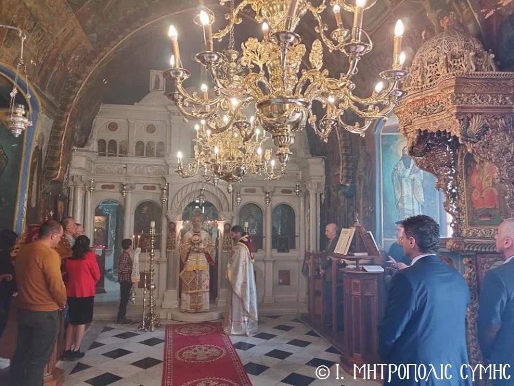 Σήμερα 31η Μαρτίου 2024, Β΄ Κυριακή τῶν Νηστειῶν, μνήμη τοῦ ἐν Ἁγίοις πατρός ἡμῶν Γρηγορίου Ἀρχιεπισκόπου Θεσσαλονίκης τοῦ Παλαμᾶ, ὁ Σεβ. Μητροπολίτης μας κ. Χρυσόστομος χοροστάτησε στόν Ὄρθρο καί τέλεσε τήν Θεία Λειτουργία στόν Ἐνοριακό Ἱερό Ναό τοῦ Ἁγίου Νικολάου Σύμης, μέ συλλειτουργό του τόν π. Γεώργιο Κακακιό, Ἐφημέριο τοῦ Ἱ. Ναοῦ, ἐνῶ τό ἱ. ἀναλόγιον διακόνησε ὁ Ἱεροψάλτης κ. Ἐλευθέριος Ξηράκης μεθ' ἑτέρων. Μεταξύ τῶν ἐκκλησιαζομένων ἦταν ὁ Δήμαρχος Σύμης κ. Ἐλευθέριος Παπακαλοδούκας, ὡς καί ὁ Διοικητής Δ.Α.Ν. Σύμης Συνταγματάρχης κ. Παναγιώτης Βρανᾶς.